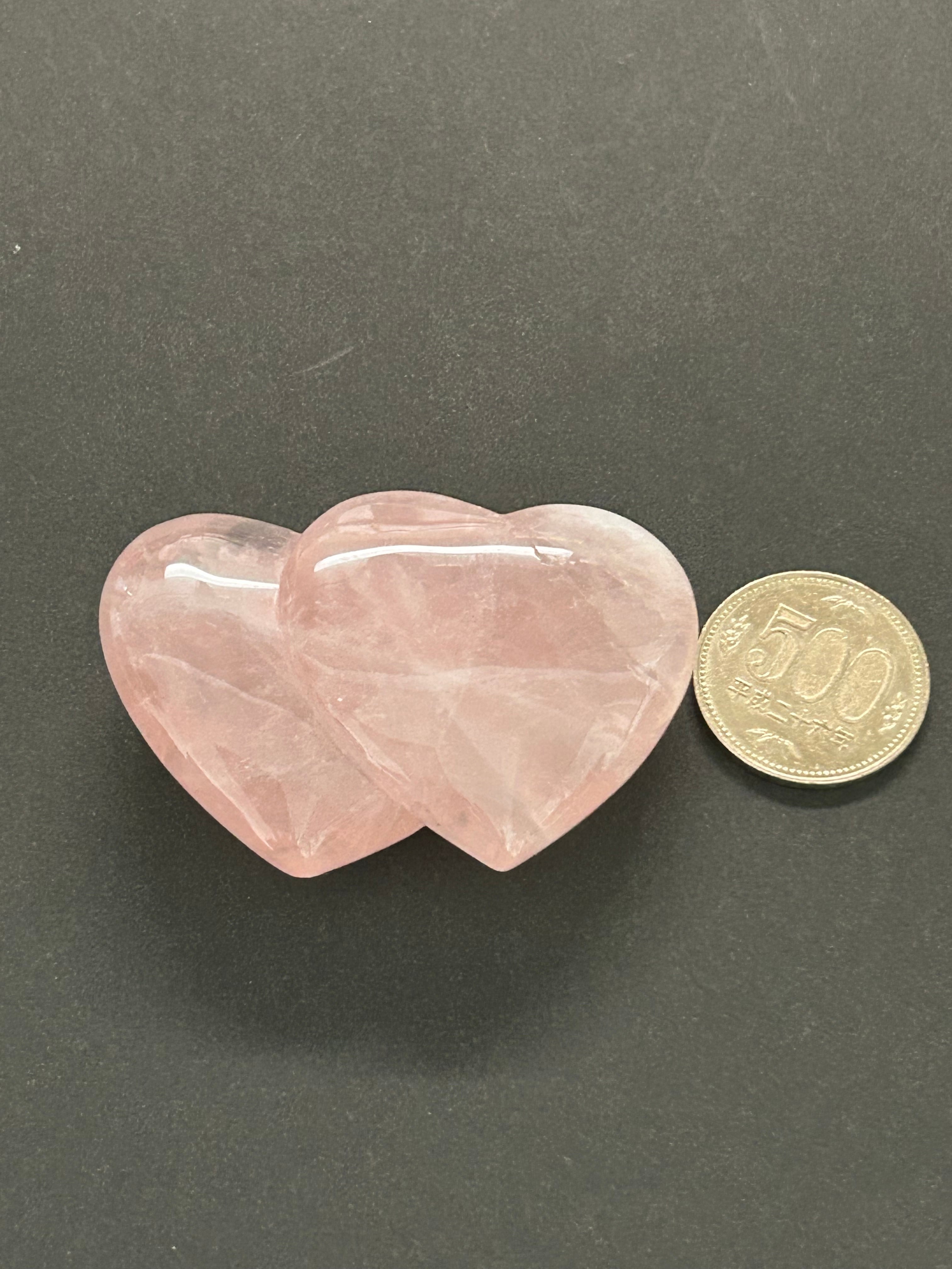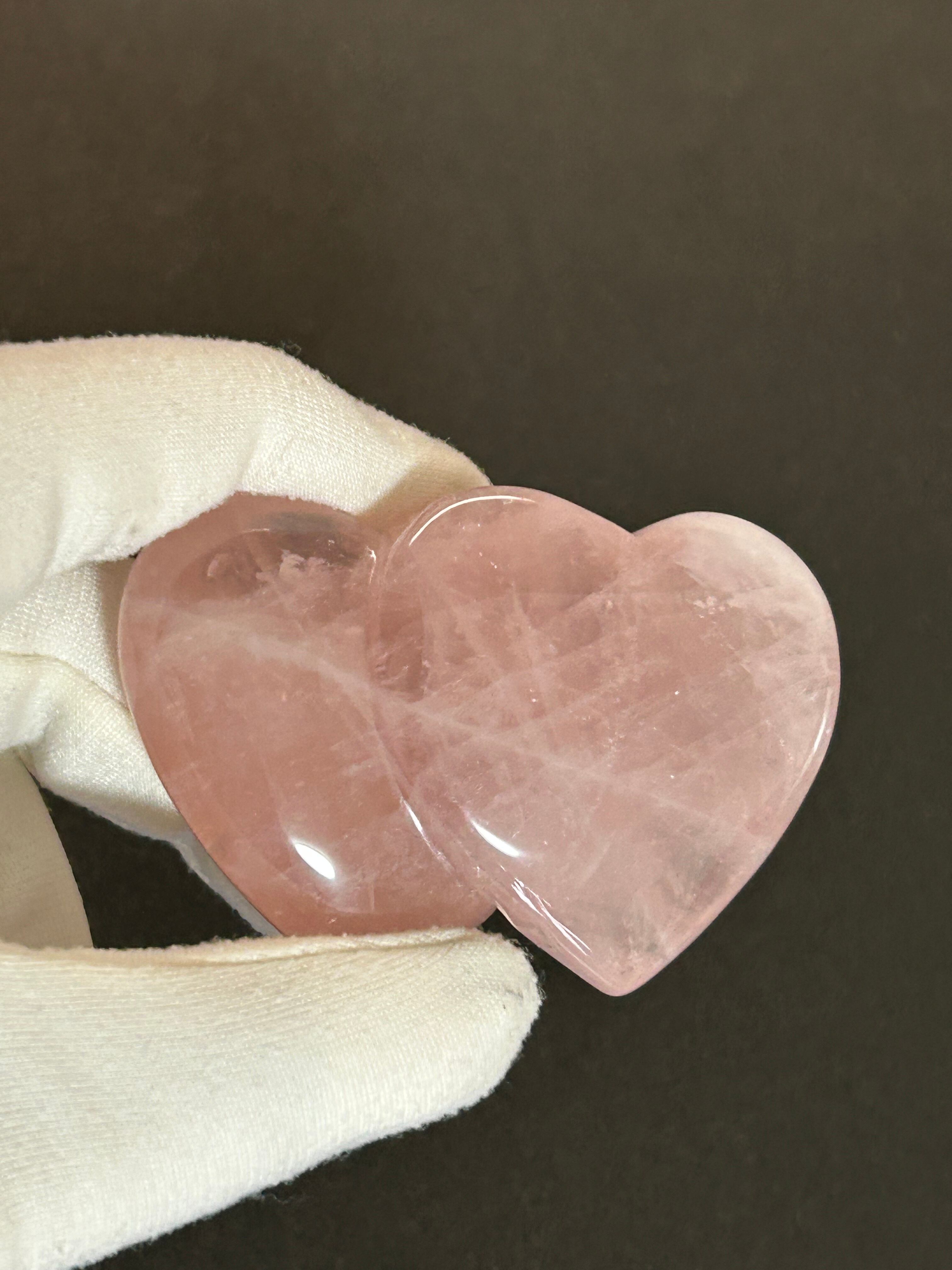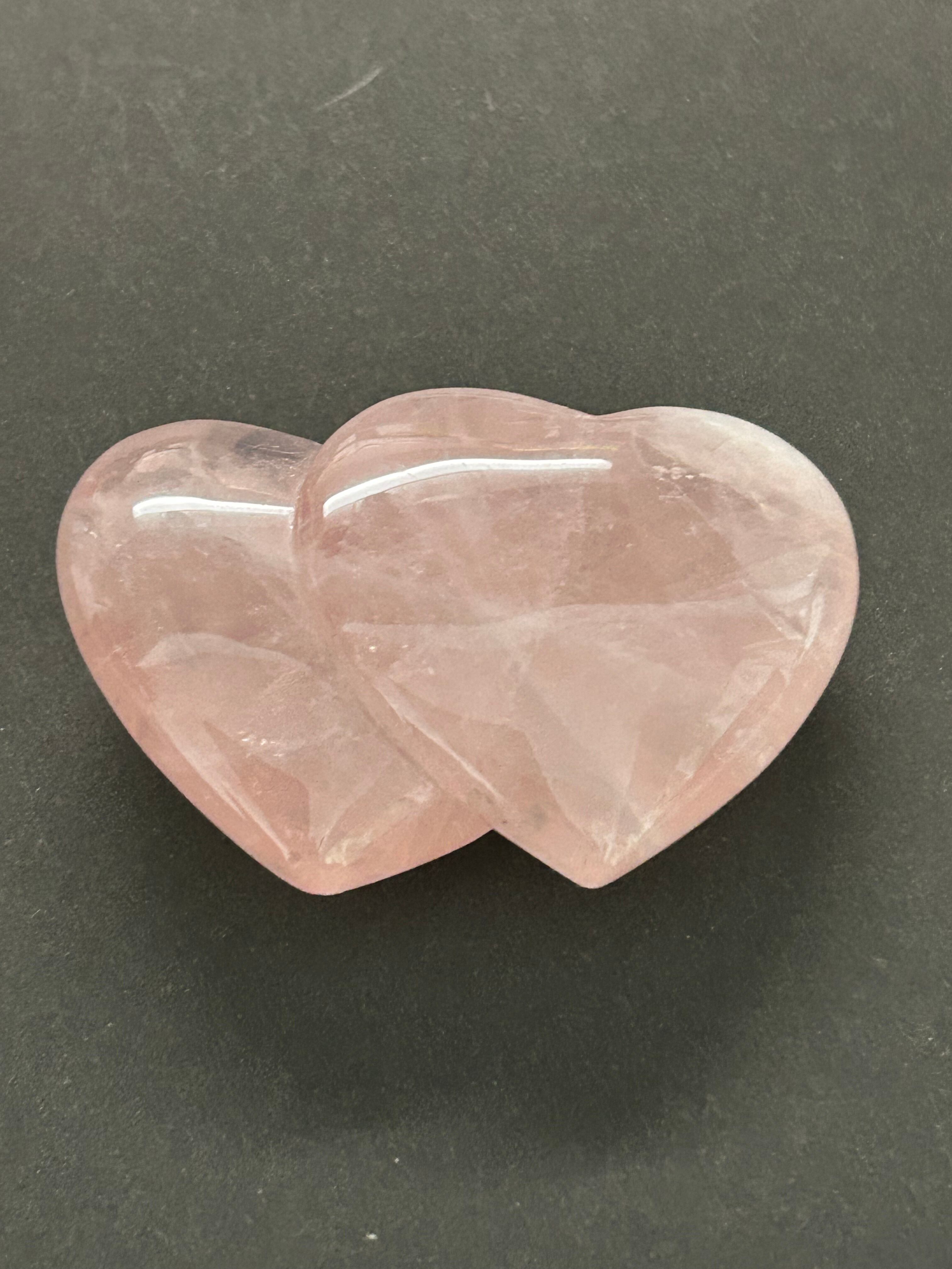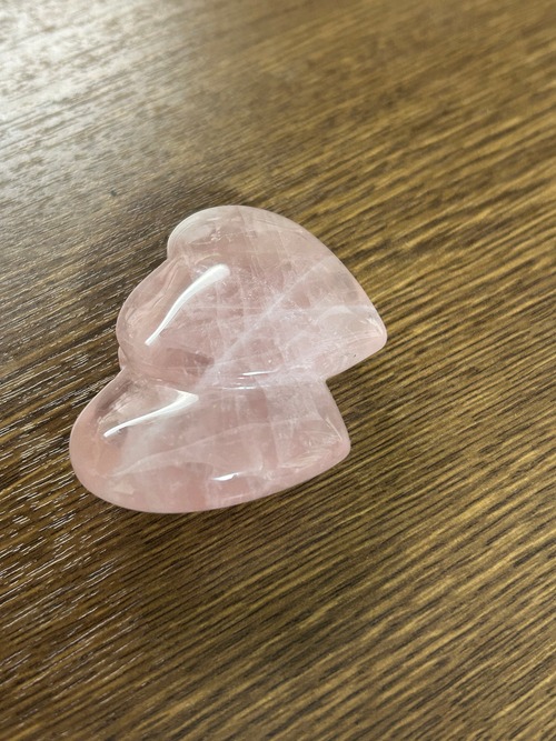 とっても可愛いローズクォーツのダブルハート型です。大きさも十分で手のひらサイズ。愛らしいピンクで小さな虹が入る箇所もあり見ているだけで癒されます。