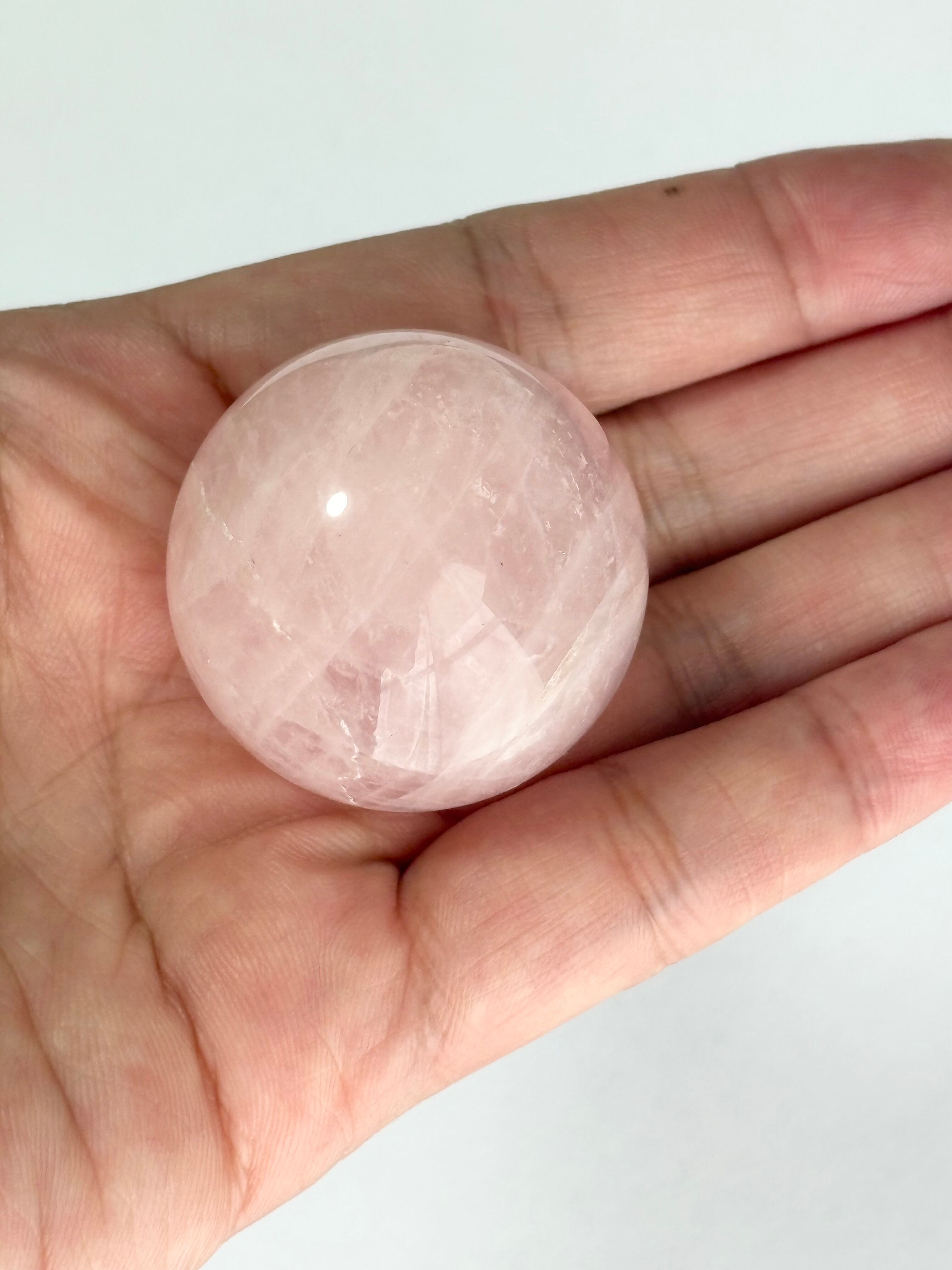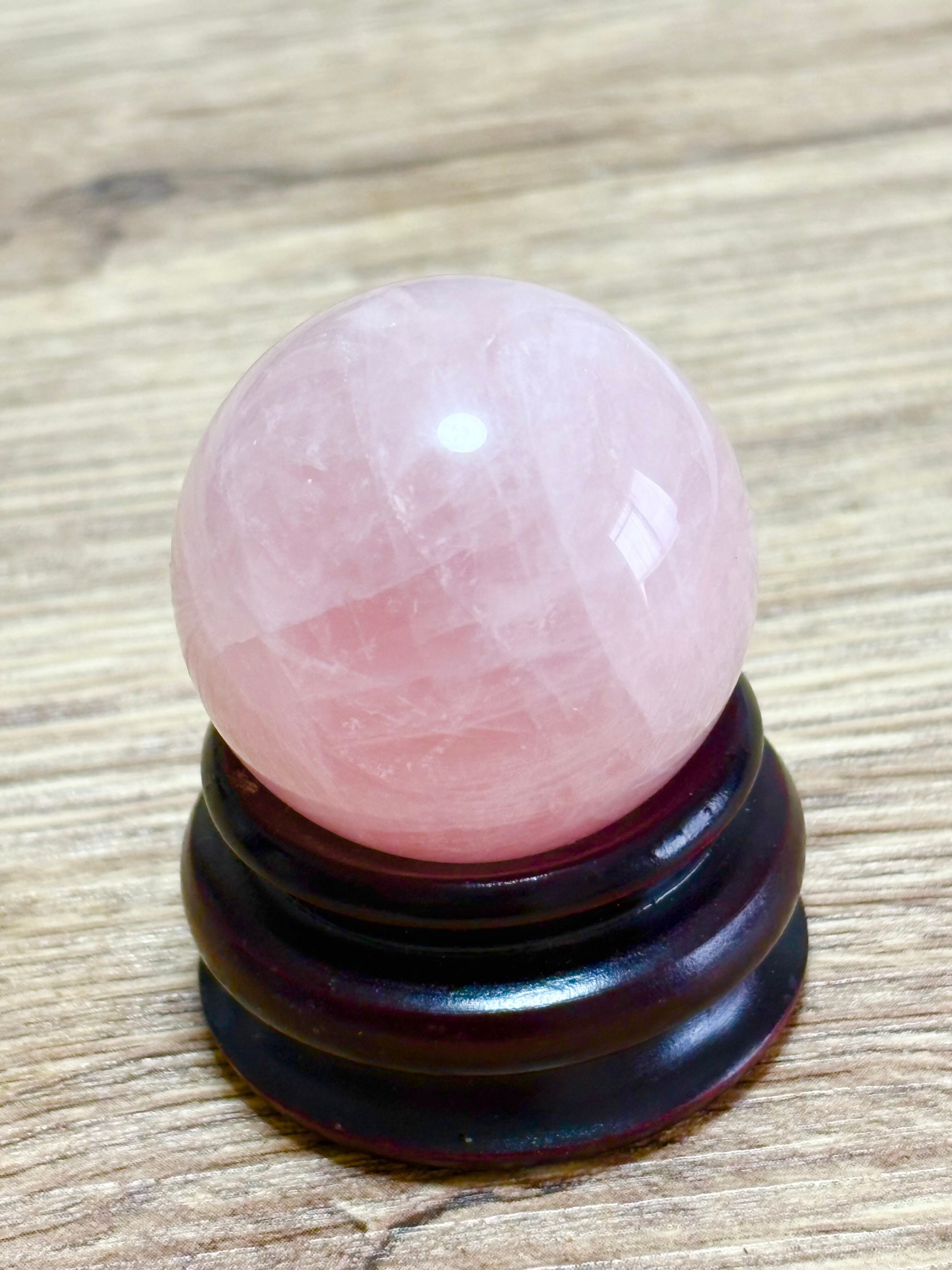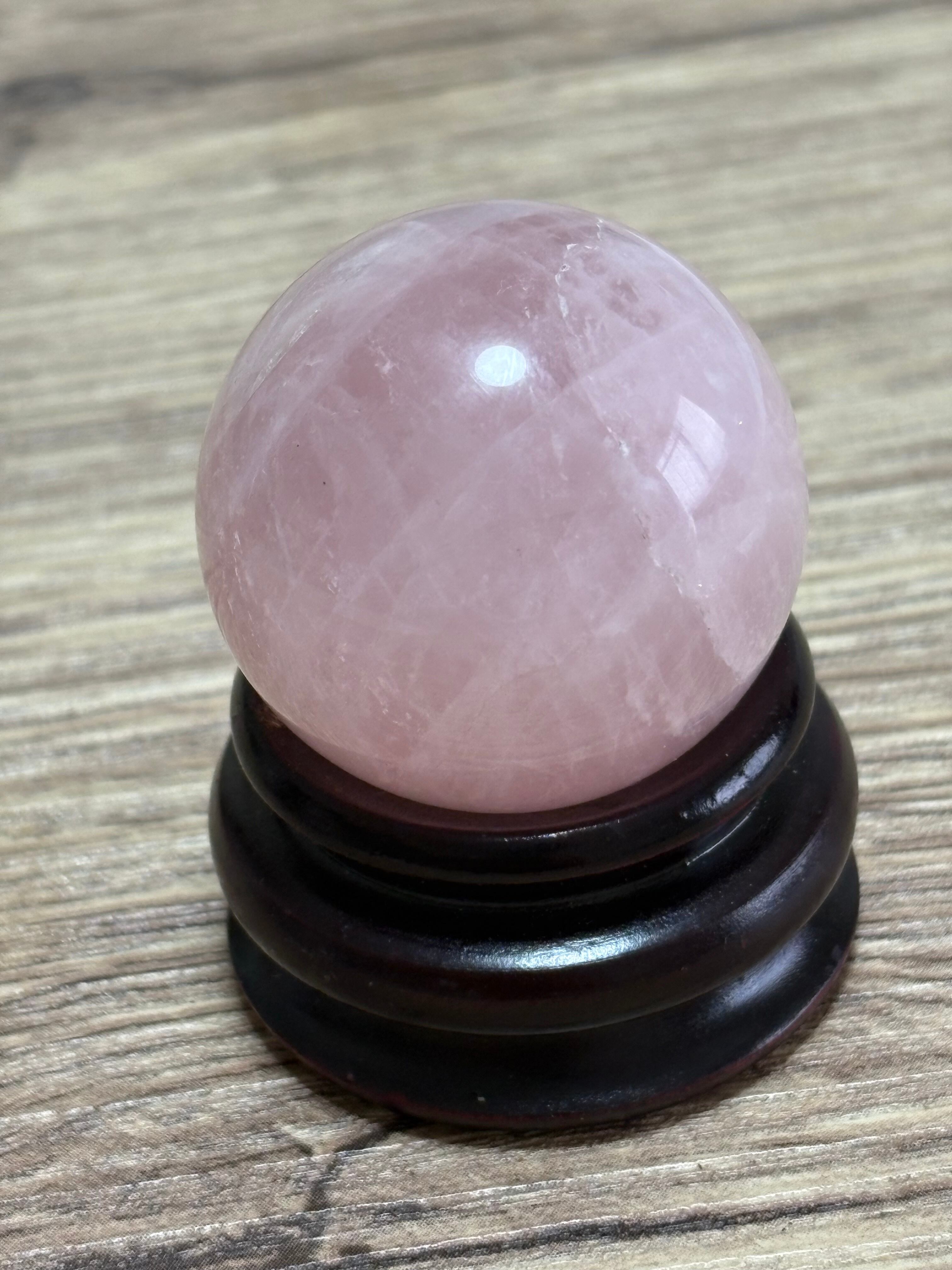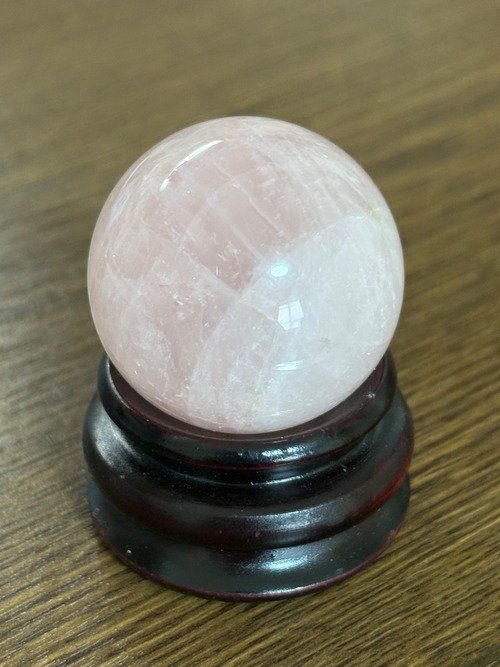 クラックが多めなのですが愛らしいローズクォーツ丸玉(スフィア)です。お値段はお安めにしました(*^_^*)