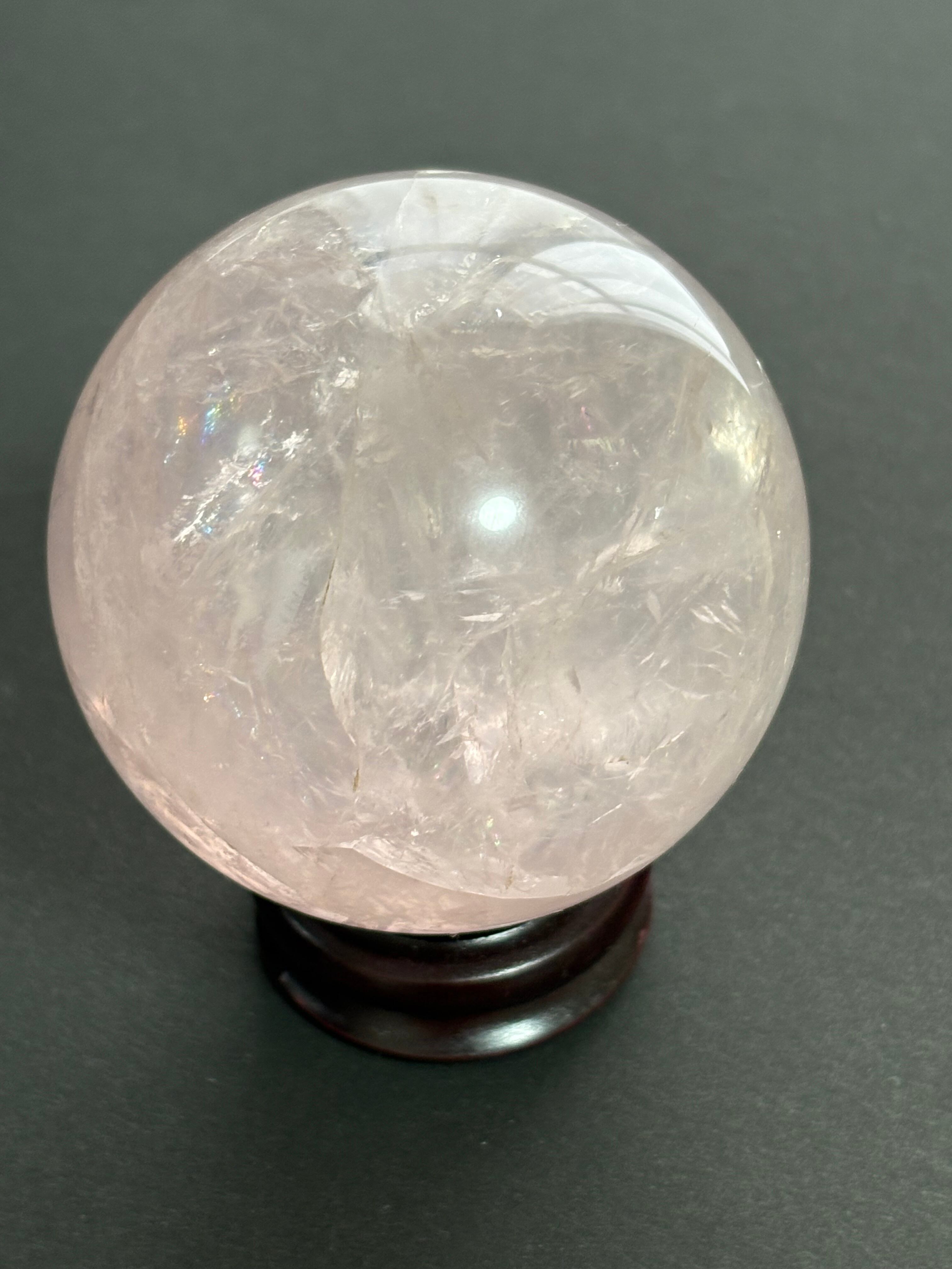 色は薄目のピンクでクラックは多いものの虹も入り非常に透明度が高いので個人的にはクラックが逆にとても綺麗に見えます。写真では分かりにくいのですが六条のスターも綺麗に浮かび上がりますが表面に欠けがある部分があるのでお値段はお安くいたしました。