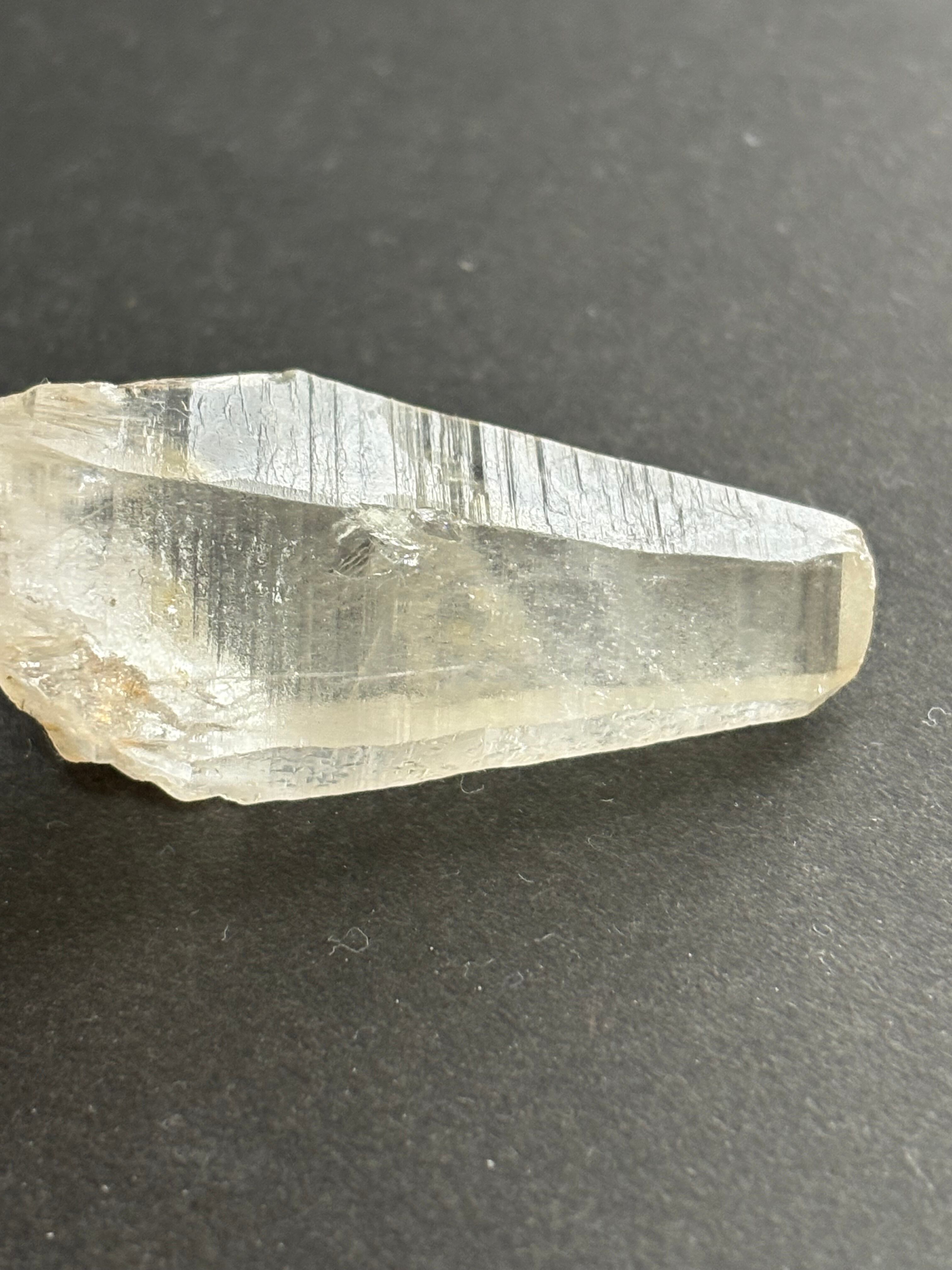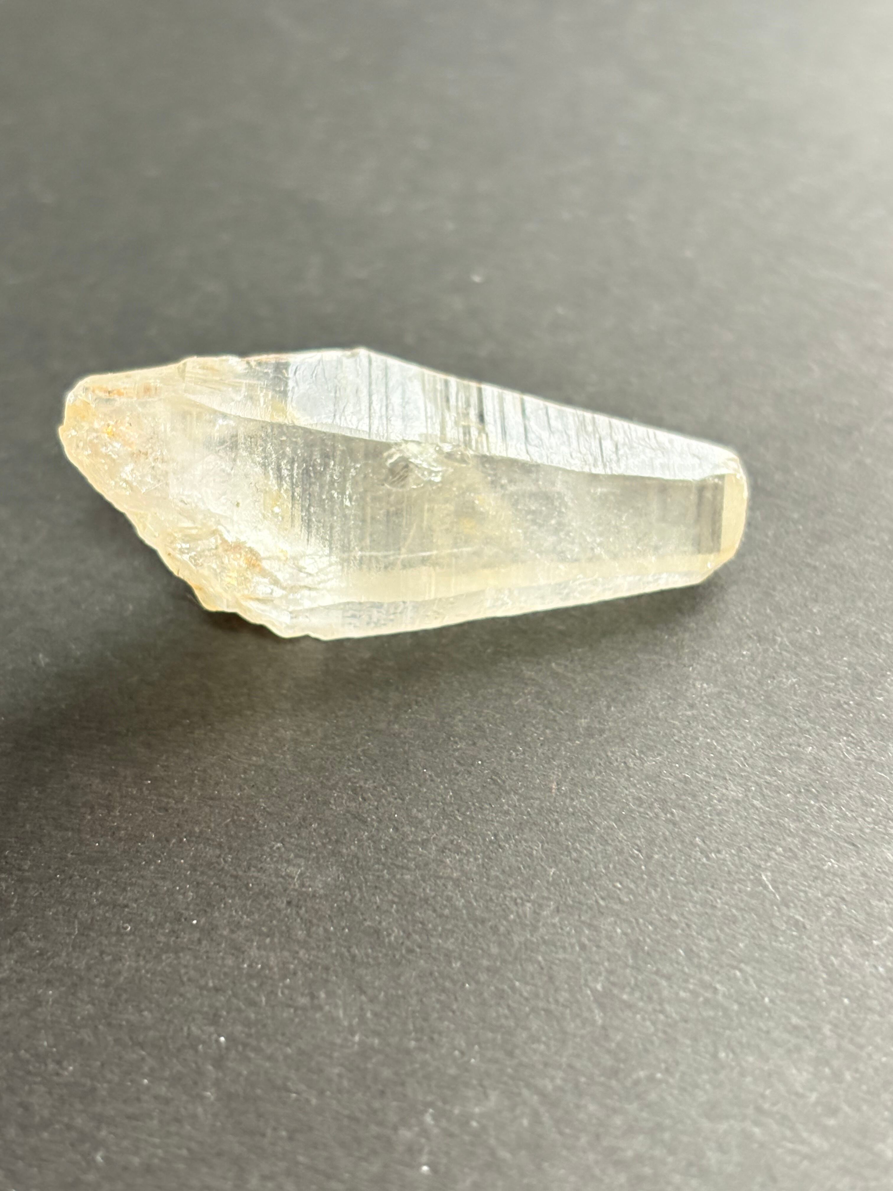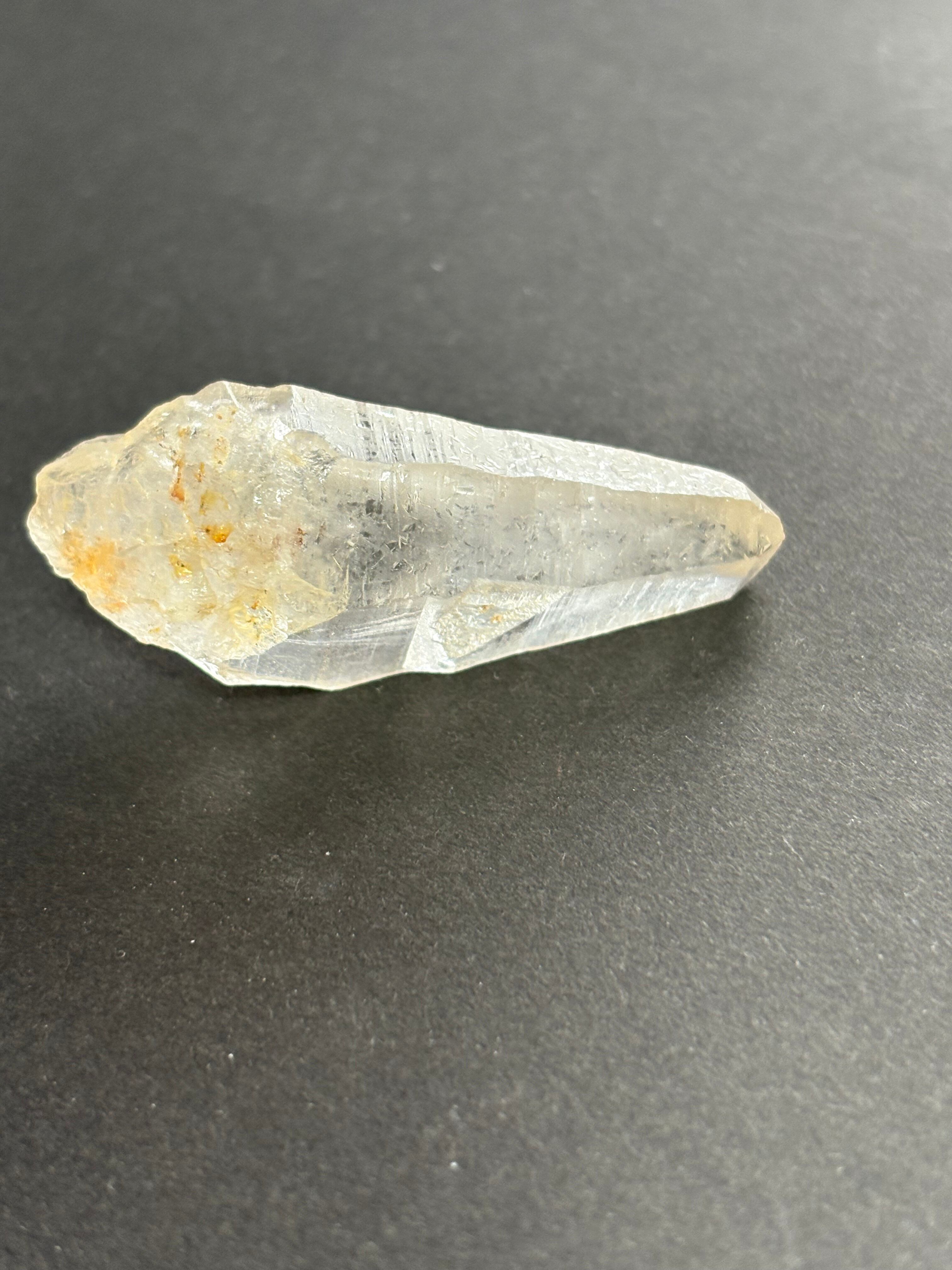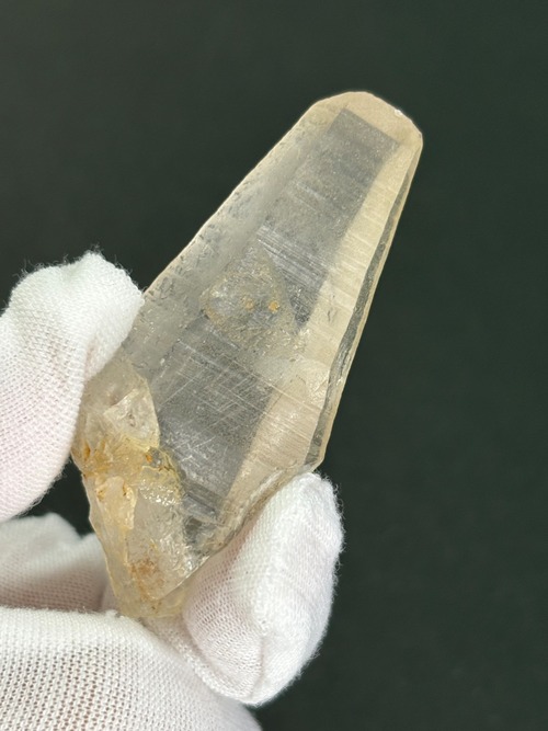 柔らかな優しいゴールドが素敵な人気のヒマラヤ水晶ティップリン産です。先端は平べったくレアな「タビュラーポイント」水晶になっています。大体のタビュラークリスタルには刻み目が入っているので、その筋をなぞりながら瞑想すると水晶の情報を取り出し活性化することが出来ると言われています。広い2面の部分が橋渡しの役目を果たすと考えられ、心の内面、外面の両方を整える、人間関係のコミュニュケーションを助ける、異次元との橋渡しなど、あらゆる物事と繋がることが出来ると言われています。そういう意味で、テレパシー能力を向上させるという一面もあります。