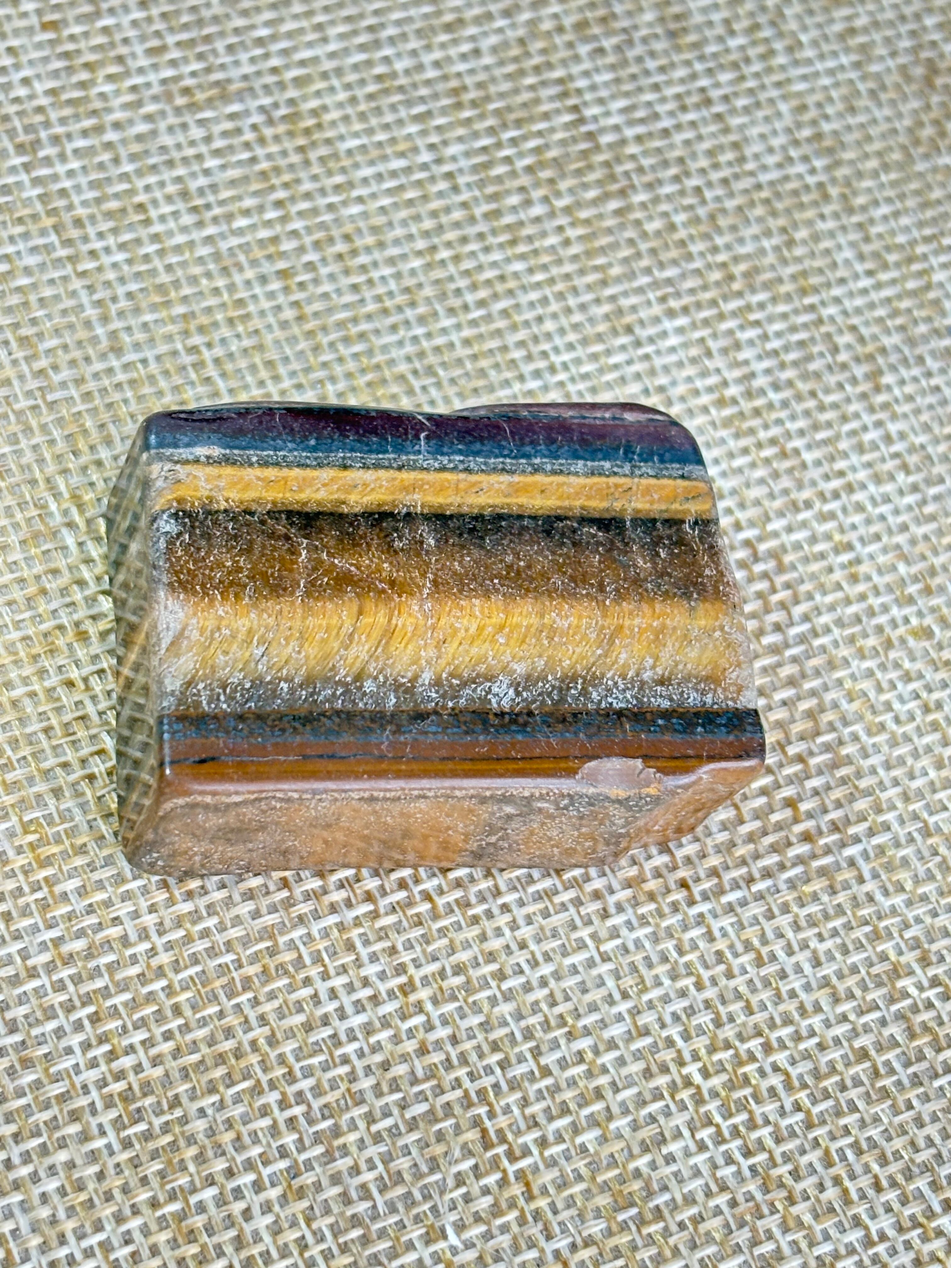 タイガーアイ約56g 約42mm*31mm*16mm 四角くてチョコレートケーキのような可愛いタイガーアイです。大きめなので満足感があります。 金運のお守りとして絶大な人気を誇るタイガーアイですが、この石の虎の目のような輝きが、古代から神の目と言われ「全てを見通す」「先見の明がある」とされ、仕事運、金運はもちろんの事、全ての厄災を 避け、成功に導くとされています。直観力を養うことから、ギャンブル運のお守りとしても好まれています。