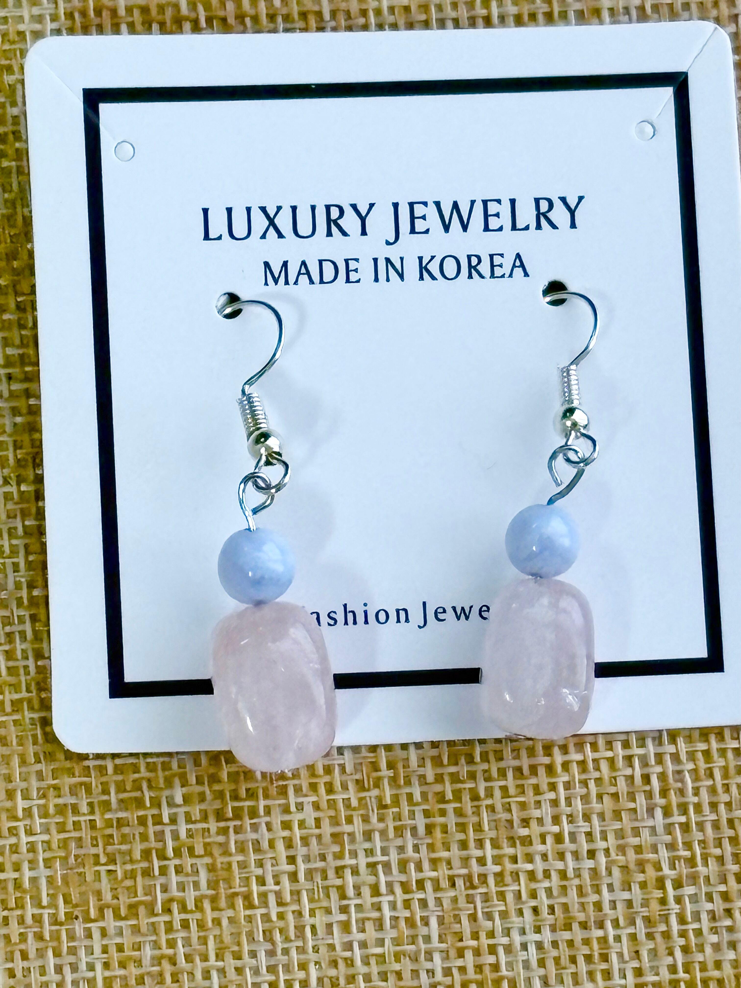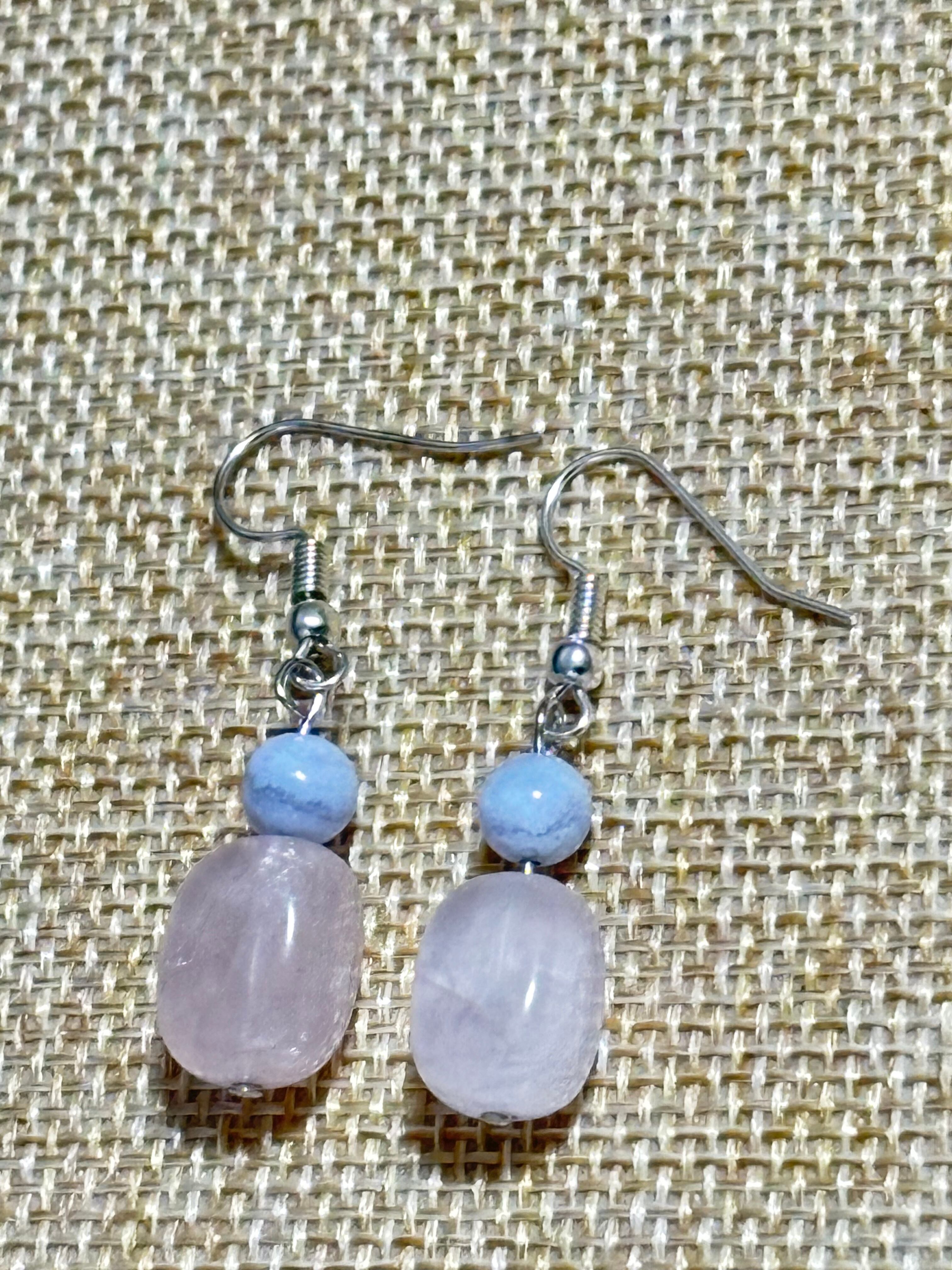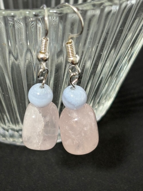 ローズクォーツ、ブルーレースピアス