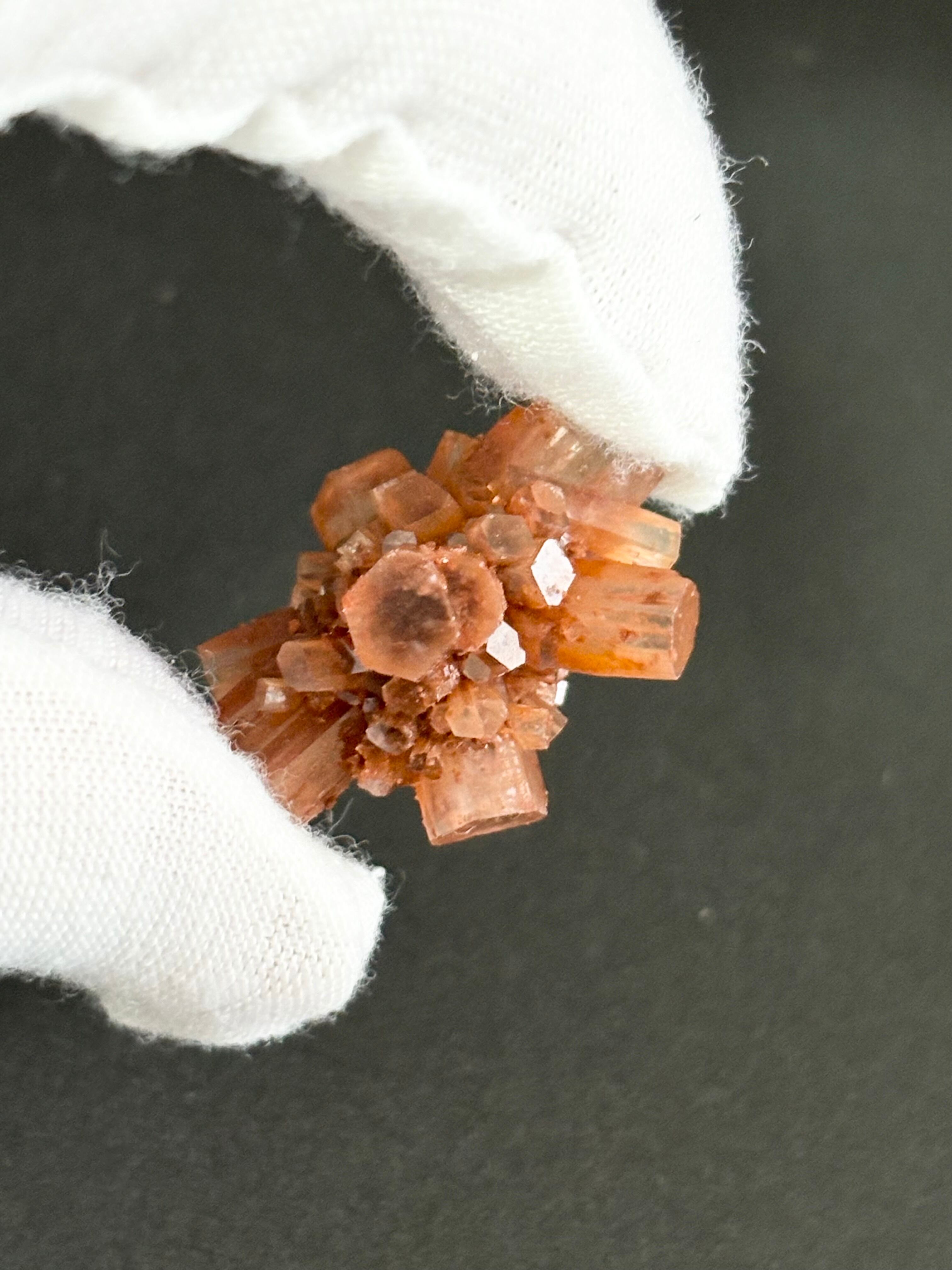 アラゴナイトはカルサイトと同じ性質を持ちながら 結晶の配列が違う兄弟石です。アラゴナイトは透明度は低いものの、エネルギー自体は非常にポジテイブで明るいものがあり、社交的な石として人間関係を良好にする、 新しい人脈ができる、人と人をつなげる、など良好な人間関係に効果をもたらしてくれる、ほのぼのとした石です。そして、こちらはスプートニクという人工衛星と形が似ている為「スプートニク型」と呼ばれるモロッコ産のアラゴナイトです。