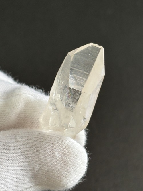 小さなアーカンソー産水晶ですが、スッキリとした透明度に小さな結晶もキラキラ輝いて美しい虹が入りアーカンソー産水晶らしさが楽しめて満足感があります。お値段がお手頃なのも嬉しいところです。