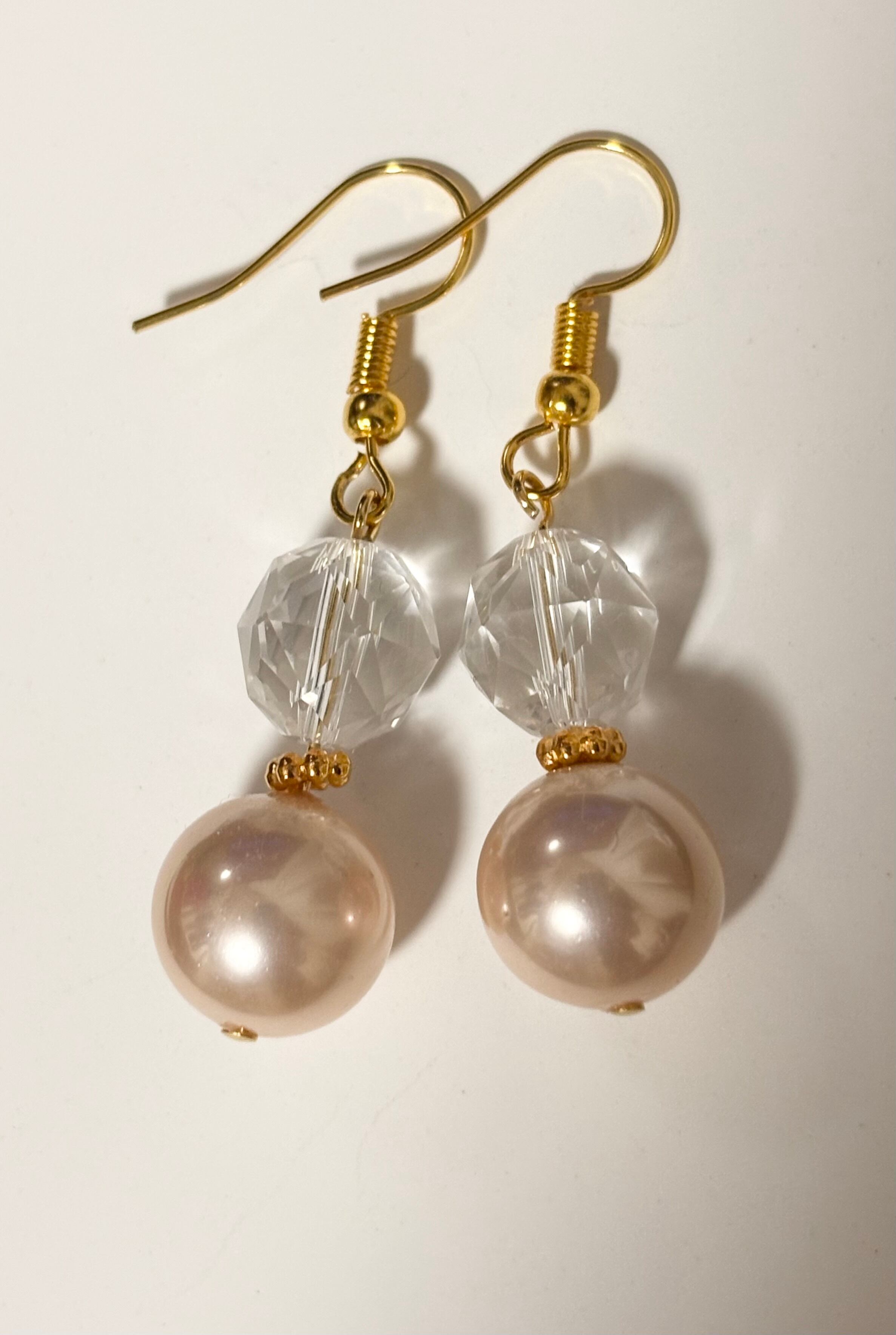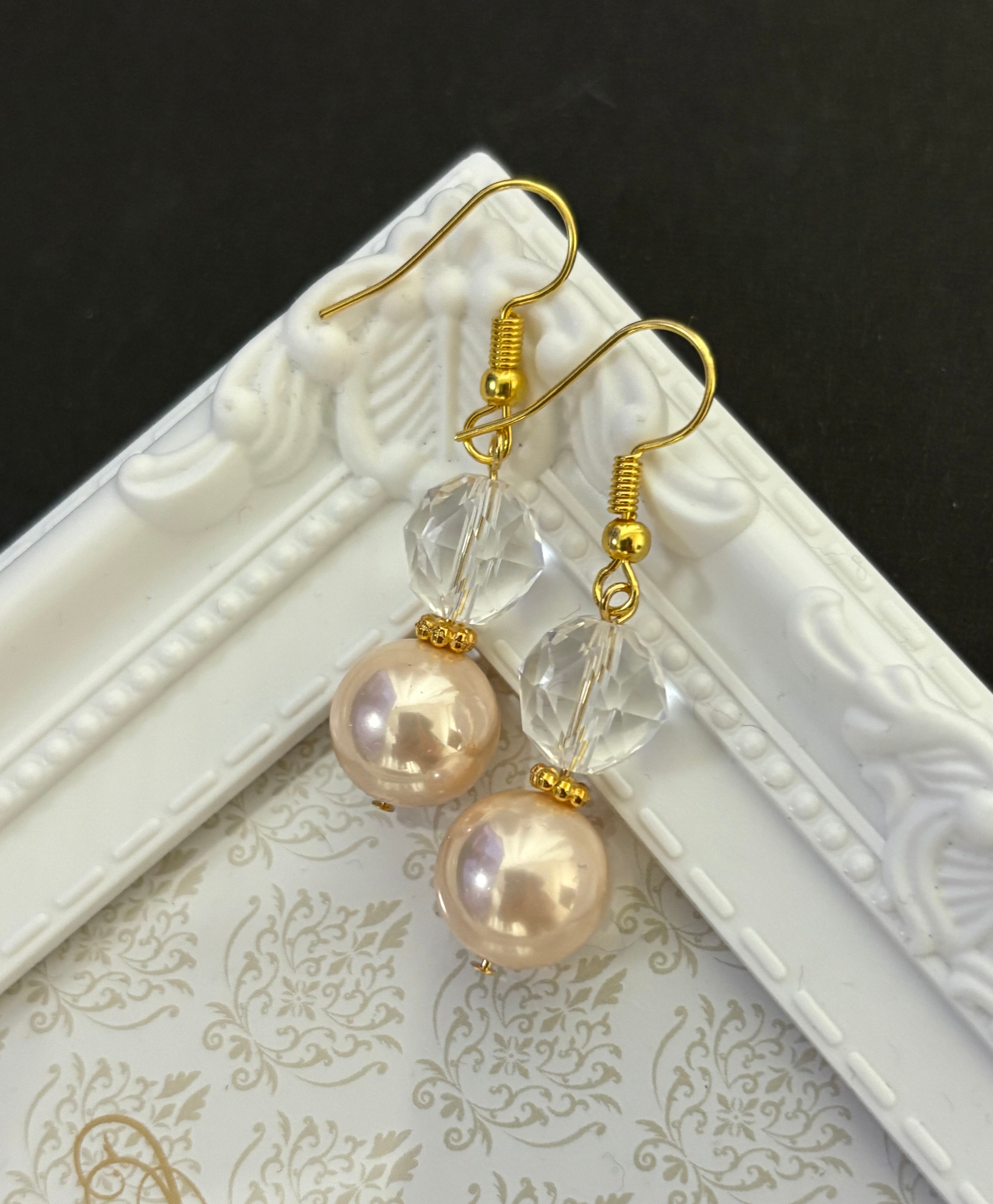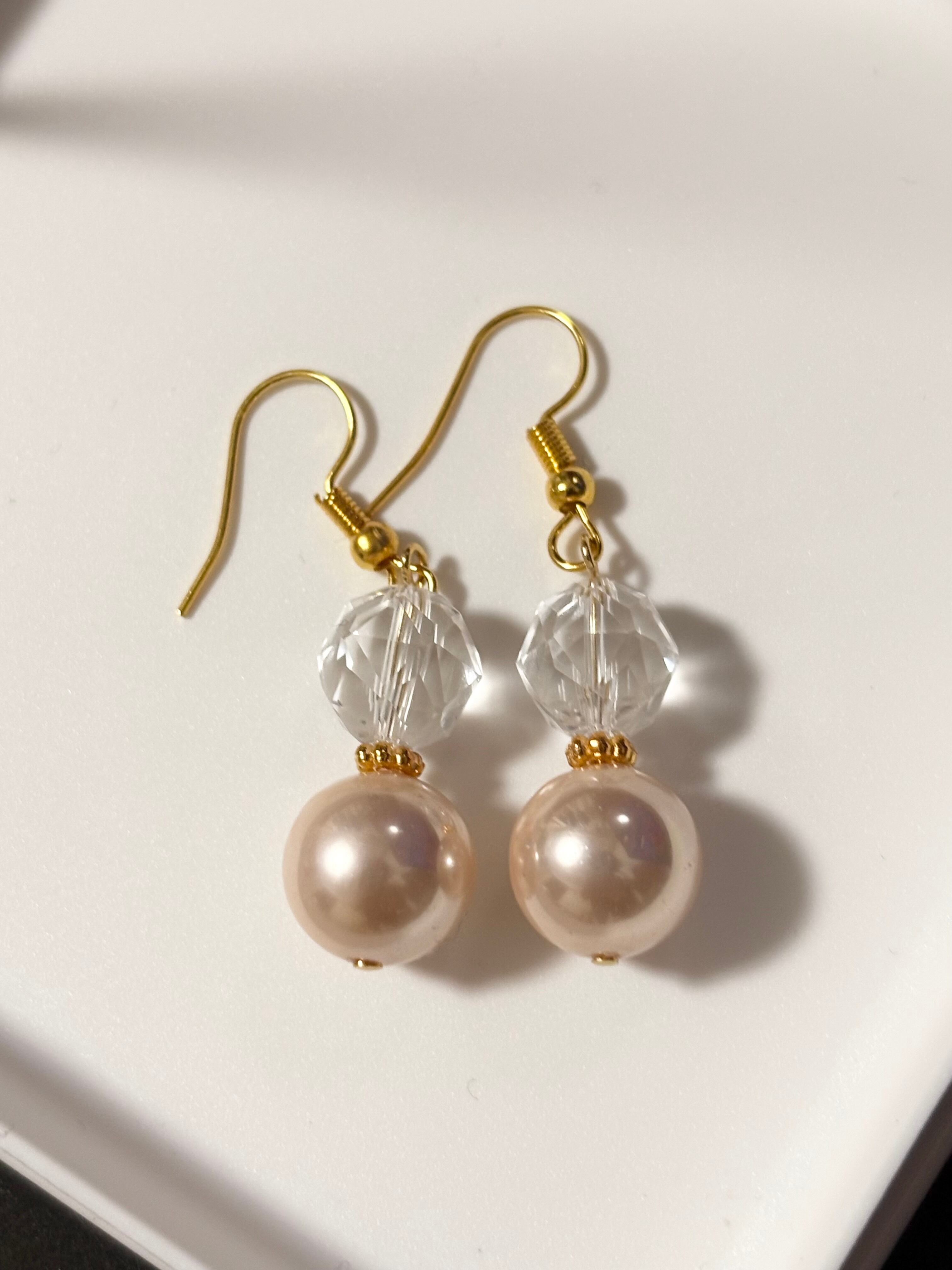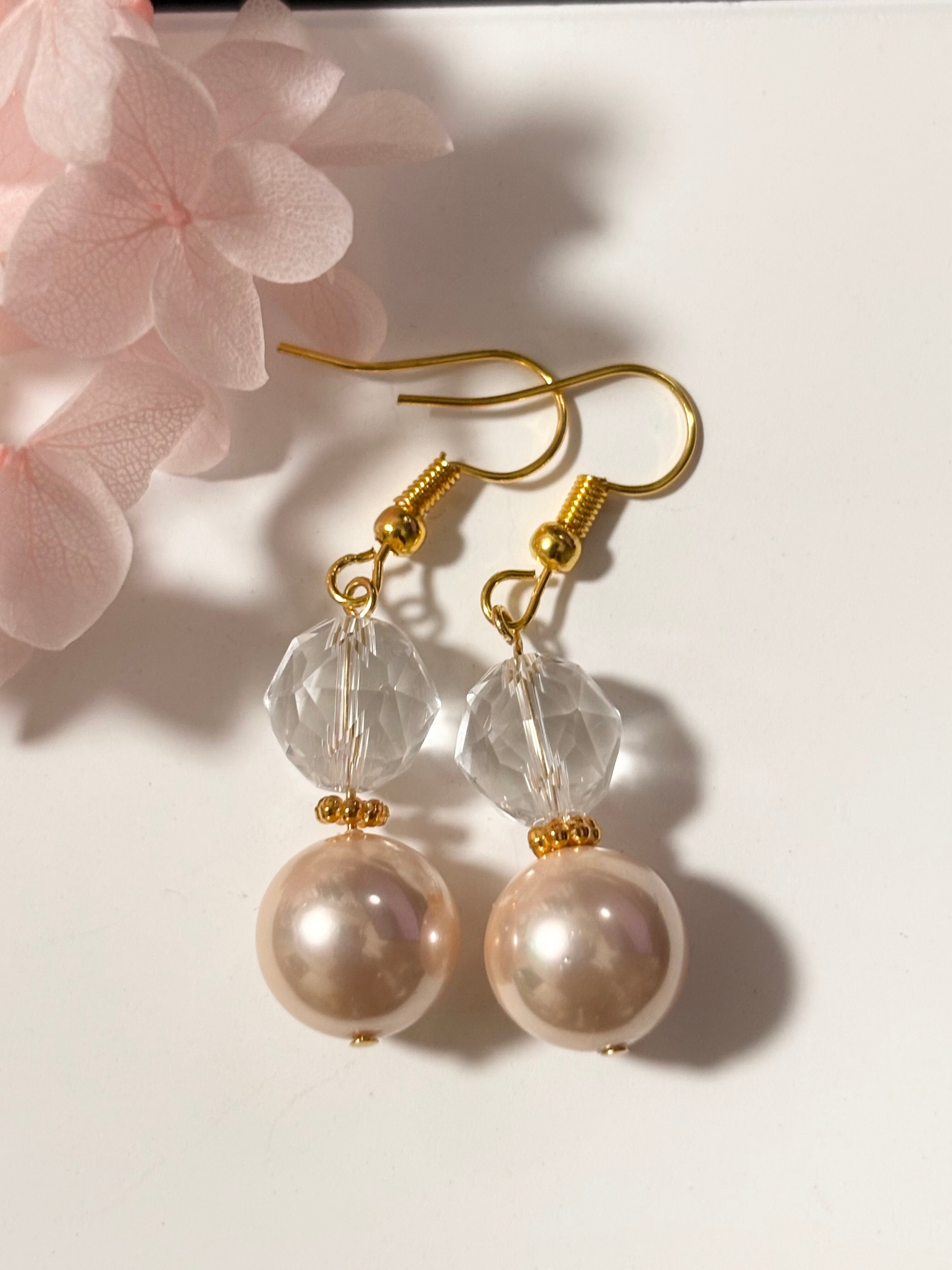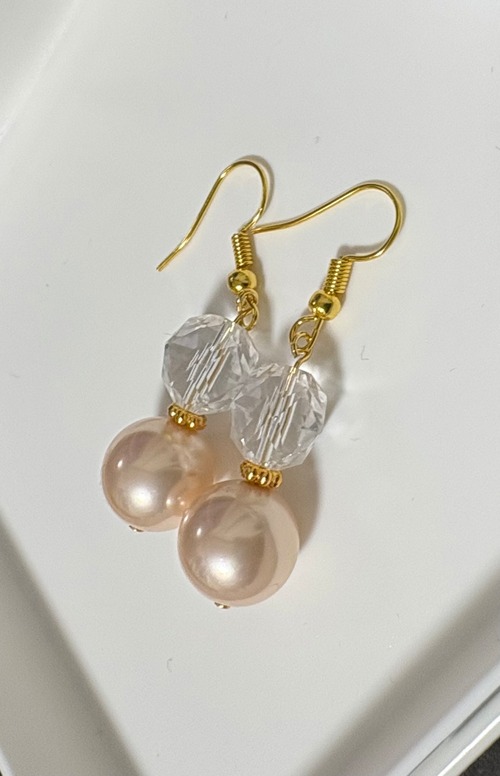 12mmサイズと大きめで高品質で可愛らしいピンクゴールドのパールが存在感抜群です。さらに高品質スターカットがキラキラで美しく身に着けると華やかになること間違いなしのスターカットパールピアスです。