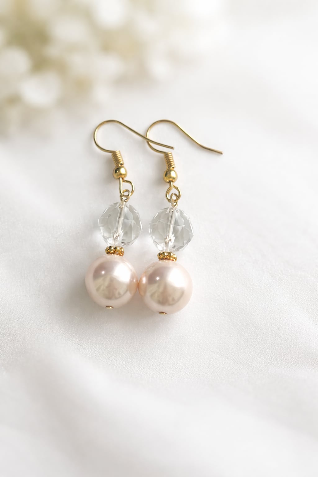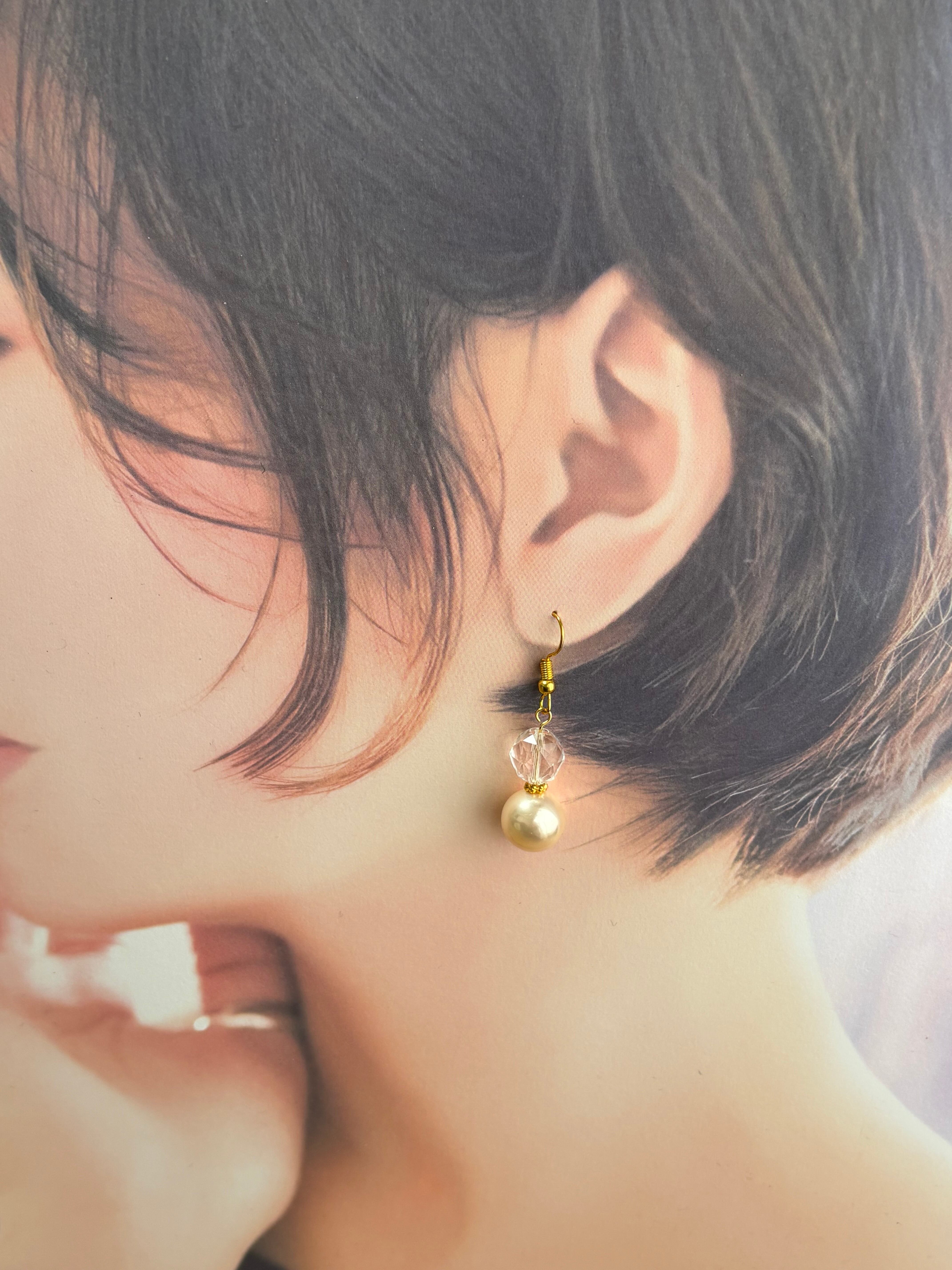 スターカット水晶・フェイクパールピアス