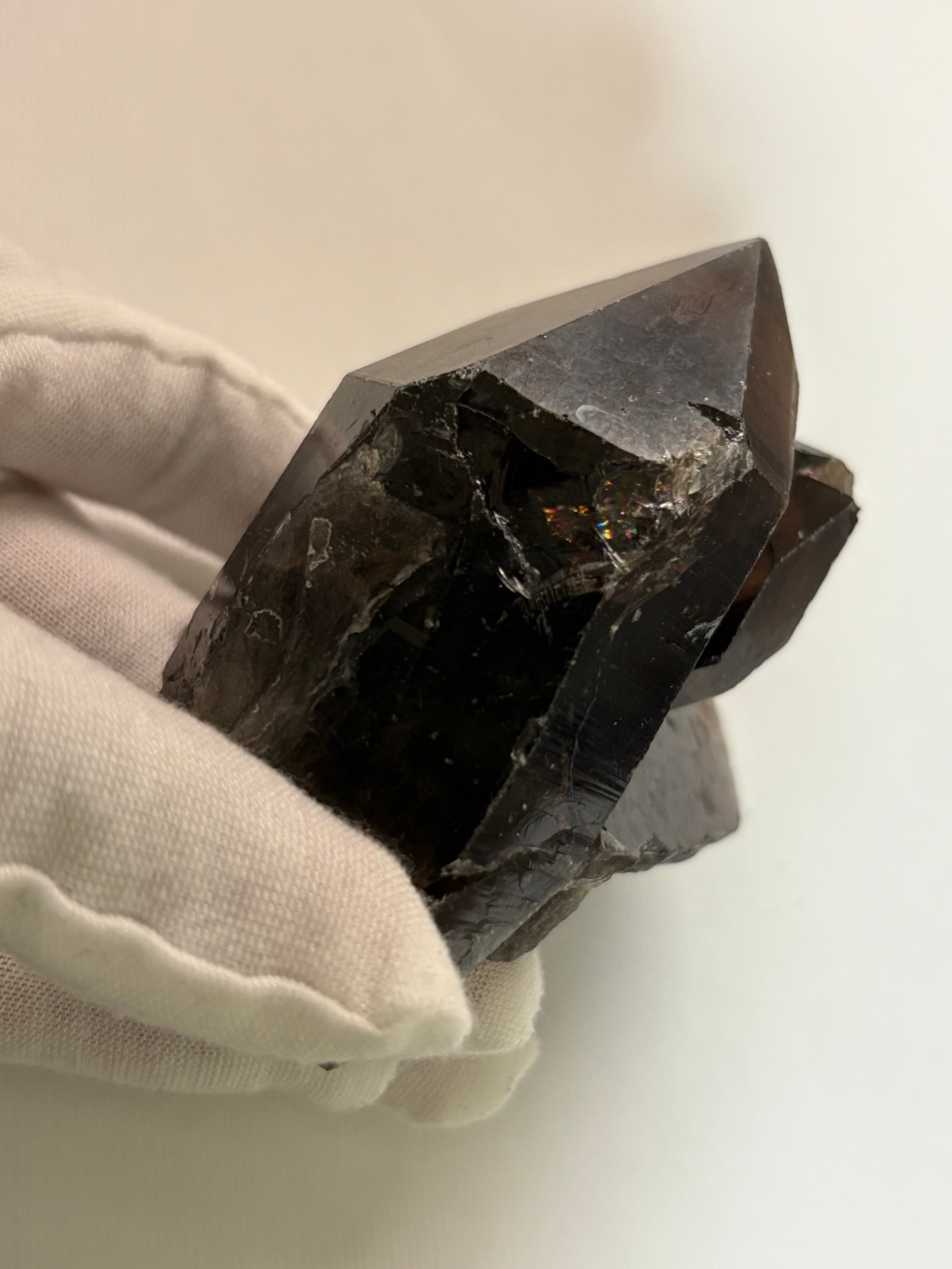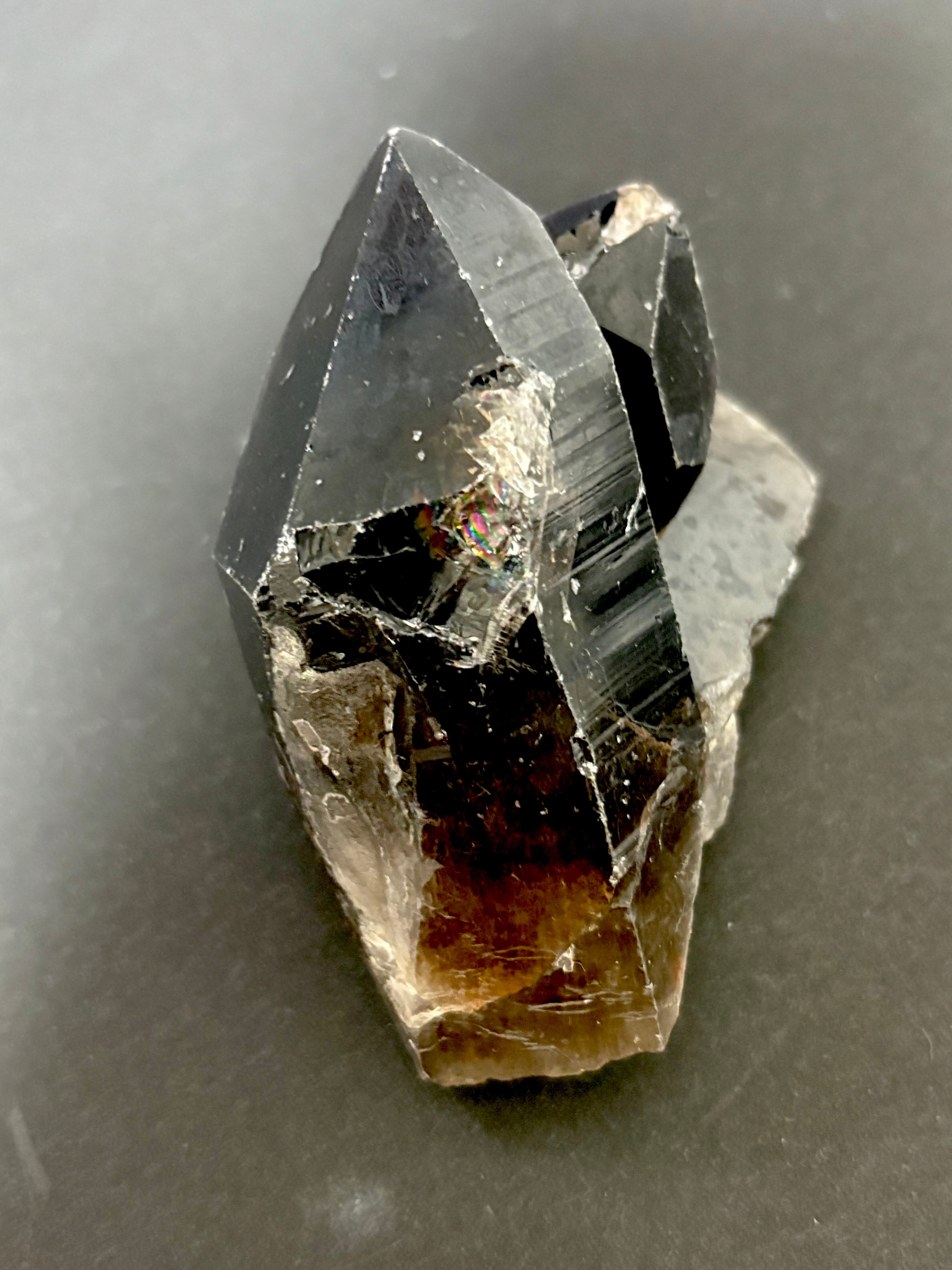 水晶のテリはいまいちなのですが丸みを帯びた大きな三角のレコードキーパーがしっかり入っており、写真よりも実物の方が濃い虹の存在感があります。