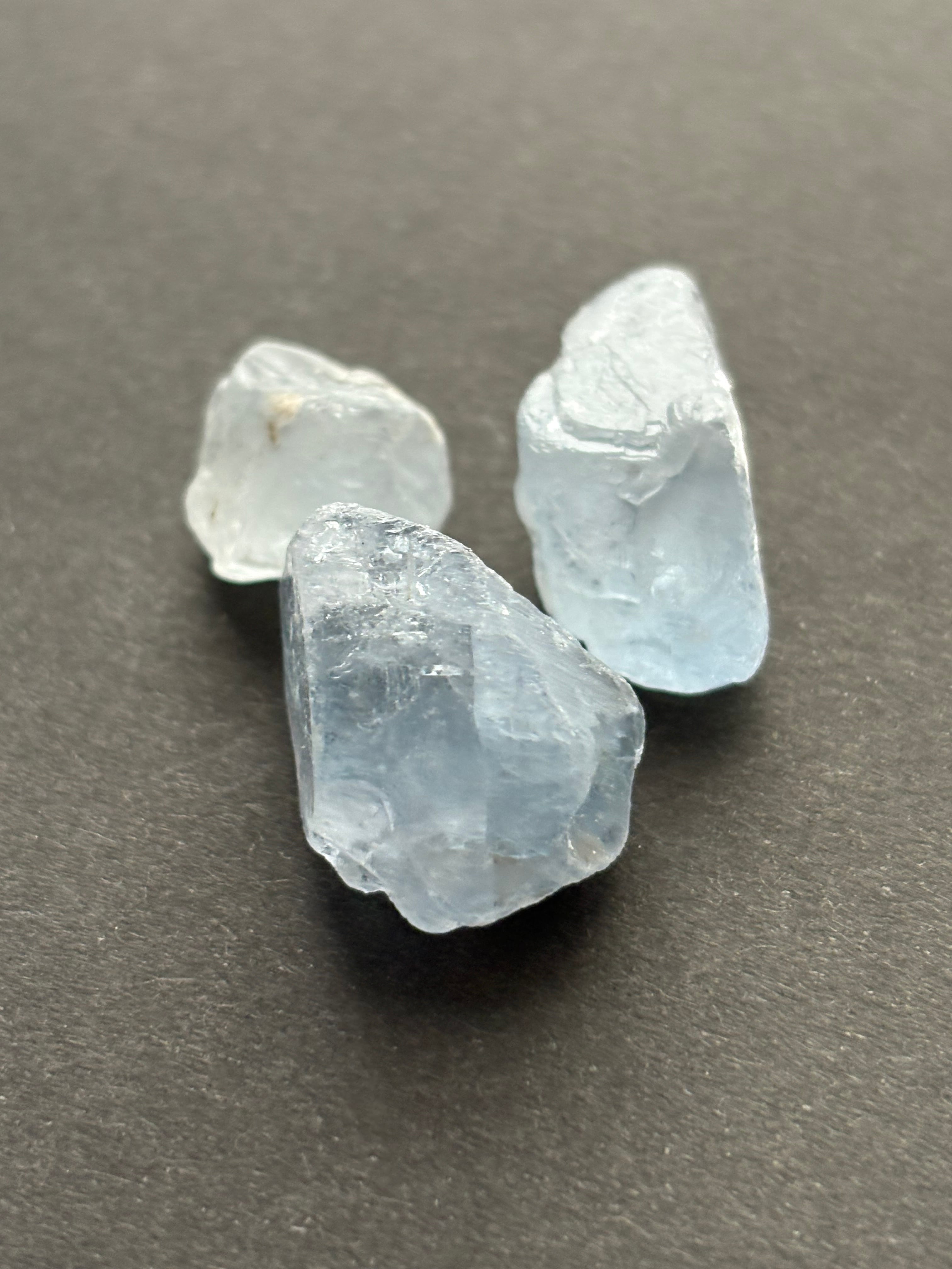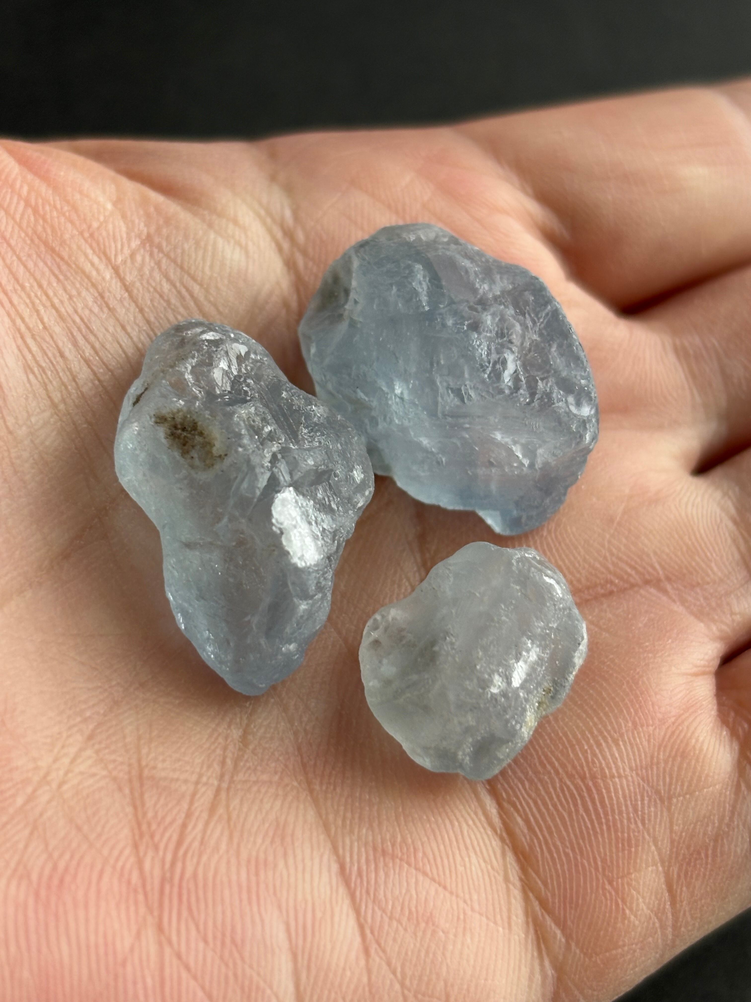 美しいセレスタイトの結晶の3個セットです。琥珀糖のようなかわいらしさ、光にかざして結晶の中を覗いてみる楽しみ、喉のチャクラ(第五チャクラ)のヒーリングやタロットカードリーディングに・・と様々なことにご利用することが可能です(*^_^*) とっても愛らしい石でおすすすめのパワーストーンです。