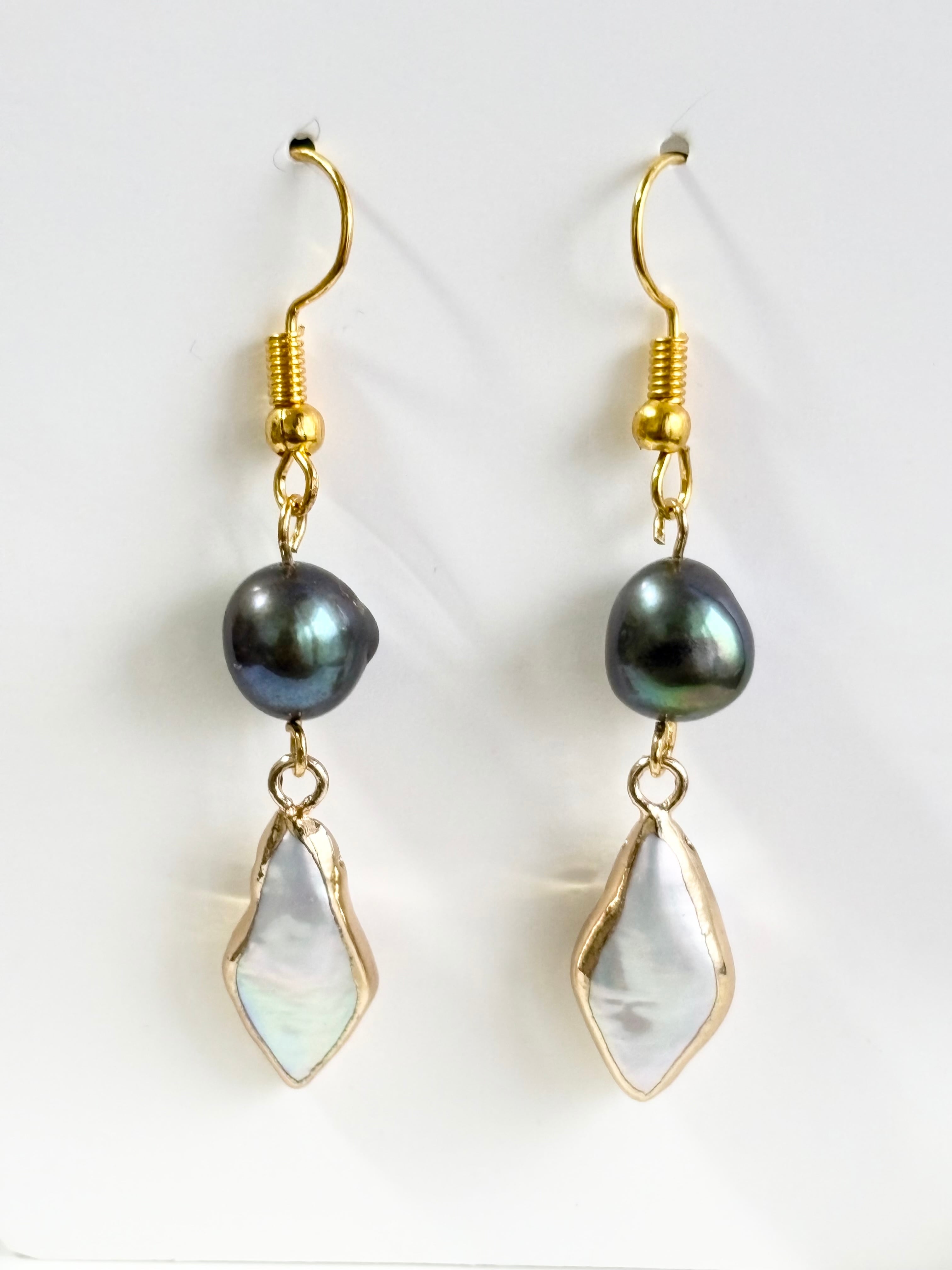 美しい南洋パールとバロックパールの揺れるピアスです。大人っぽい雰囲気で素敵なピアスです。美しい南洋パールが輝き淡水パールが大人っぽいピアスです。カジュアルにつけられますがパールが入ったピアスはワンランク上のお洒落にはかかせないアイテムです♪