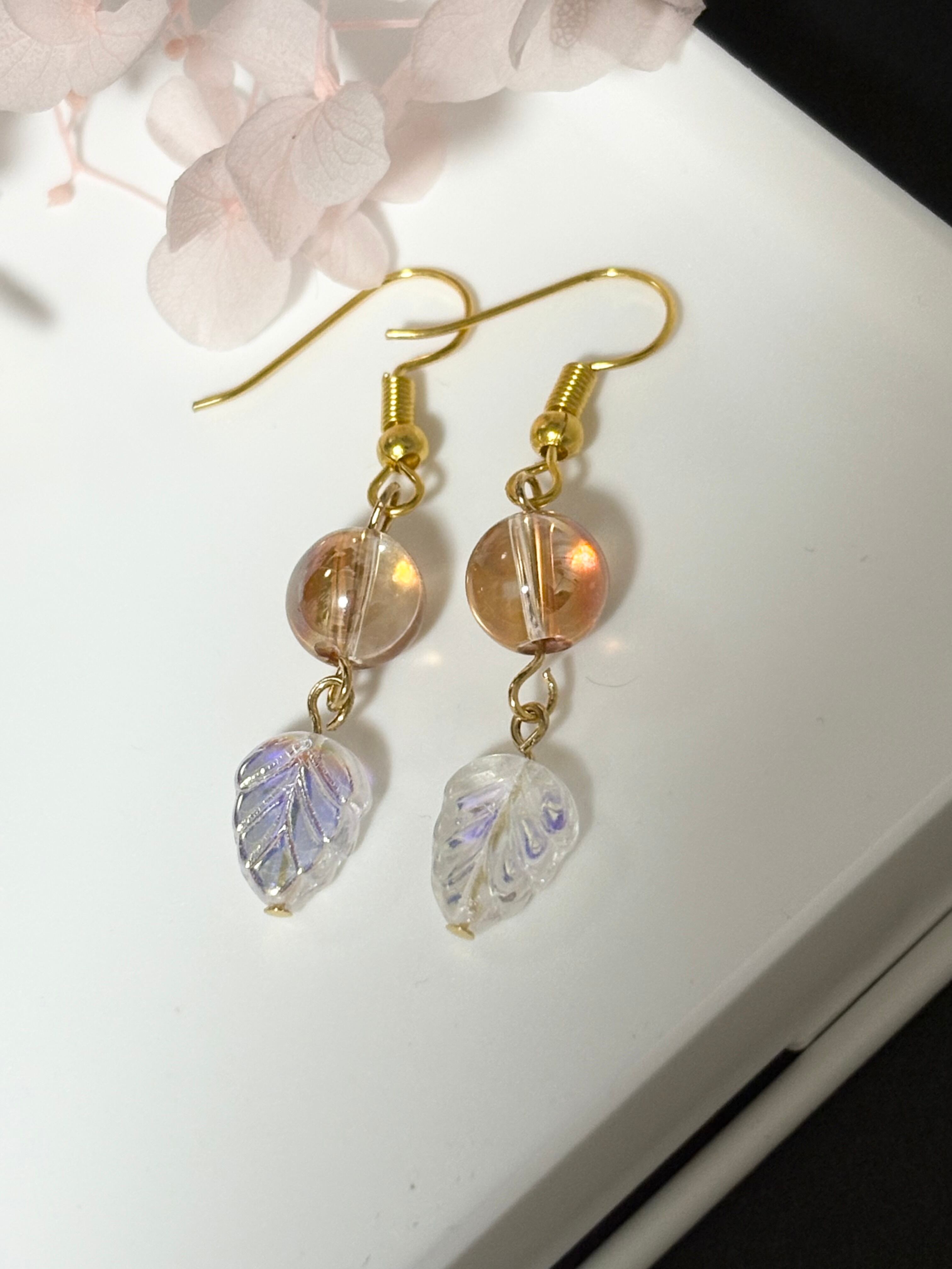 オレンジアクアオーラ・リーフピアス オレンジアクアオーラ8mm×2 リーフ(オーロラ)×2