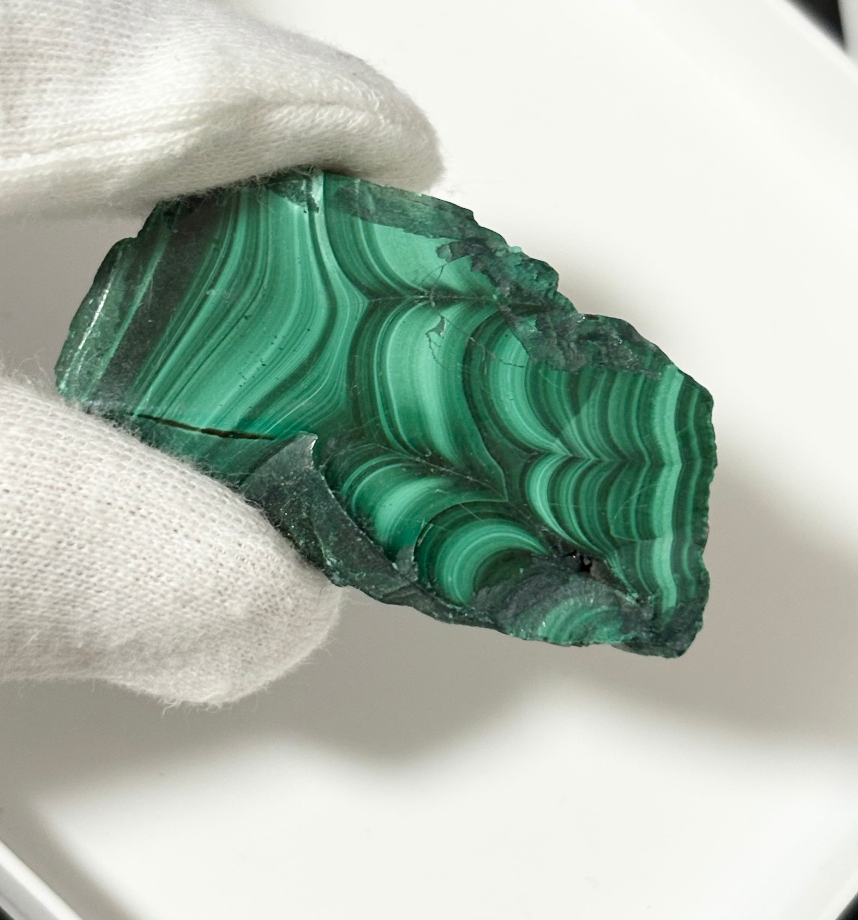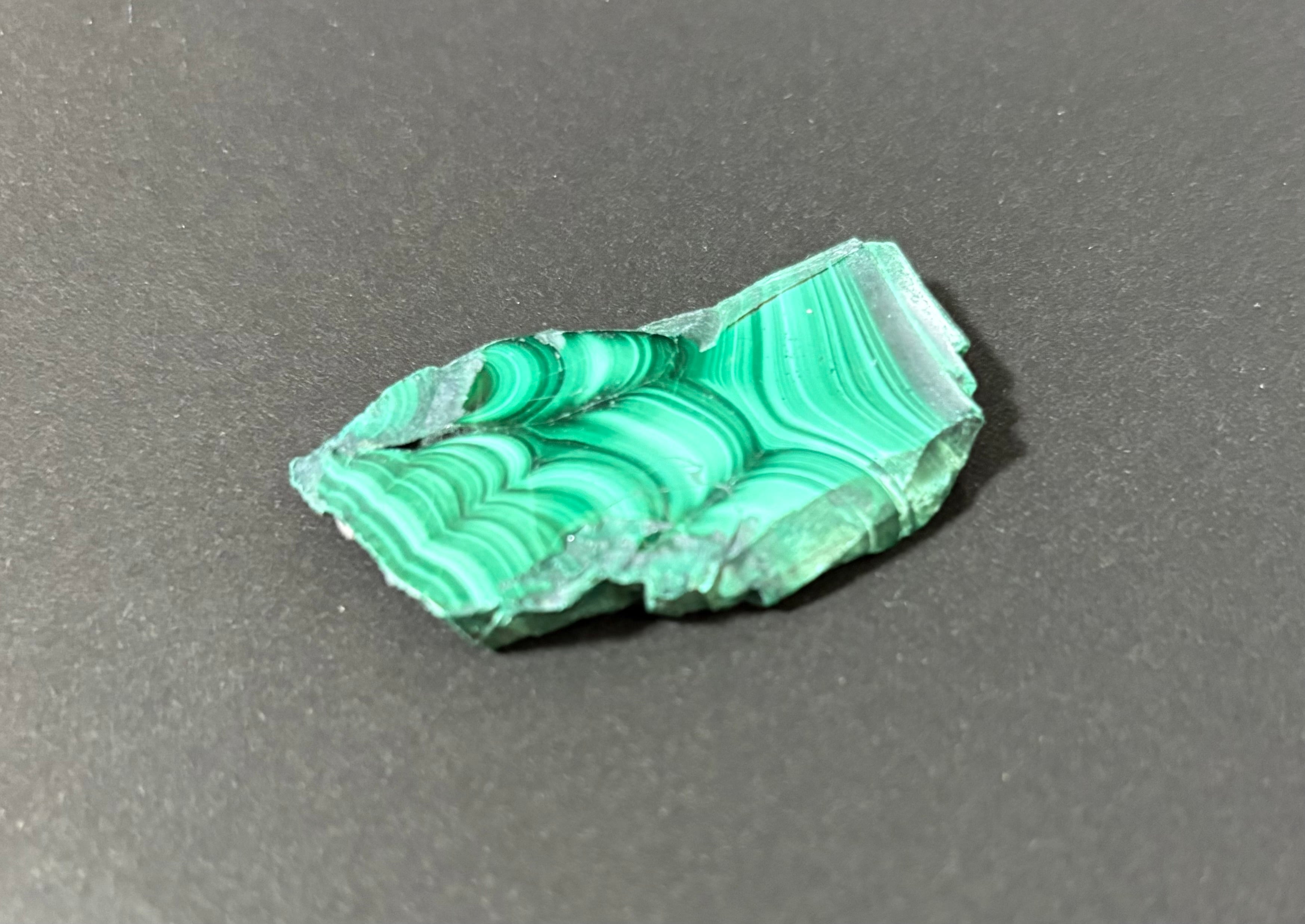 マラカイトのスライスが世界にひとつだけの模様を映し出してくれます。