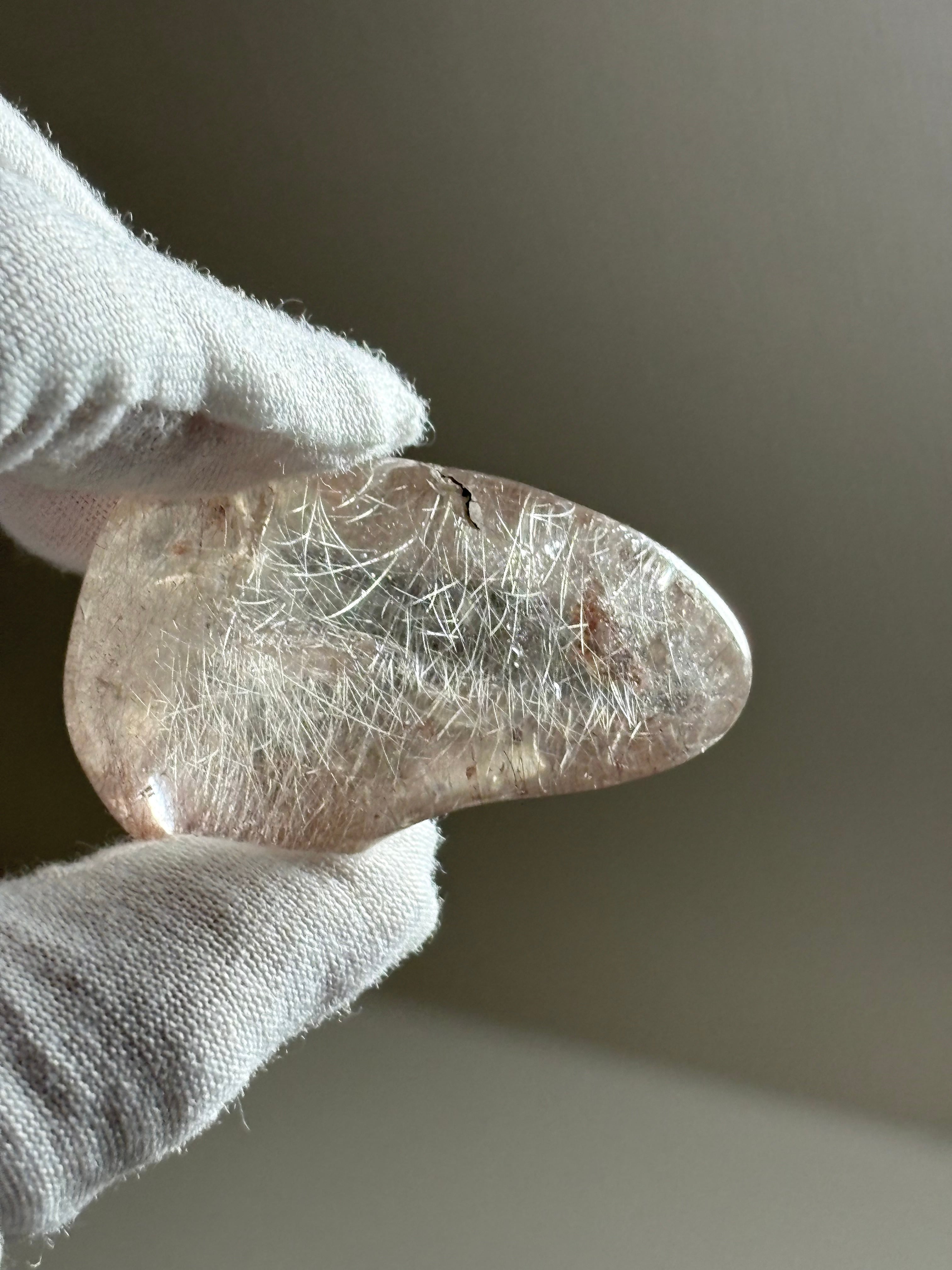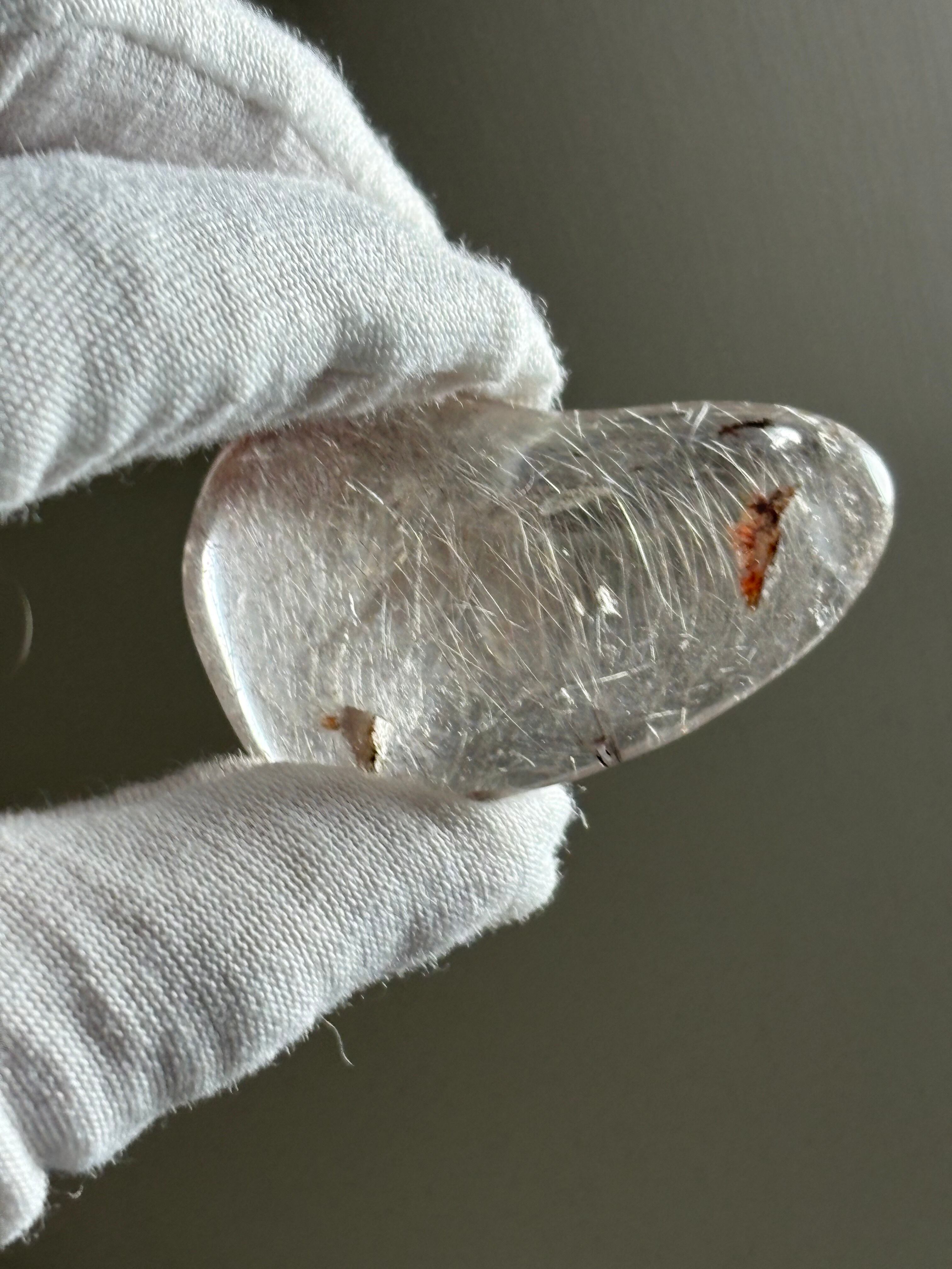 一見普通のスモーキークォーツなのかな・・?と思いきや細~いルチルが入っていて光にかざすとキラキラ輝いてとても綺麗です。素敵です・・(*^_^*)