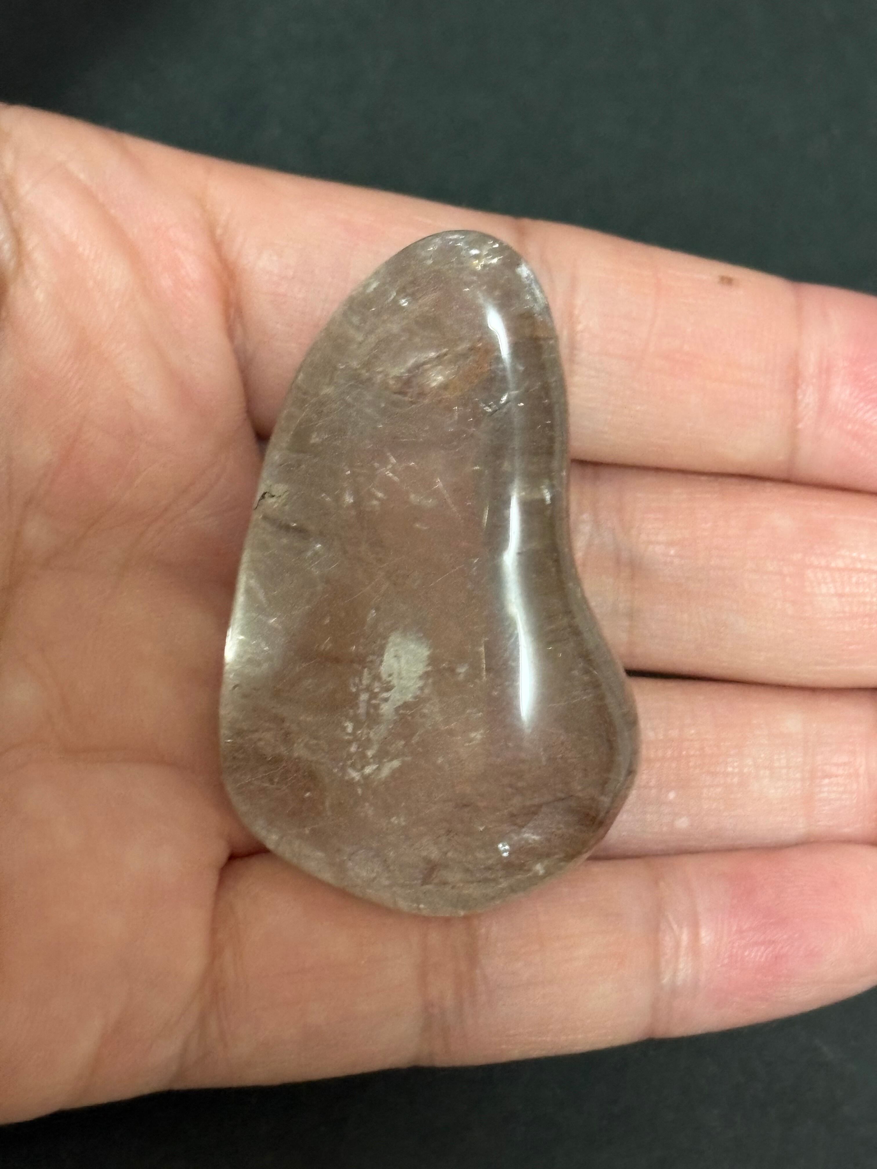 このスモーキールチルクォーツは、グレーがかったブラウンの美しい色味と透明感が特徴で、穏やかなエネルギーを放っています。スモーキールチルクォーツは、心を落ち着け、ネガティブなエネルギーから保護してくれると言われており、煩わしい思考を浄化する手助けをしてくれるでしょう。