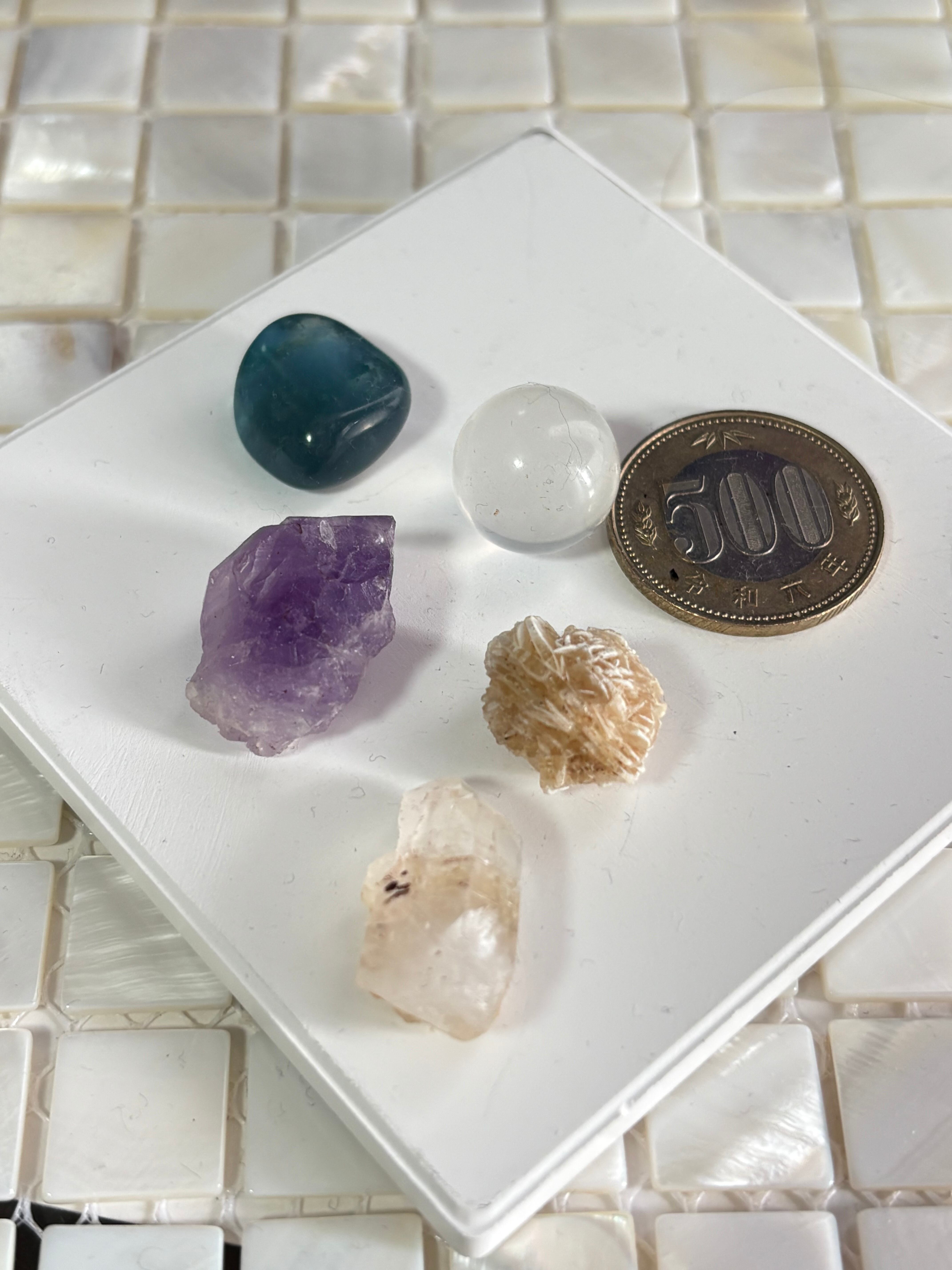 小さいですが美しいミニタンブルセットです。お部屋のインテリアとしても愛らしく、一点一点全く違うパワーストーンなので、毎日の気分で今日のお守りパワーストーンを選ぶのも楽しく、タロットカードなどでの置き石としてもご活用いただけます。