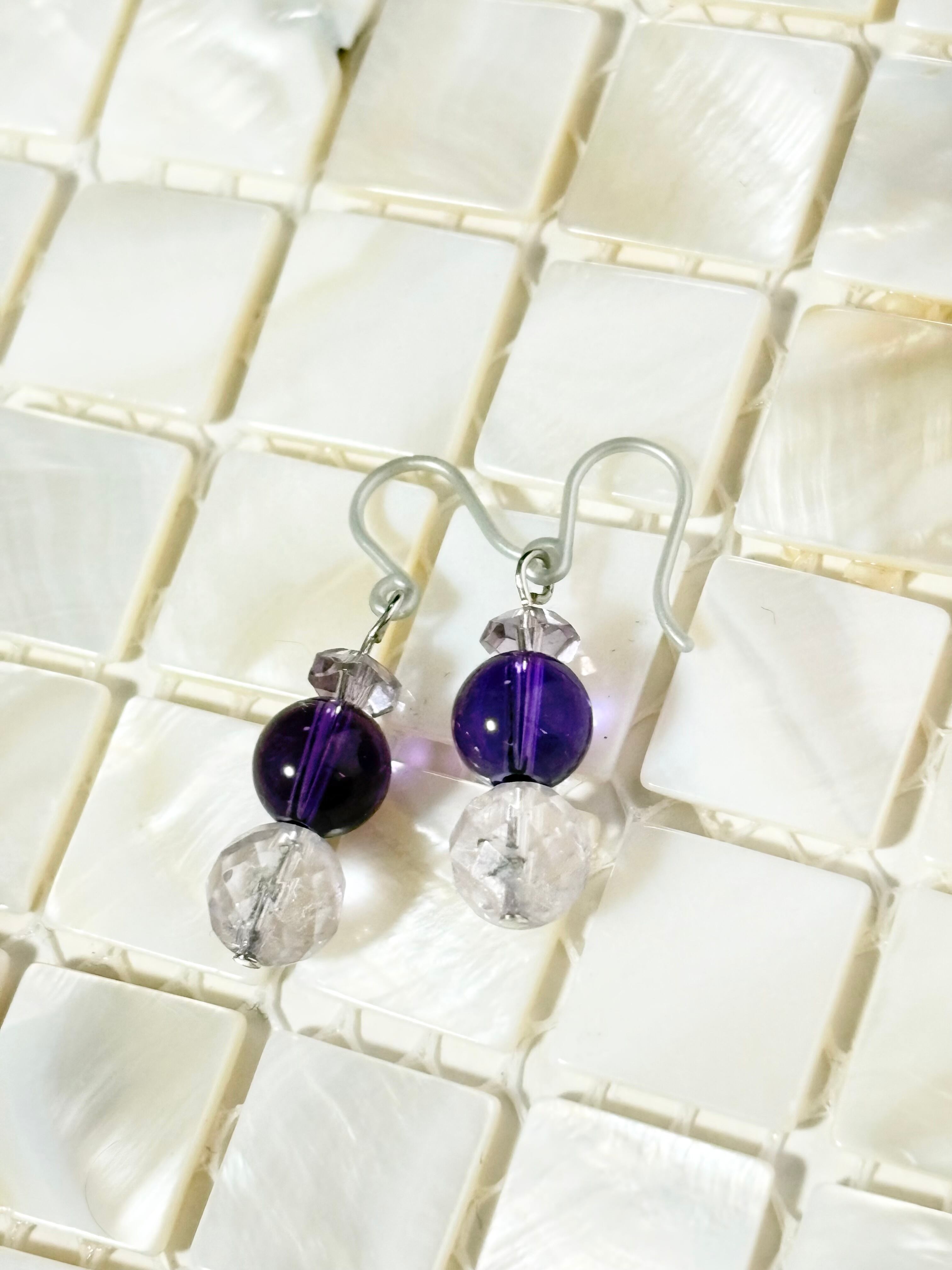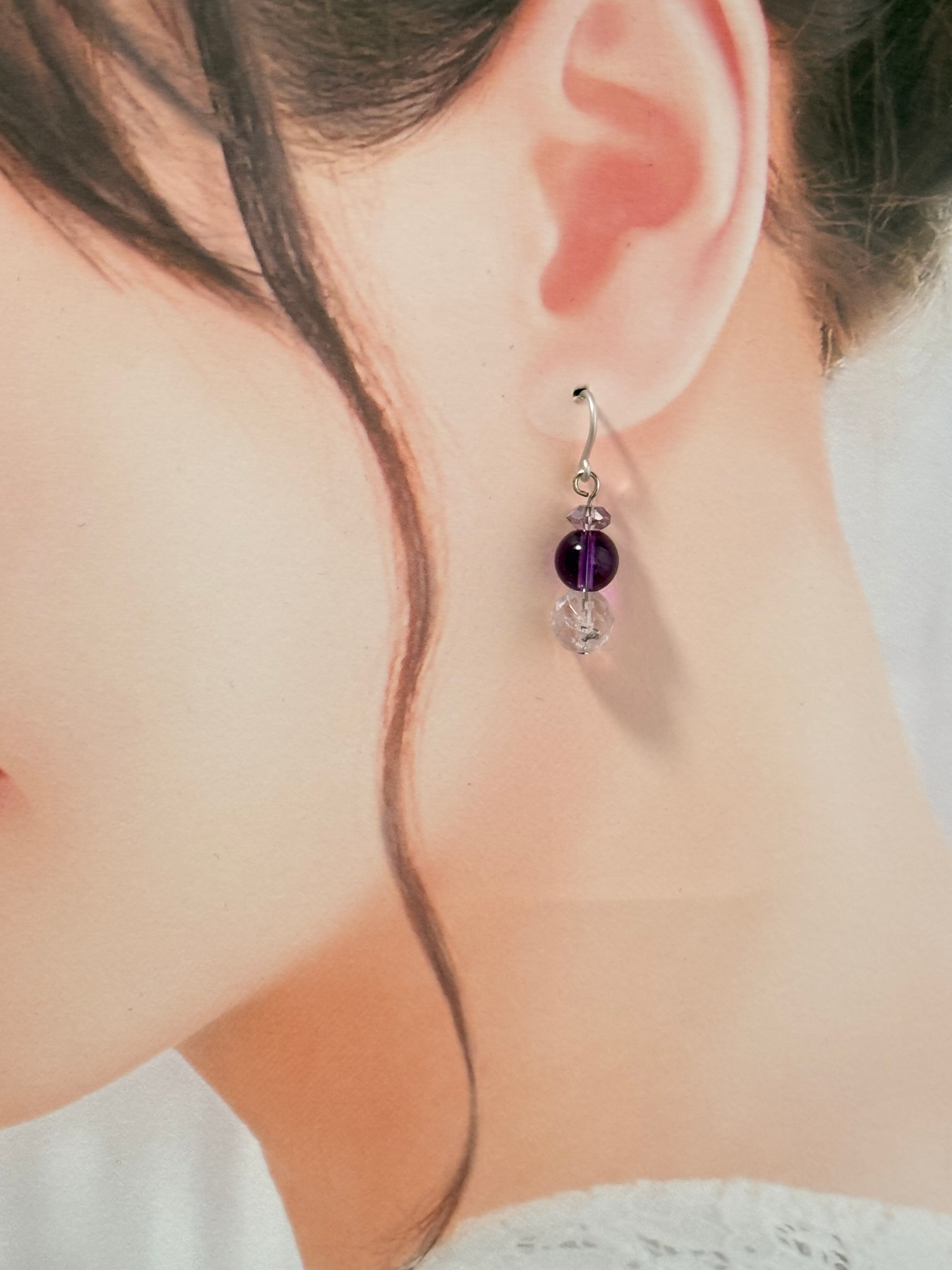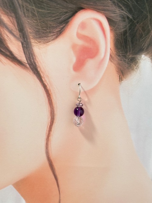 アメジストピアスは、豊かな紫色の美しいアメジストを使用した、アレルギー対応の樹脂ピアスです。肌に優しく、デイリーユースにもぴったりなアイテムです。