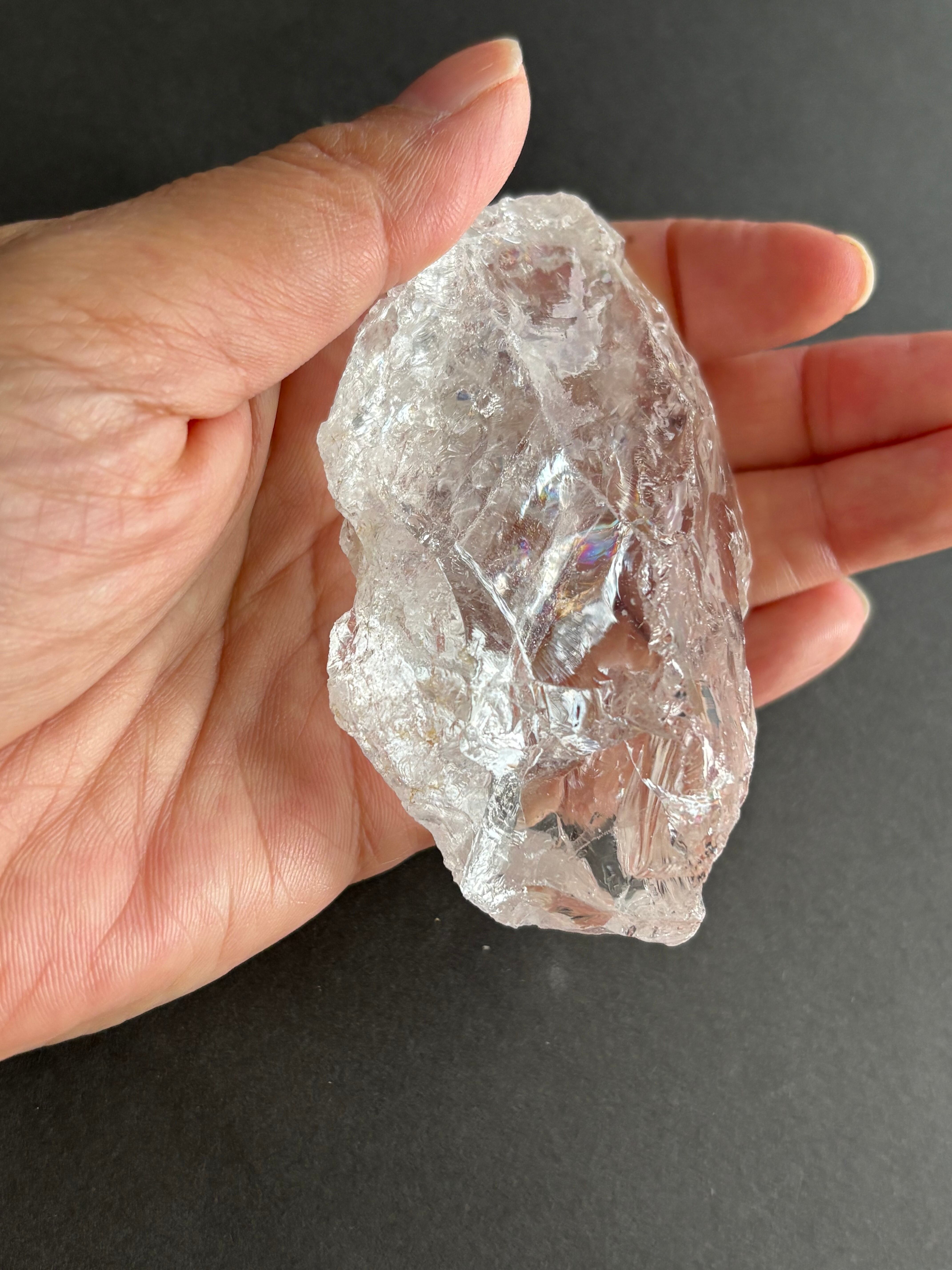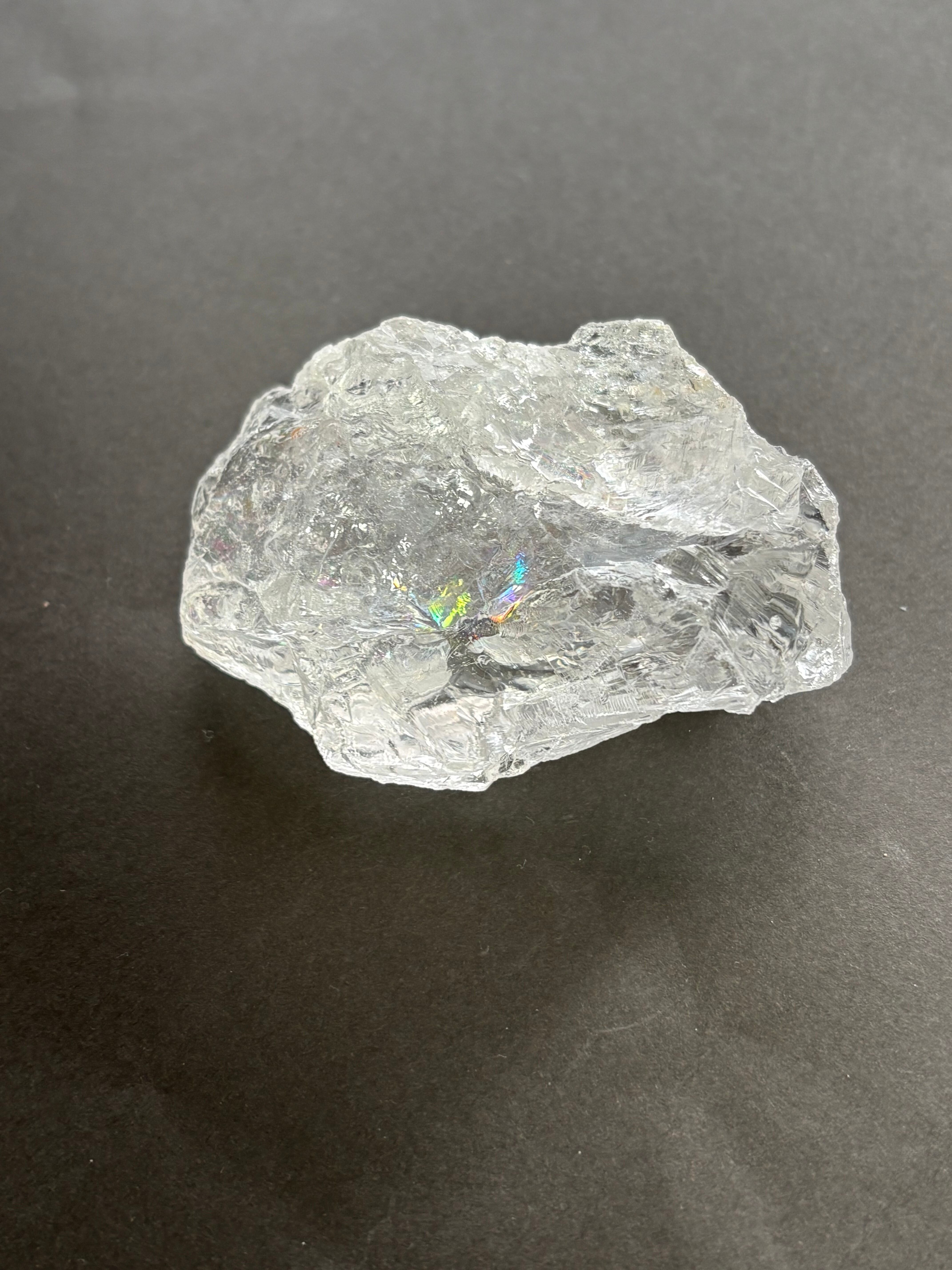 おおらかなブラジルの大地で生成さあれた透明度が高いブラジル産クラック水晶ですが、非常に濃く美しい虹があちこちできらめきます。写真よりも実物の方が虹が濃く美しく見ることが出来ます。是非色々な角度からおたのしみくださませ♡