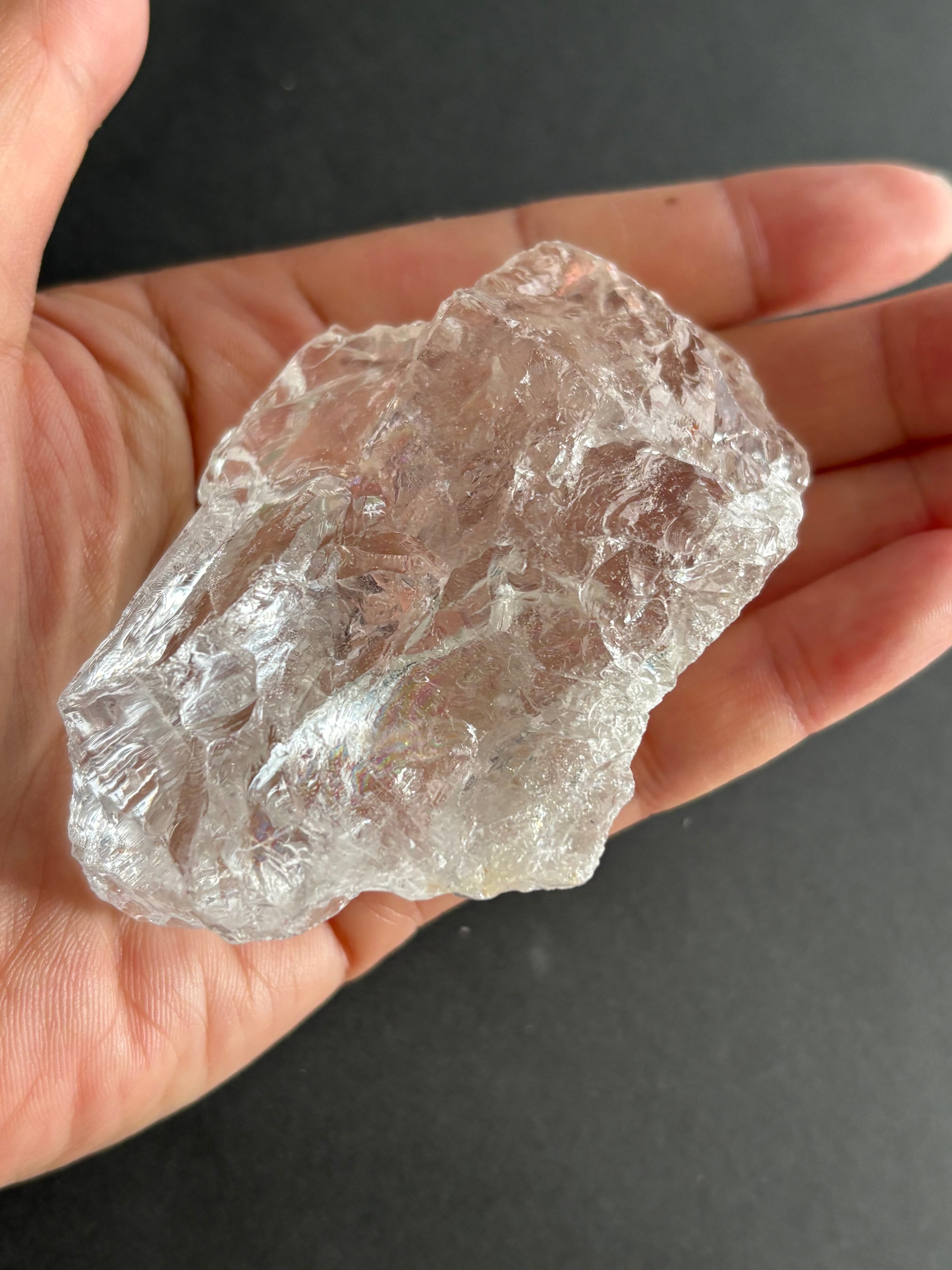 ロッククリスタルは、その純粋なエネルギーで知られ、多くの人々に愛されているクリスタルです。特に、虹入りのこのクリスタルは、まさに特別な存在です。持つだけで幸運や繁栄を引き寄せる力があると信じられています。瞑想やヒーリングのパートナーとしても最適で、内なる成長や直感をサポートします。