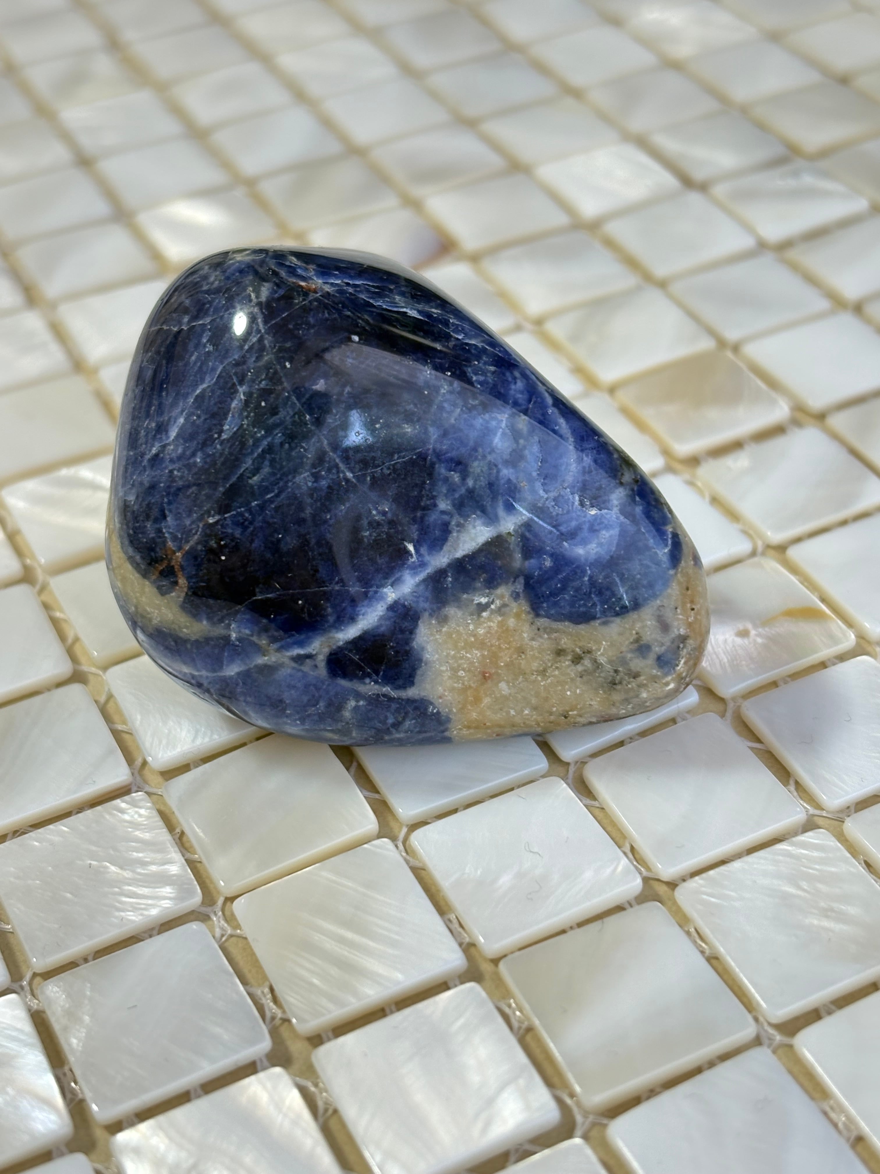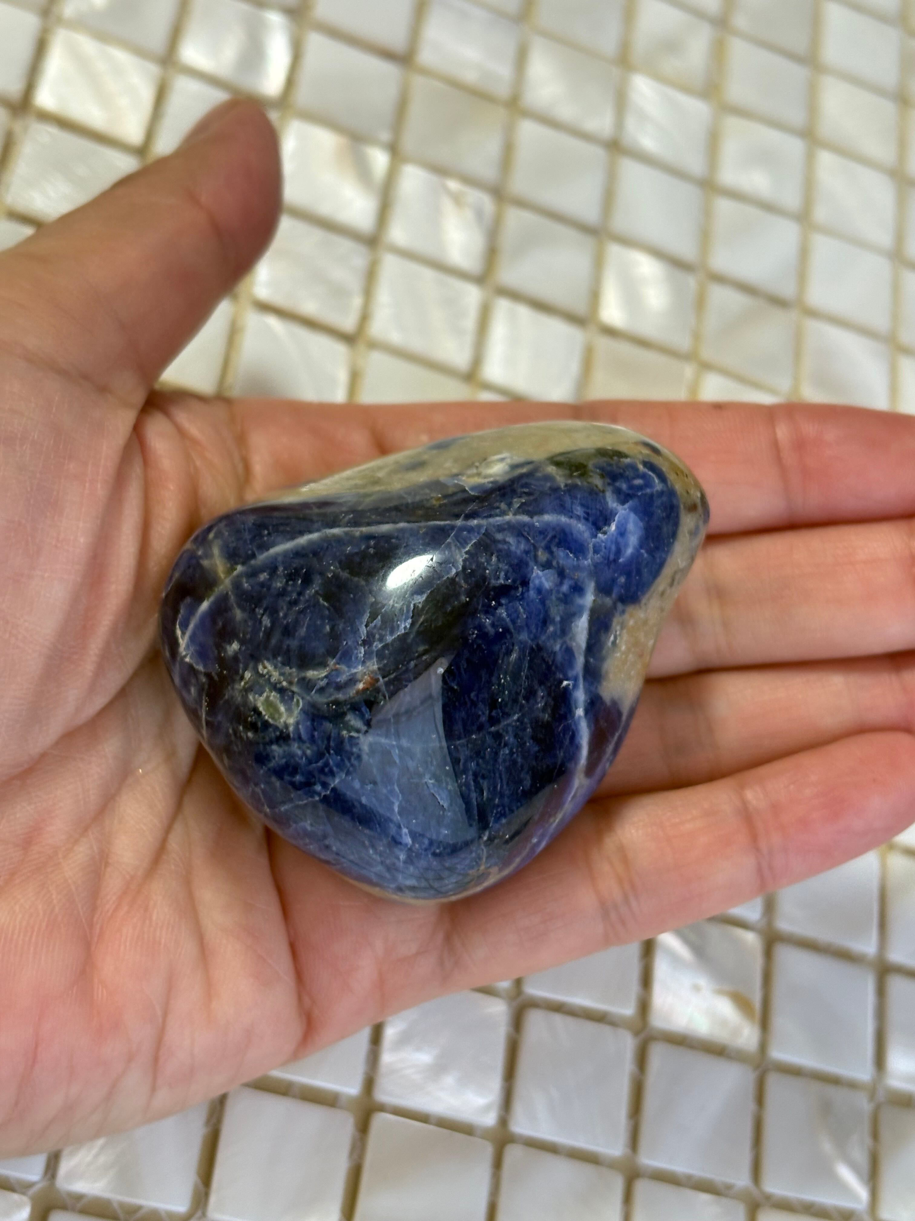 深い青色に魅了されるソーダライト(大)置き石です。このユニークな石は、その美しい色合いと自然の形状が特徴で、お部屋を引き立てるインテリアアイテムとして最適です!(*^_^*)