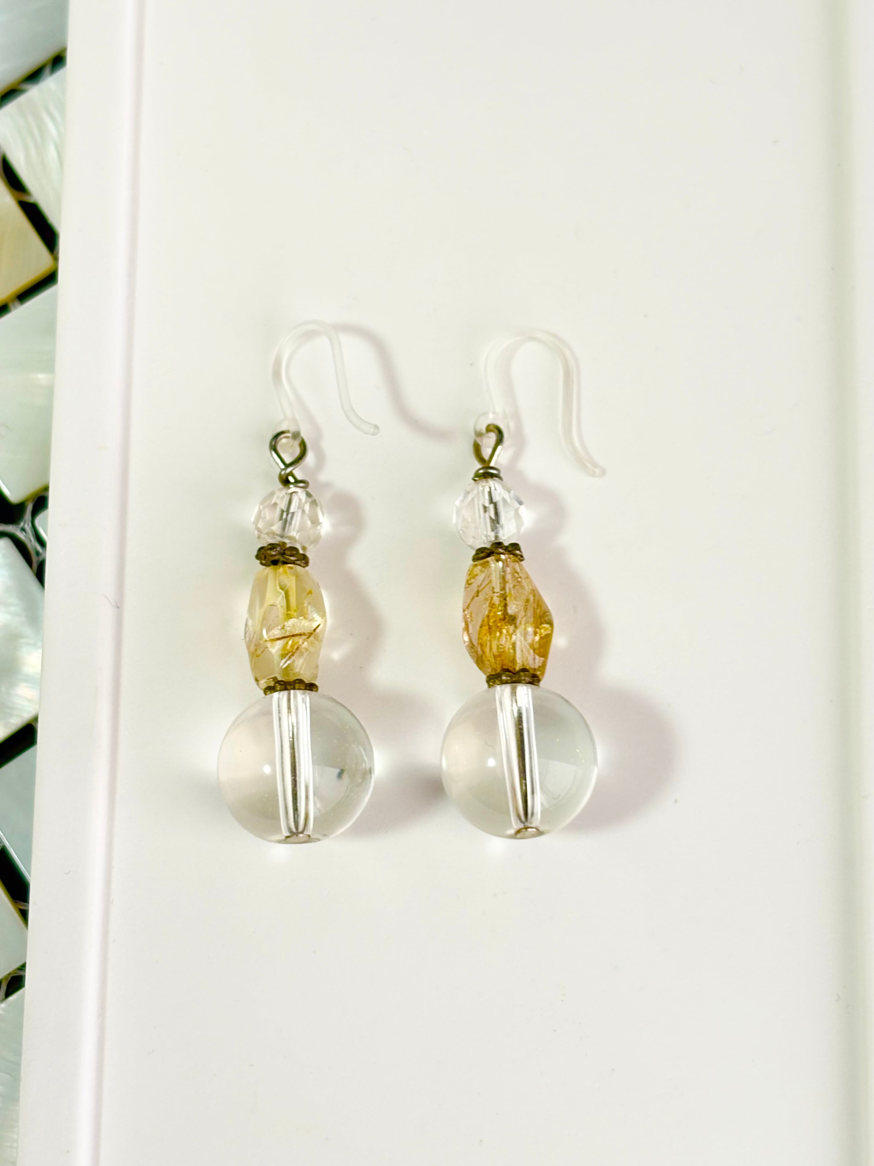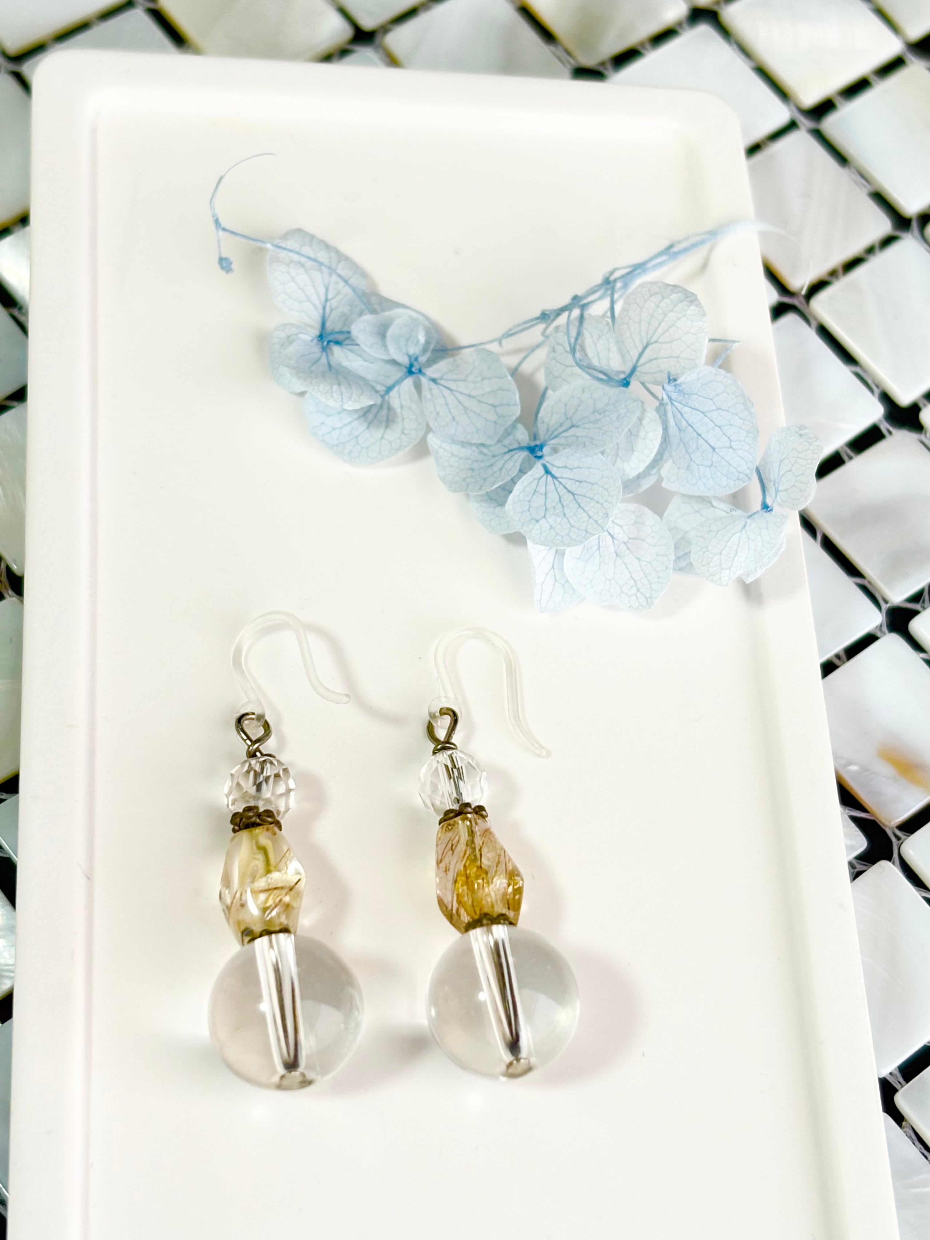 水晶ルチルクォーツピアス(アレルギー対応樹脂ピアス)