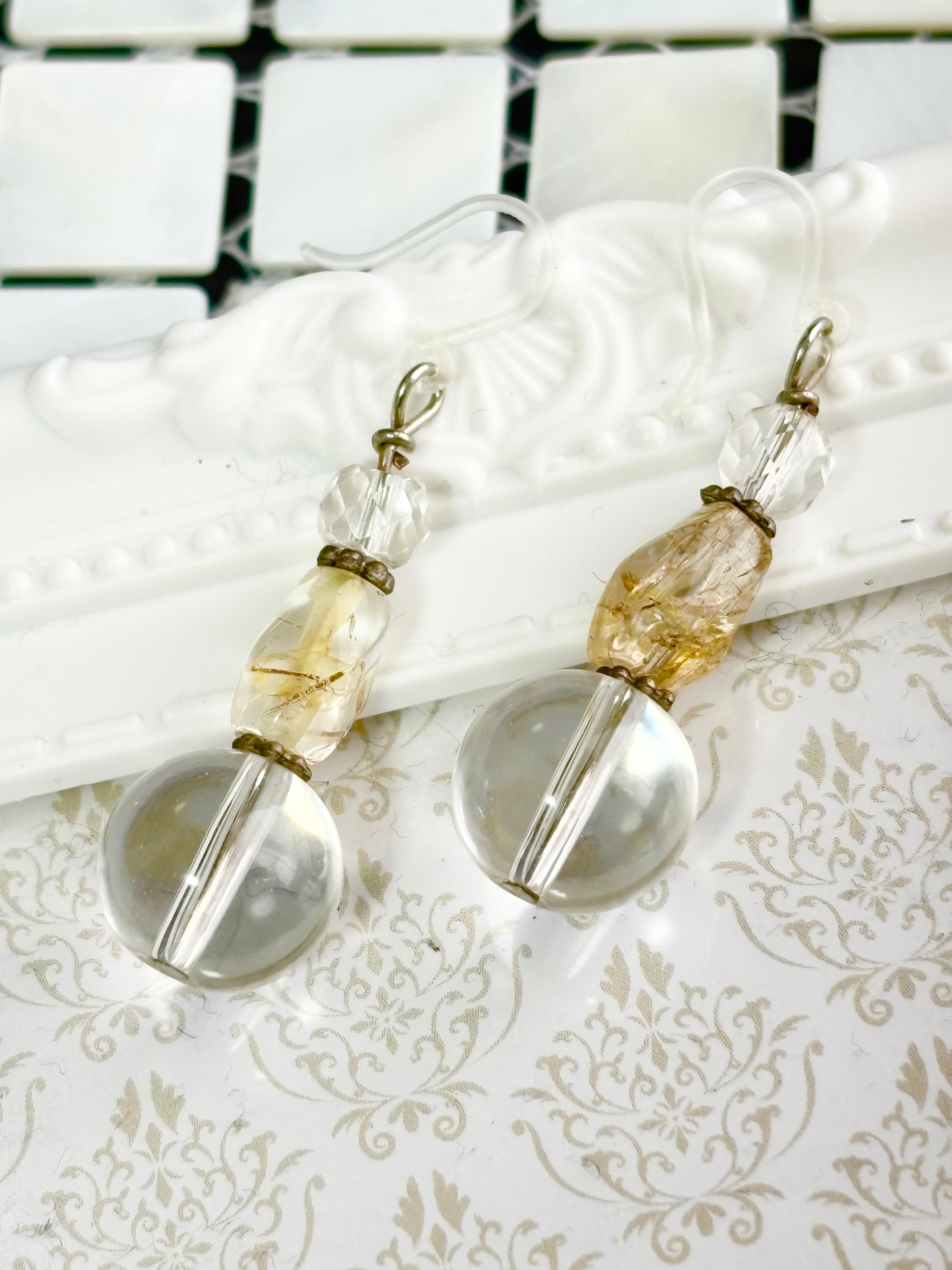 美しい水晶ルチルクォーツの輝きが、あなたの耳元を華やかに彩ります。どんなお洋服にも合わせやすく、自分らしいオシャレを楽しむサポートをしてくれるでしょう。特別な贈り物にも最適です!