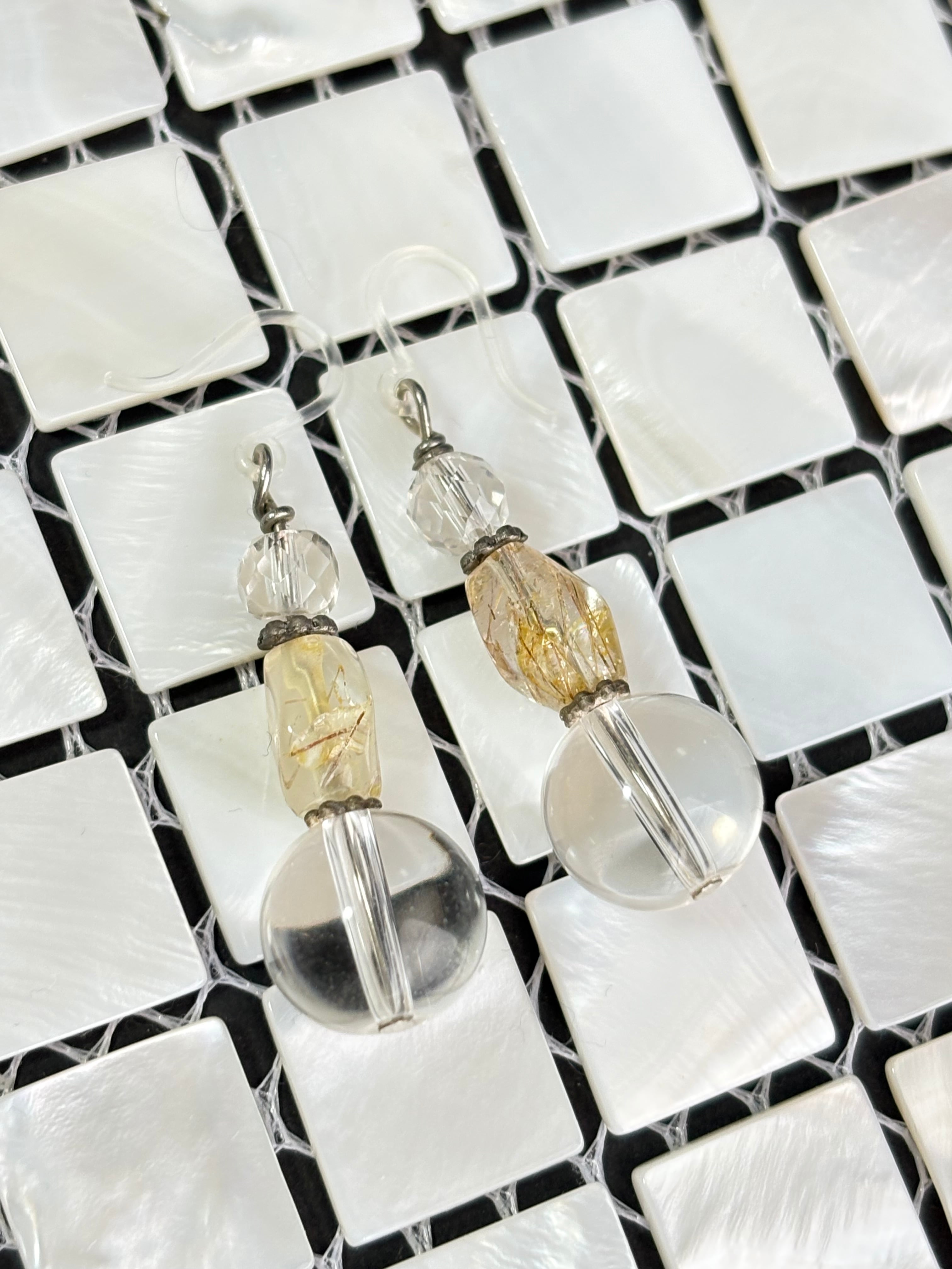 上質な水晶ルチルクォーツを使用した、繊細で美しいピアスです。水晶ルチルクォーツは、金色のルチルが含まれており、その独特な輝きが魅力的です!(*^_^*)上質な水晶ルチルクォーツを使用した、繊細で美しいピアスです。水晶ルチルクォーツは、金色のルチルが含まれており、その独特な輝きが魅力的です!(*^_^*)