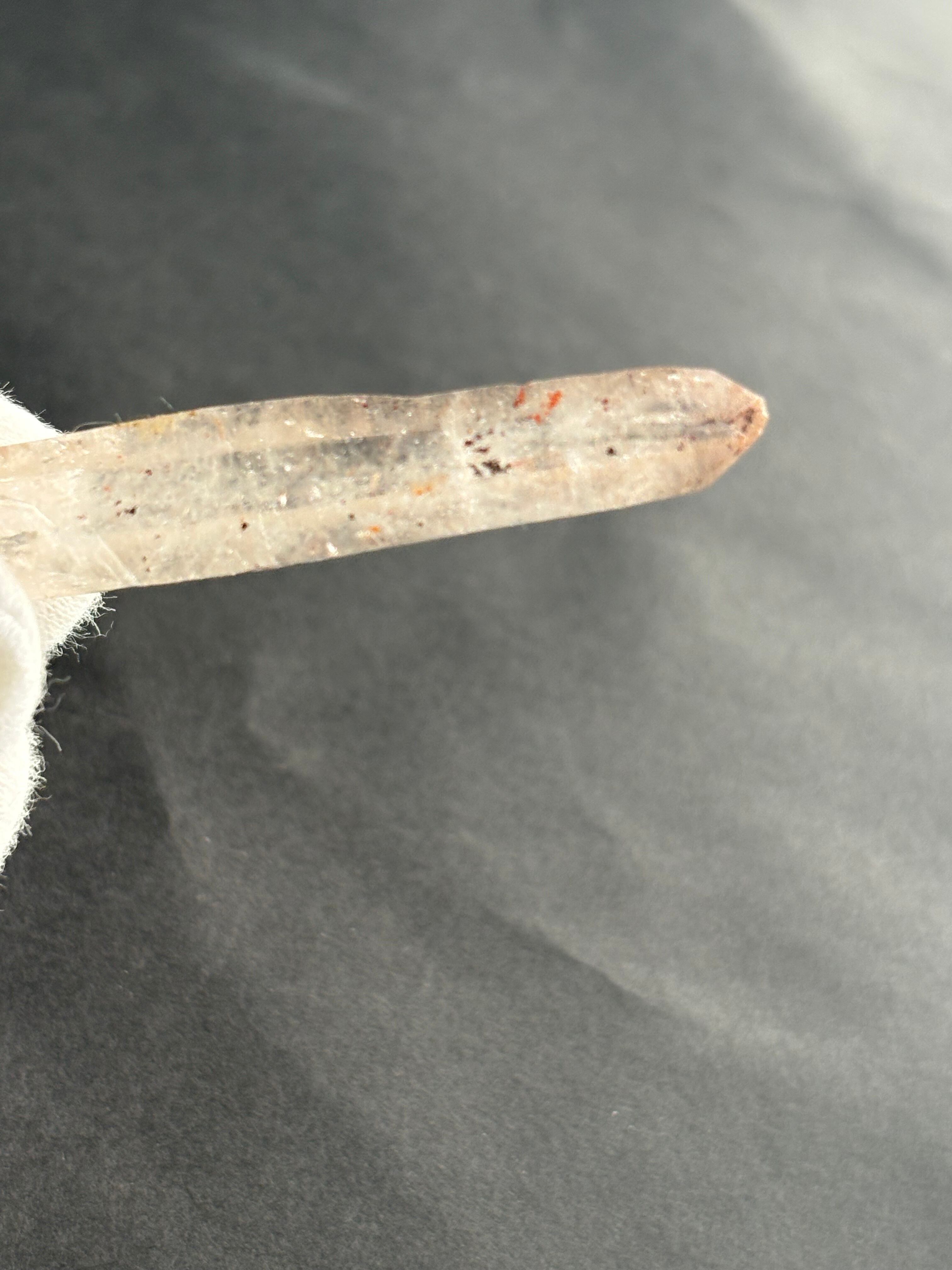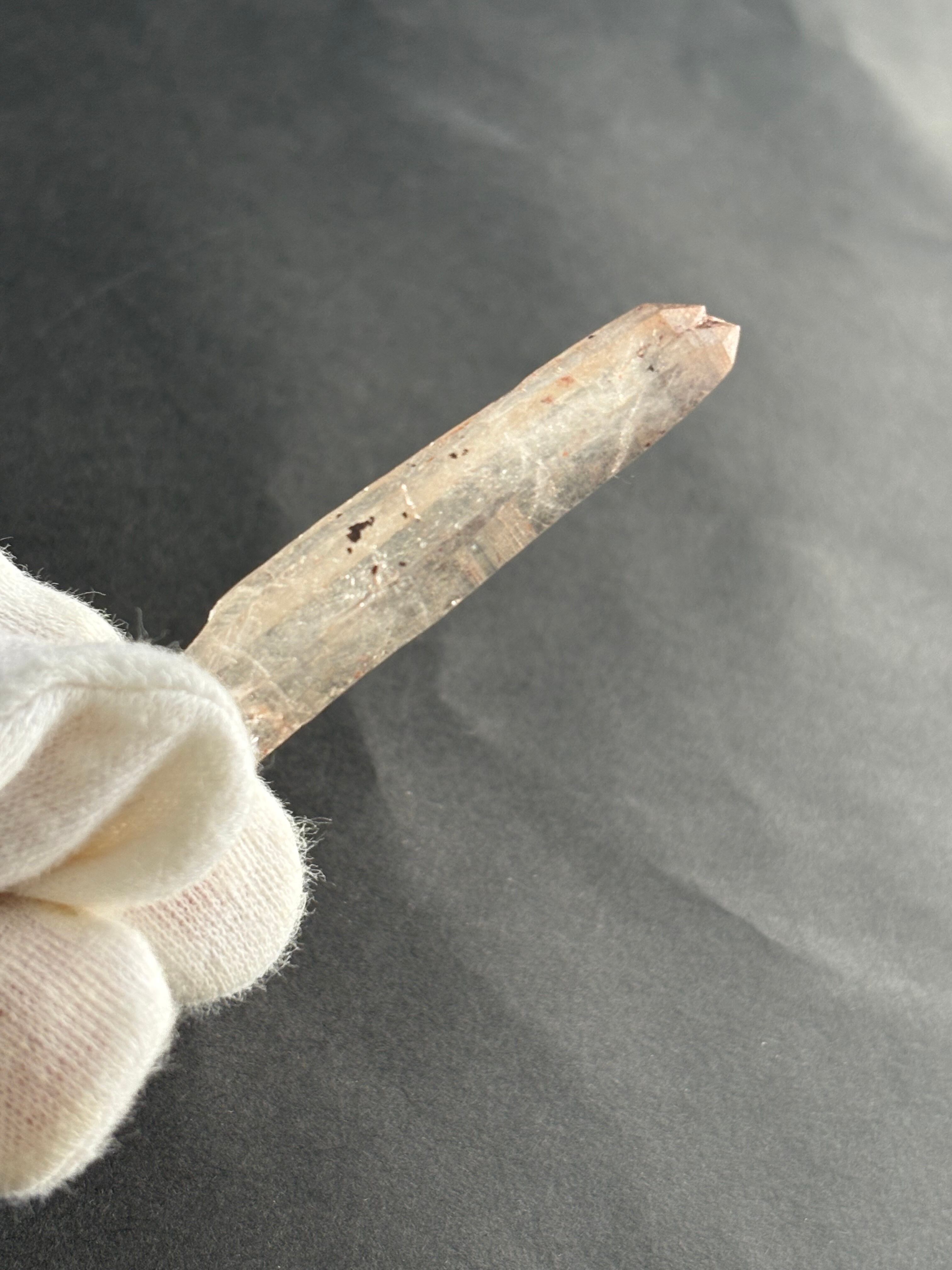こちらは人気があるブラジルカブラル山脈産のレムリアンシードです。レムリアンリッジは浅めですが、このレムリアンは同じひとつの水晶を元にして先端が二つに分かれている「タントリックツイン」というレアなマスタークリスタルです。しかも、両方の先端が二つに分かれているダブル「タントリックツイン」になっているところが非常に面白く、かなりレアなレムリアンシードになります。