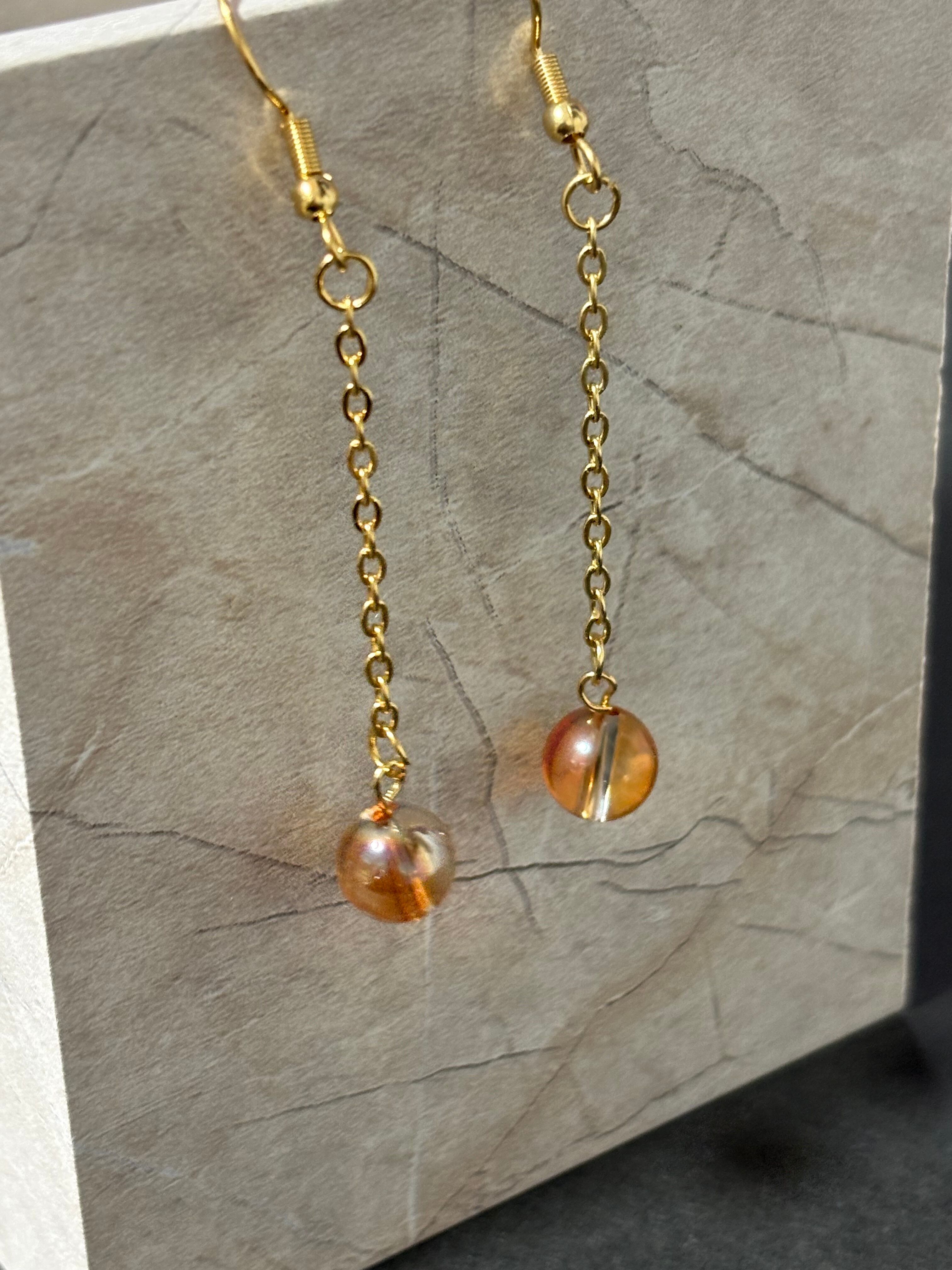 このピアスはオレンジアクアオーラを使用しており、その色合いはまるで夕日のように温かみがあります。どんなスタイルにもぴったり合うので、普段使いはもちろん、特別な日のアクセントとしてもおすすめです。