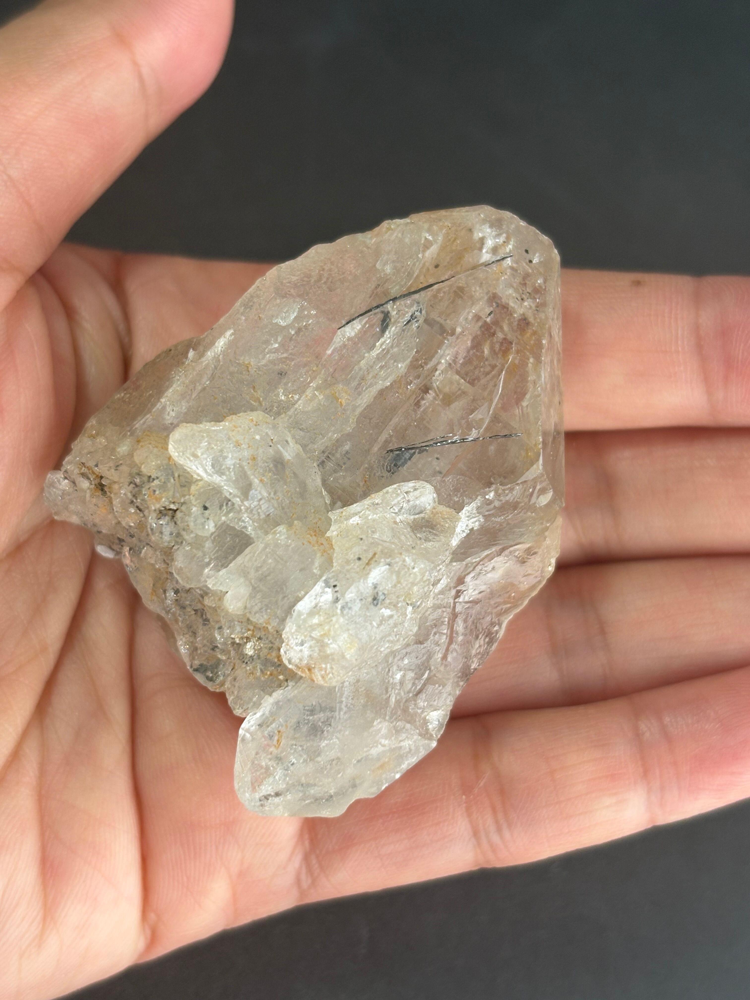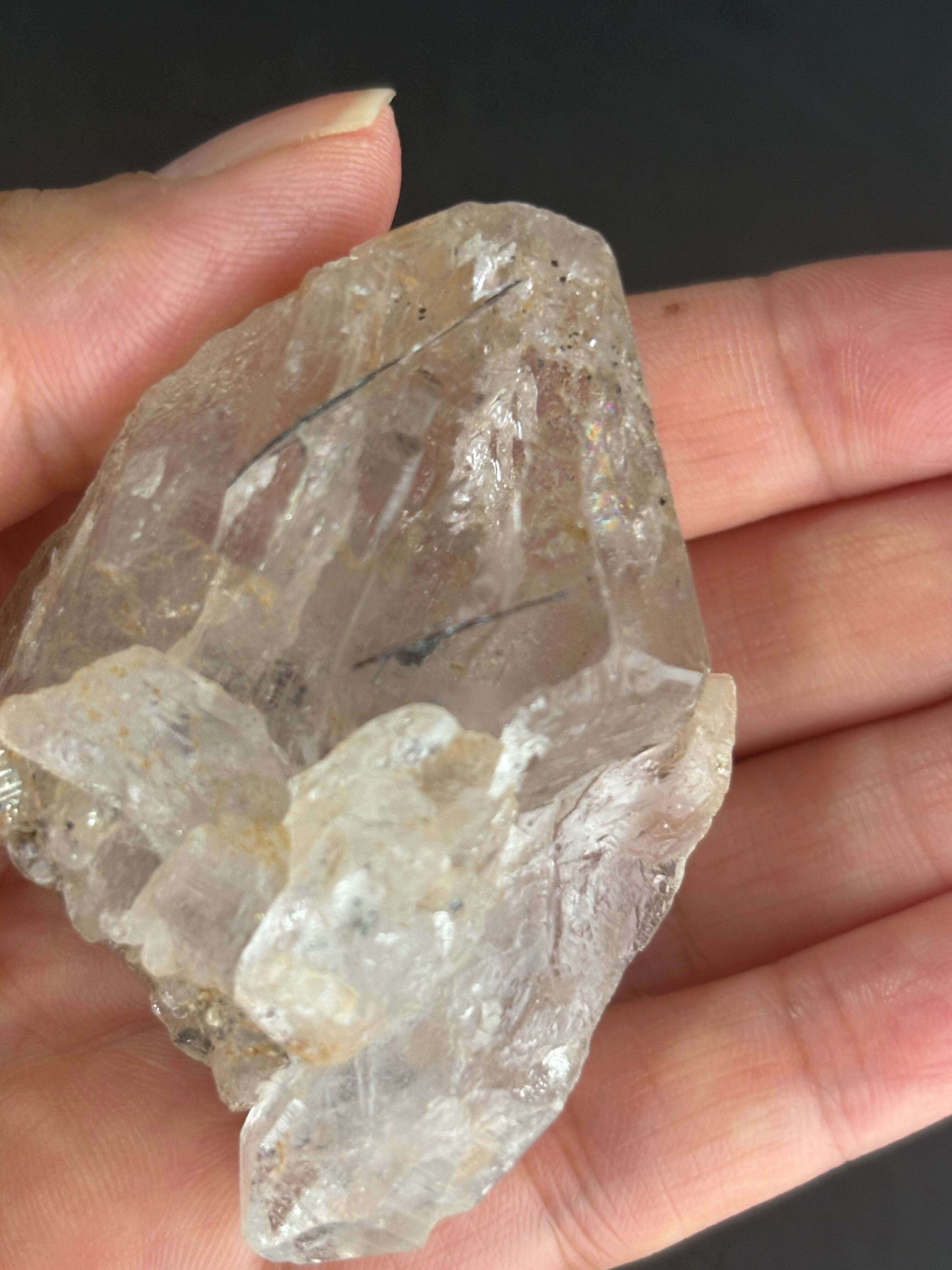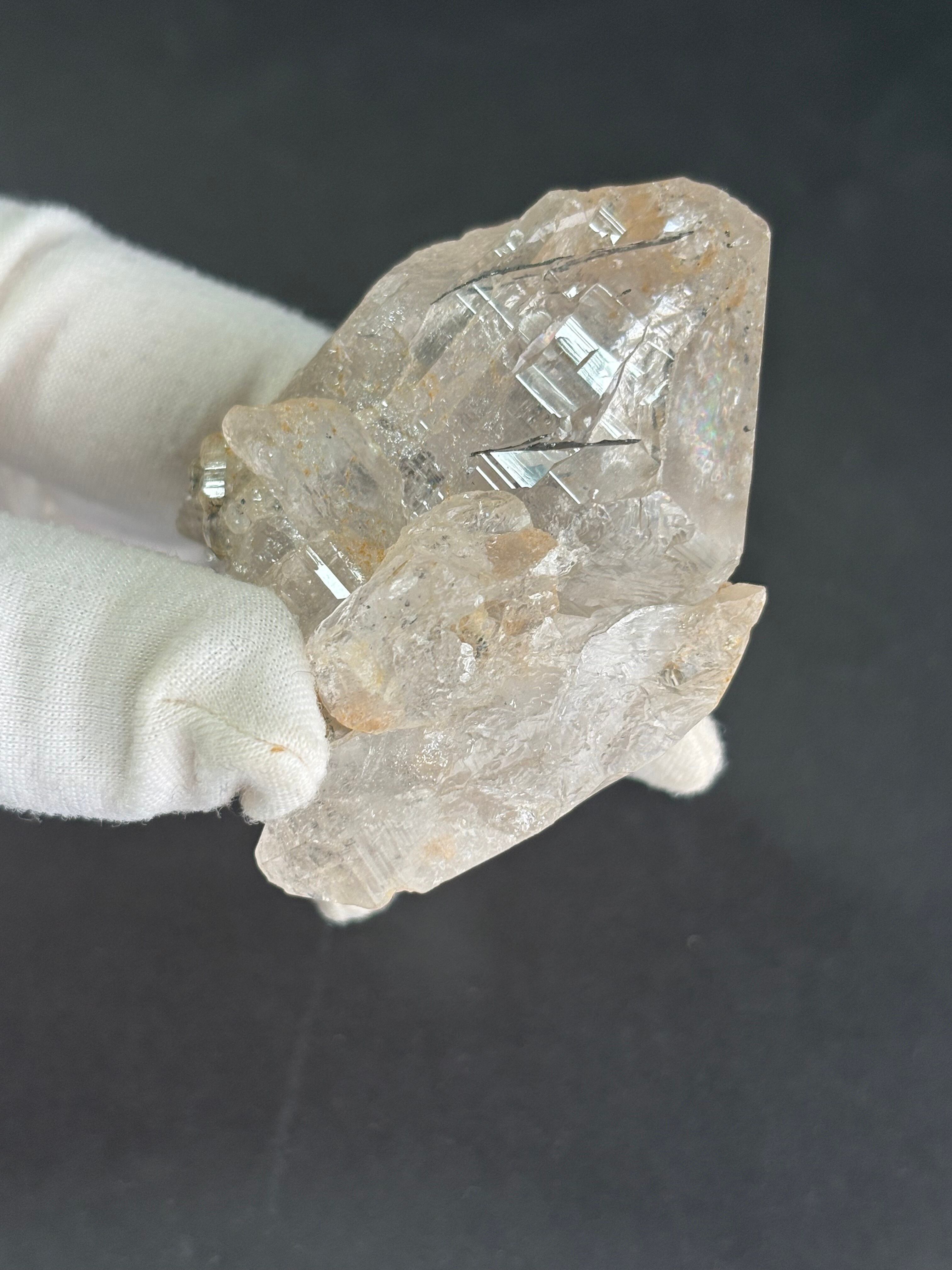 ガネーシュヒマール水晶の中で、最も多様性のある水晶が多く産出されるのがラパの特徴です。 一般に、ガネーシュヒマール産と呼ばれている水晶の多くはラパ産です。 ラパ・ガネーシュヒマール産水晶は、一つとして同じものはないといえるほど個性的な結晶が多いのが特徴です。 クローライト(緑泥石)、サージェナイト(トルマリン・角閃石などが針状になったもの)ヘマタイト、マイカ、バイオタイトなどのインクルージョンが入った結晶や、 ダブルポイント、マルチターミネーター、曲がり水晶、セプター(松茸水晶、キノコ水晶)、エレスチャル(スケルタル)、ツインクォーツなど 形が個性的で珍しいもの、密度の非常に高い透明感があり、表面に光沢を放つもの、 側面に結晶の成長の跡である特徴的なバーコード状の条線が刻まれたものや、先端のファセット面に三角形状のレコードキーパーが見られるものなど、 多種多様な水晶が産出されます。 またごく稀に、ファセット面に凹状の逆三角形の模様が刻まれた「トライゴーニック」という水晶が産出することもあり、 レコードキーパーなどに比べて数が少なく、非常に希少価値が高いです。 その他にも、鉄分が表面全体に薄く付着して金色や虹色に輝く「ゴールデンヒーラー」と呼ばれる美しい水晶や、 スモーキークォーツなども産出されます。 珍しいものでは、トルマリンやルチル(サージェナイト)とクローライトなどの複数のインクルージョンが入った結晶や、 美しいファントム(山入り)クォーツなどがあります。 ポイント水晶だけではなくクラスターも多く産出され、クローライトやサージェナイトのインクルージョン入りのクラスターなど、様々なバリエーションのクラスター水晶が産出されるのもラパの特徴です。 ガネーシュヒマール産水晶の鉱山の多くがラパに存在するため、ここから産出される水晶は品質においてもタイプにおいても様々な個性を主張しています 出来るだけ忠実に商品のイメージをお伝えしようと心がけて おりますが、実際の商品とは色、イメージが異なる場合がありますので ご了承下さい。 当店の商品は全て返品可能ですので ご安心してお買い求めいただけます。返品の際の送料に関しましては恐れ入りますがお客様のご負担でお願い申し上げます。破損、不良品など当店に責がある場合は当店が負担いたします。)