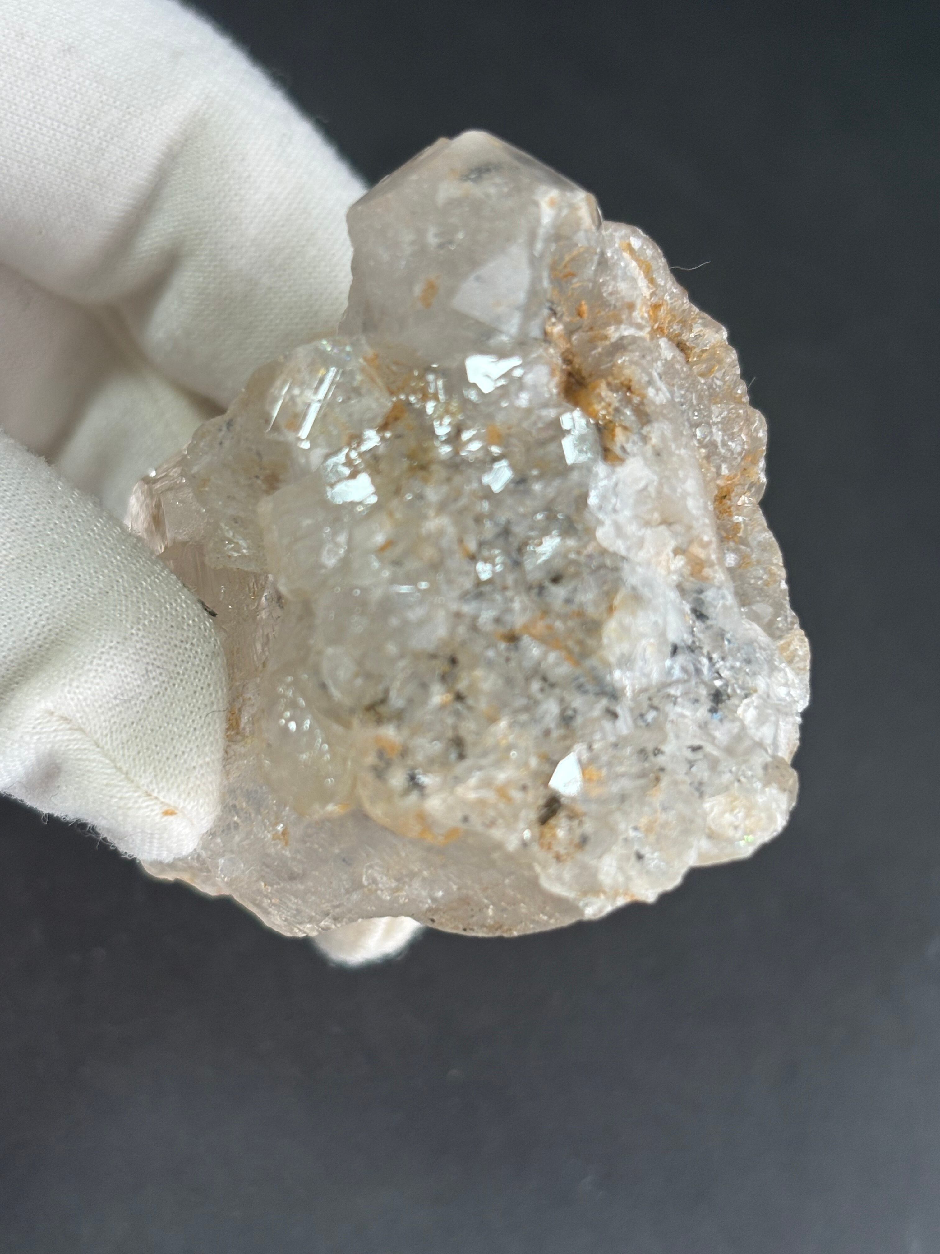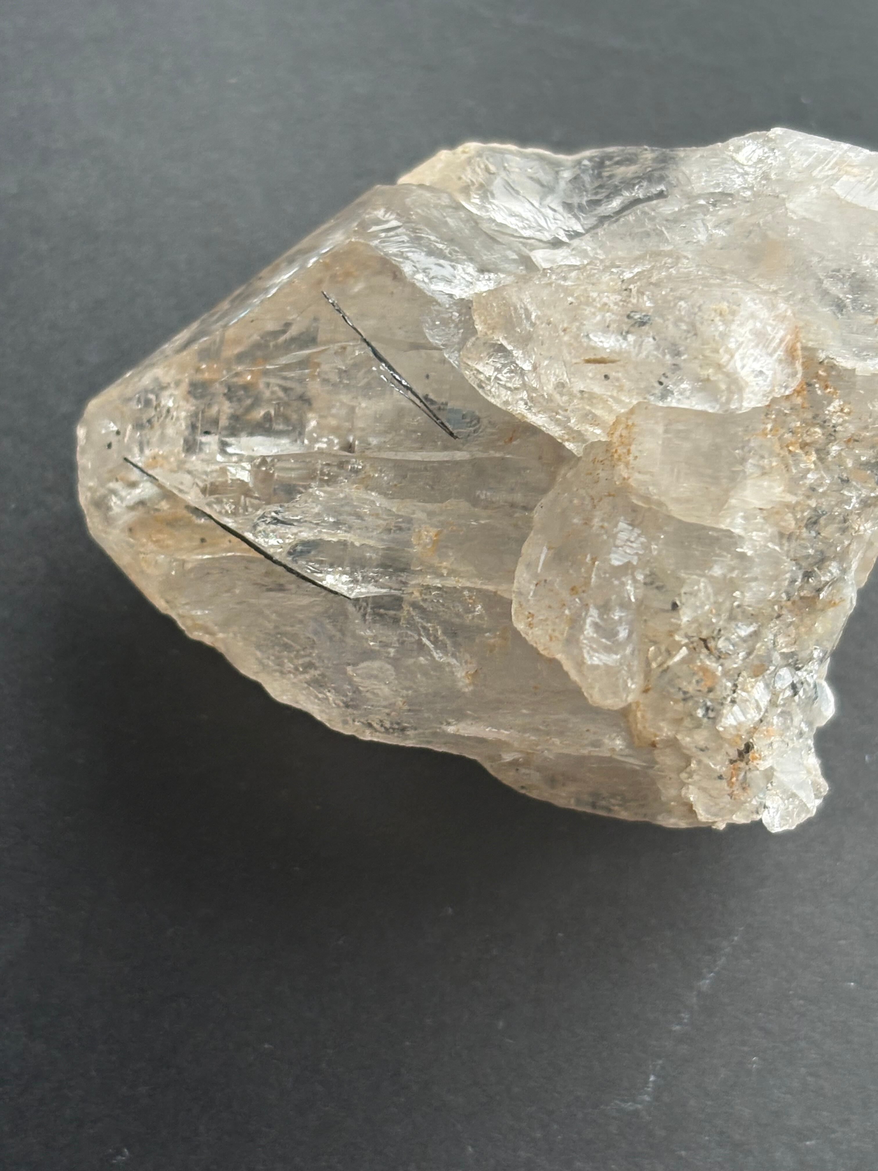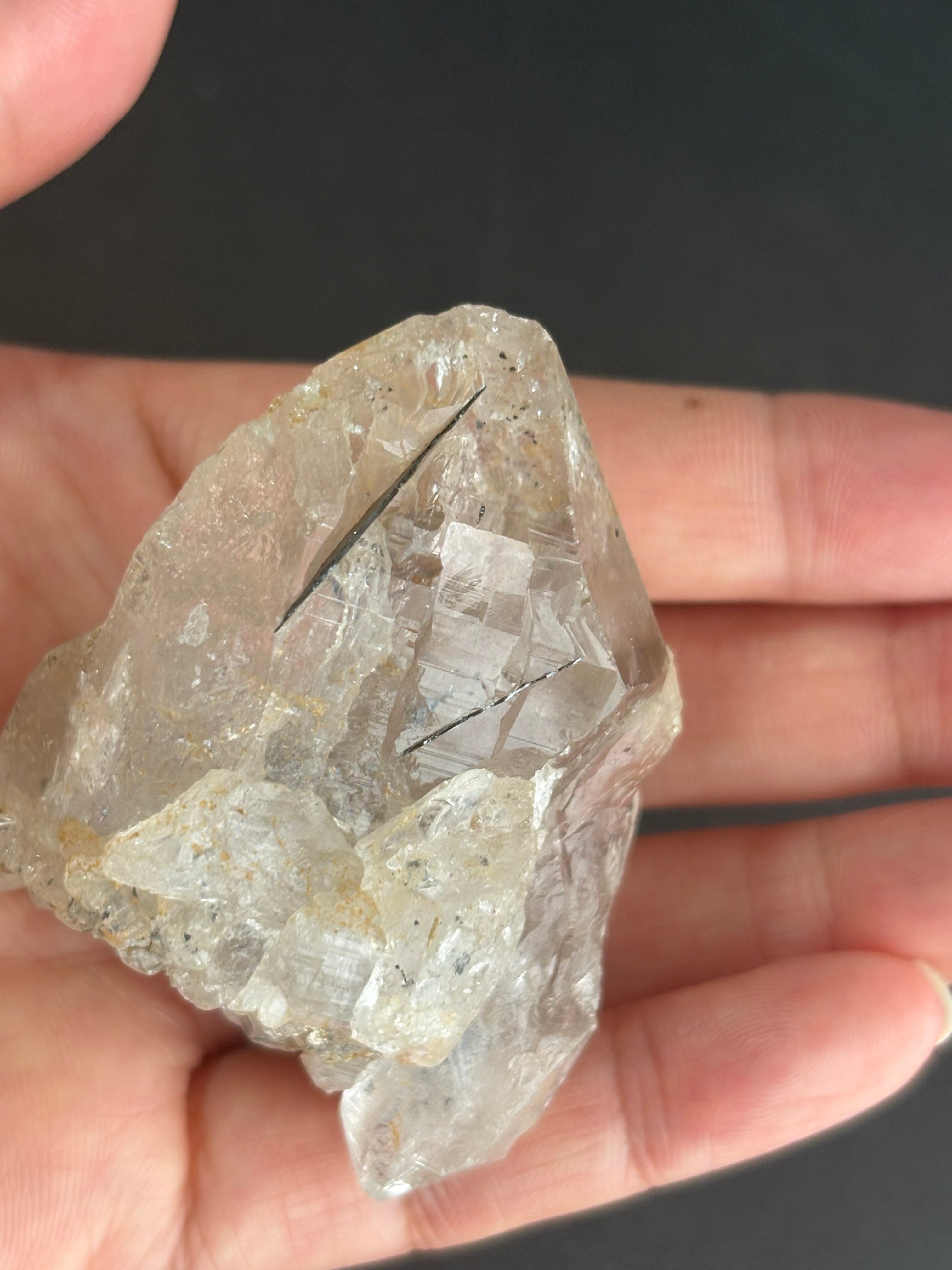 ガネーシュヒマール水晶の中で、最も多様性のある水晶が多く産出されるのがラパの特徴です。 一般に、ガネーシュヒマール産と呼ばれている水晶の多くはラパ産です。 ラパ・ガネーシュヒマール産水晶は、一つとして同じものはないといえるほど個性的な結晶が多いのが特徴です。 クローライト(緑泥石)、サージェナイト(トルマリン・角閃石などが針状になったもの)ヘマタイト、マイカ、バイオタイトなどのインクルージョンが入った結晶や、 ダブルポイント、マルチターミネーター、曲がり水晶、セプター(松茸水晶、キノコ水晶)、エレスチャル(スケルタル)、ツインクォーツなど 形が個性的で珍しいもの、密度の非常に高い透明感があり、表面に光沢を放つもの、 側面に結晶の成長の跡である特徴的なバーコード状の条線が刻まれたものや、先端のファセット面に三角形状のレコードキーパーが見られるものなど、 多種多様な水晶が産出されます。 またごく稀に、ファセット面に凹状の逆三角形の模様が刻まれた「トライゴーニック」という水晶が産出することもあり、 レコードキーパーなどに比べて数が少なく、非常に希少価値が高いです。 その他にも、鉄分が表面全体に薄く付着して金色や虹色に輝く「ゴールデンヒーラー」と呼ばれる美しい水晶や、 スモーキークォーツなども産出されます。 珍しいものでは、トルマリンやルチル(サージェナイト)とクローライトなどの複数のインクルージョンが入った結晶や、 美しいファントム(山入り)クォーツなどがあります。 ポイント水晶だけではなくクラスターも多く産出され、クローライトやサージェナイトのインクルージョン入りのクラスターなど、様々なバリエーションのクラスター水晶が産出されるのもラパの特徴です。 ガネーシュヒマール産水晶の鉱山の多くがラパに存在するため、ここから産出される水晶は品質においてもタイプにおいても様々な個性を主張しています 出来るだけ忠実に商品のイメージをお伝えしようと心がけて おりますが、実際の商品とは色、イメージが異なる場合がありますので ご了承下さい。 当店の商品は全て返品可能ですので ご安心してお買い求めいただけます。返品の際の送料に関しましては恐れ入りますがお客様のご負担でお願い申し上げます。破損、不良品など当店に責がある場合は当店が負担いたします。)