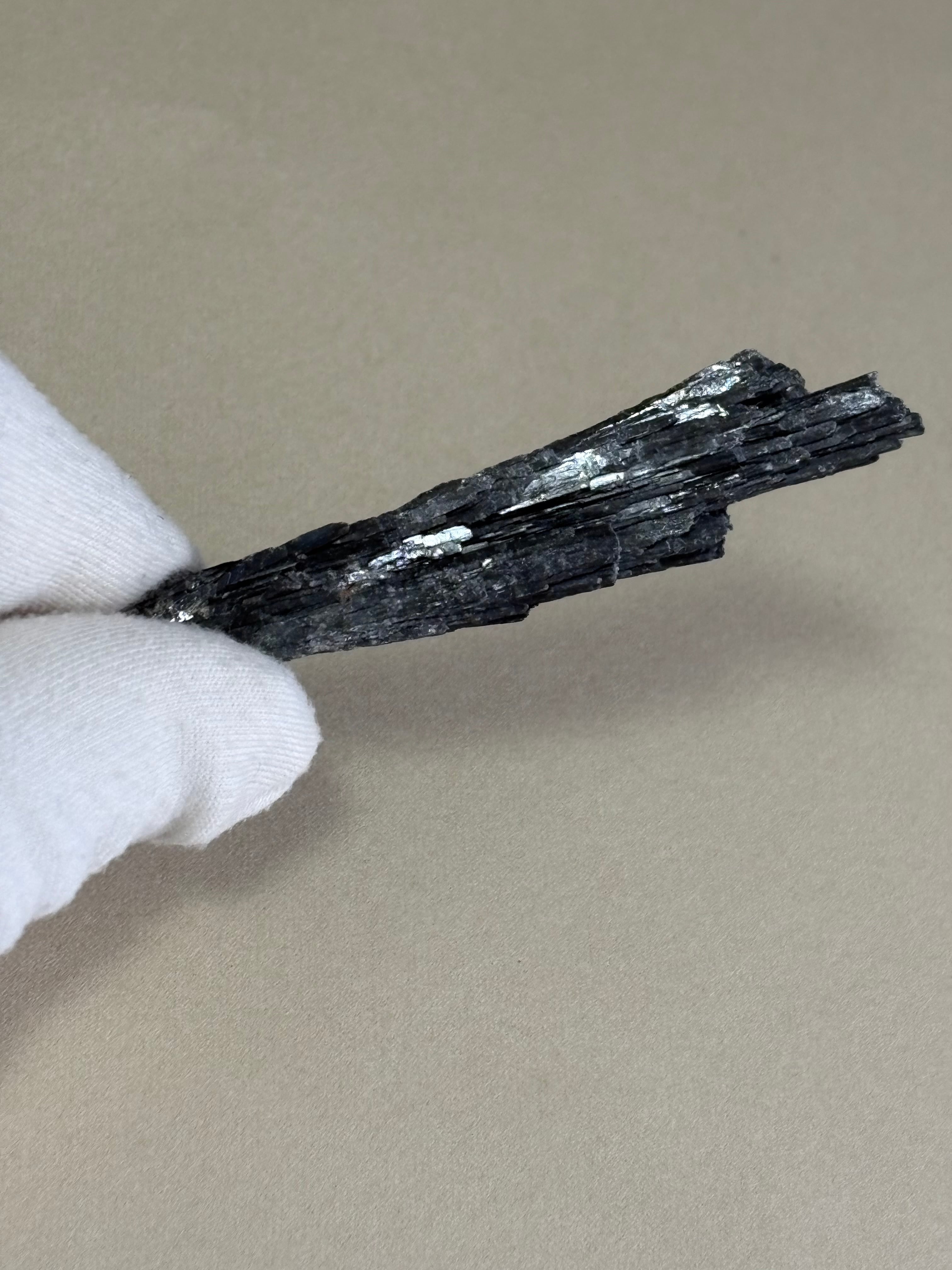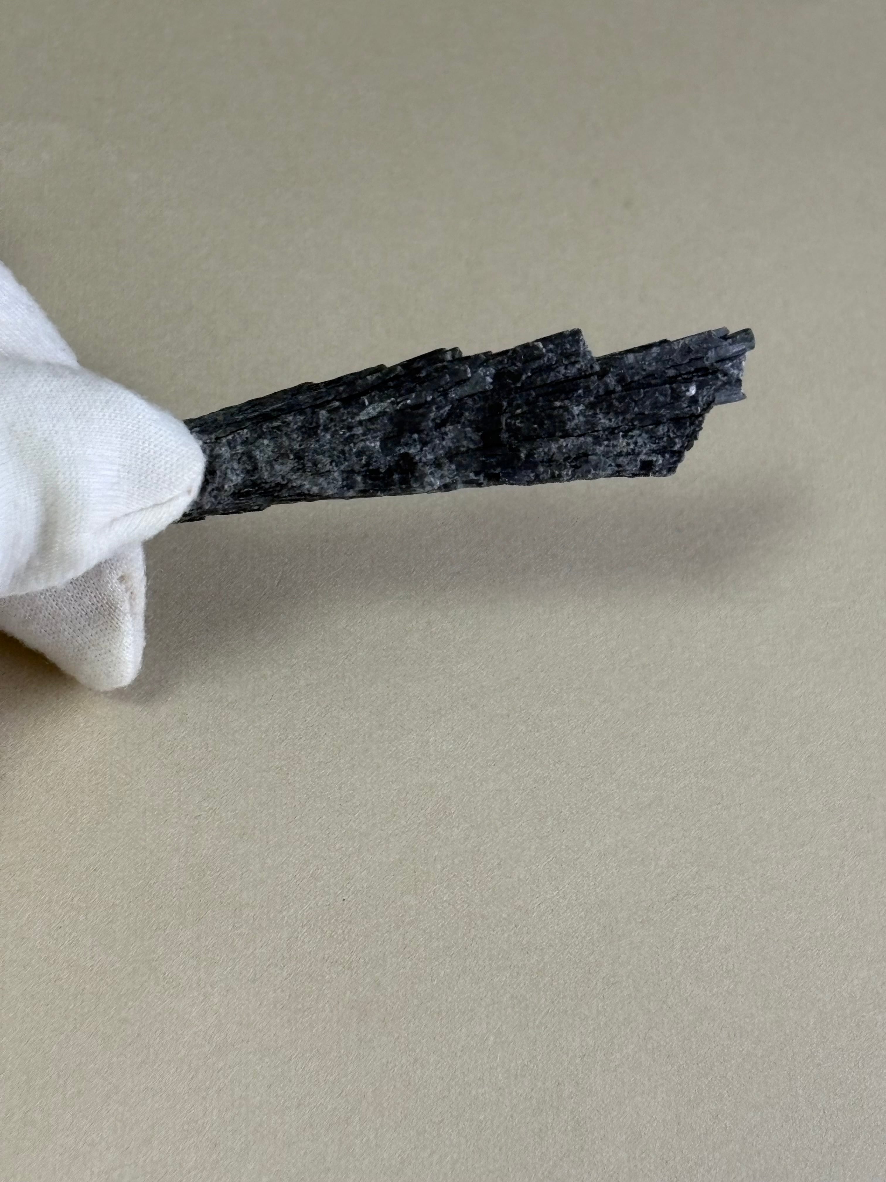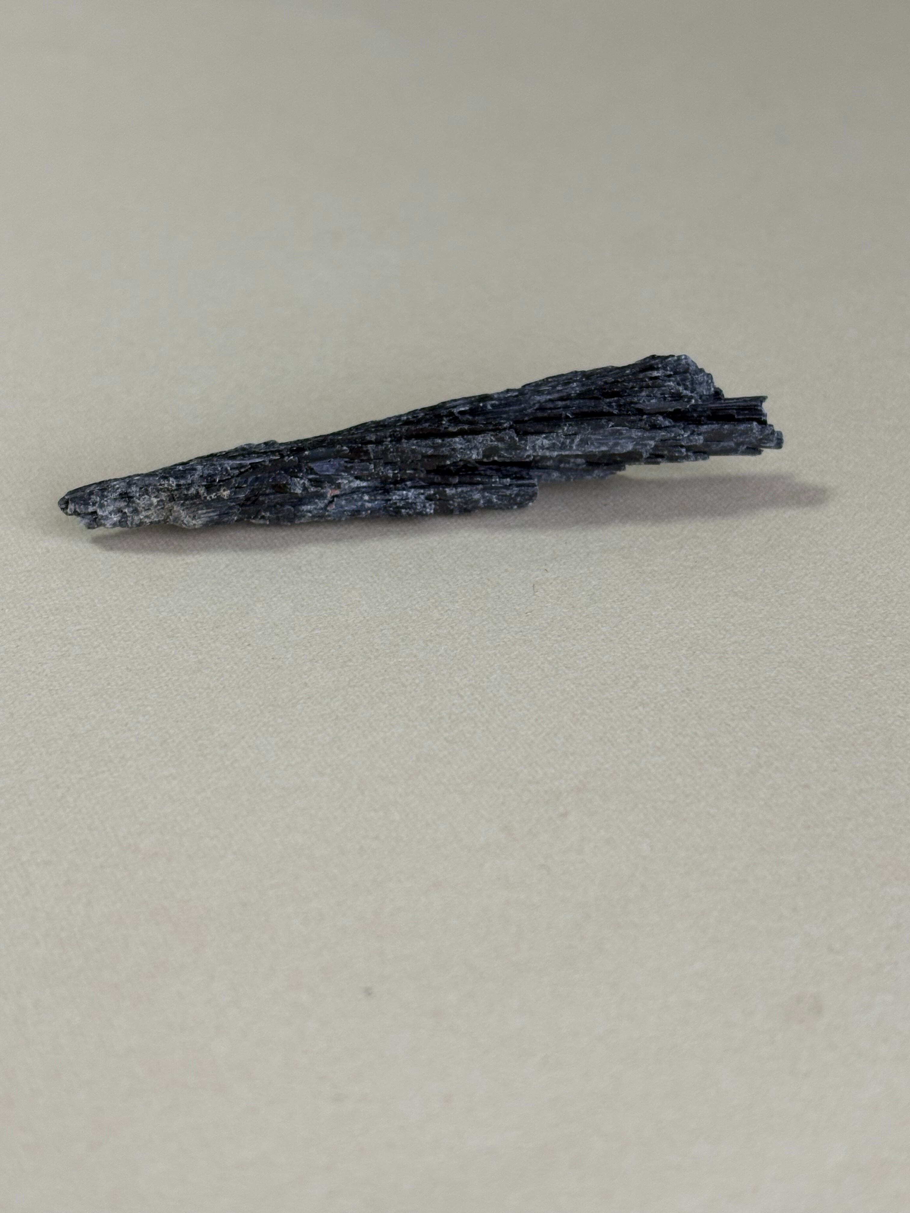 カイヤナイトは、透明感や深い青色の濃淡、さらには独特の層状結晶構造が美しい一品です。結晶の表面には、さまざまな表情や輝きを放つ筋状の模様があり、一つとして同じものは存在しません。これにより、見る人を魅了し、コレクションとしても価値があります。また、カイヤナイトはその特異な形成過程から、非常に希少な鉱石でもあります。