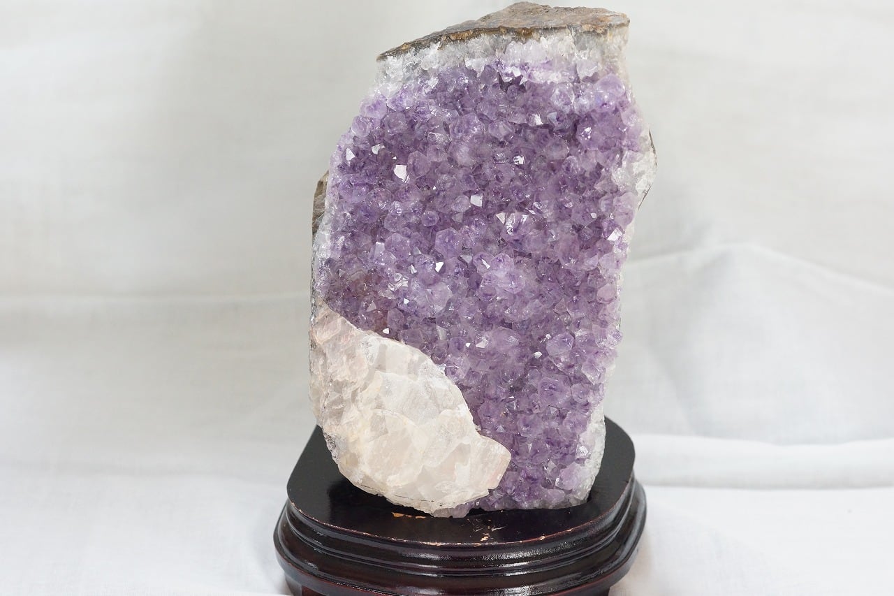 大きいので、価格としてはお安くなっていて、お得かな、と思います!アメジストは非常に強い力と保護作用のある石で 高い霊的波動をもったスピリチュアルな石として古来から、宗教の行事において、司祭様の石としてよく使用されてきた石です。また日本でも「紫」というともっとも位の高い色とされていましたし、中国では皇帝しか用いることができなかった色でもあるので「紫」色という色の波動自体、慈愛、高い波動があるような気もします。紫という色は 「赤と青」という反対色の色から出来ていながらも 融合し、誰をも癒す美しい色を作り上げていることからも人生の不安、精神的なゆらぎ、いらいらを沈めて 沈静化させてくれます。霊的な力は非常に強い石でありながら穏やかな石でもあるので 心を落ち着かせて瞑想に用いることに適しています。不眠にも効果があり(昔の神話から 酒に酔わない石、二日酔いしない、禁酒を促すという意味もありますが)枕元において眠ると インスピレーションを与えてくれます。神聖な石でありながら お求めやすいパワーストーンの一つです。 出来るだけ忠実に商品のイメージをお伝えしようと心がけて おりますが、実際の商品とは色、イメージが異なる場合がありますので ご了承下さい。 当店の商品は全品返品可能になっておりますので、ご安心してお買い求めいただけます。返品の際の送料に関しましては恐れ入りますがお客様のご負担でお願い申し上げます(破損、不良品など当店に責がある場合は当店が負担いたします)