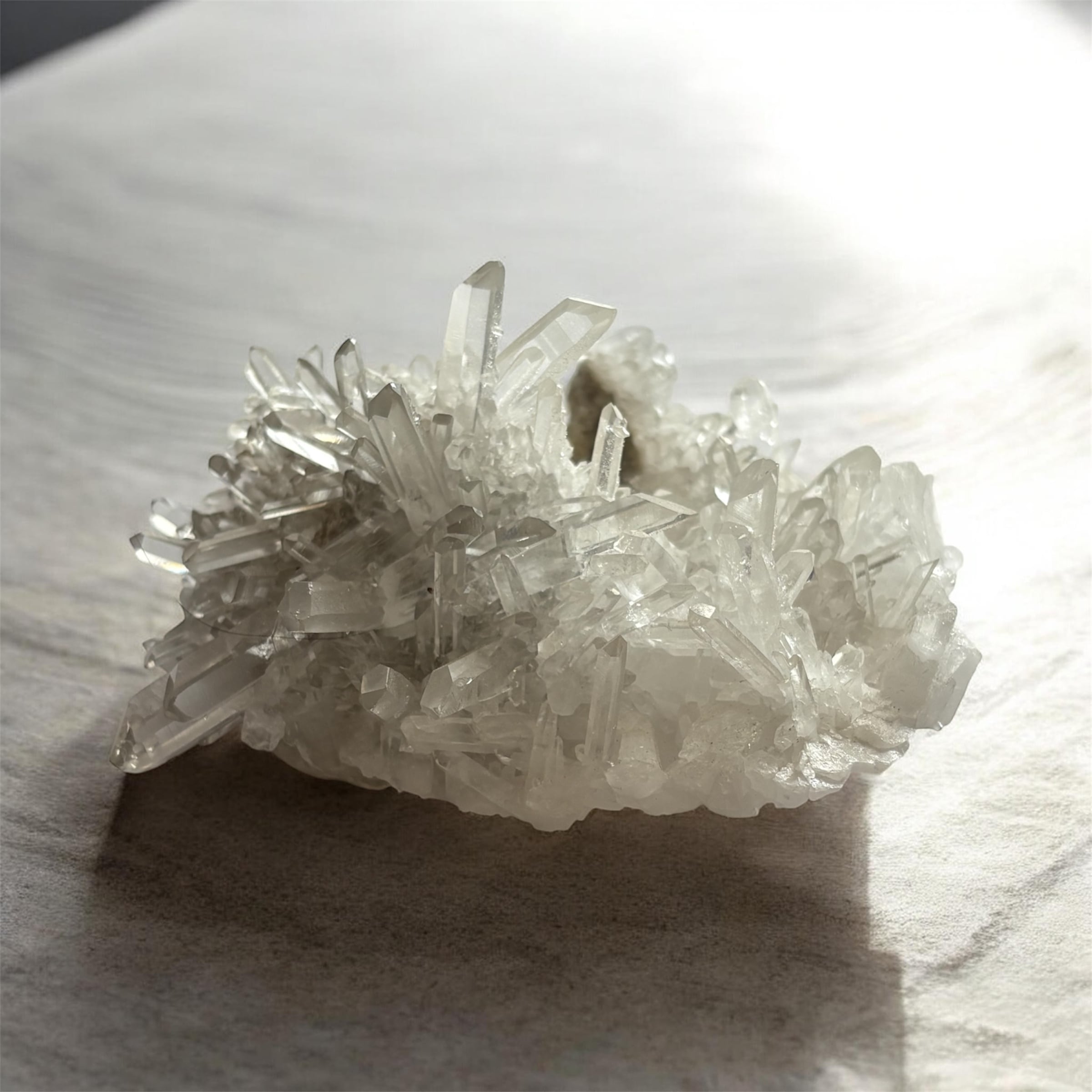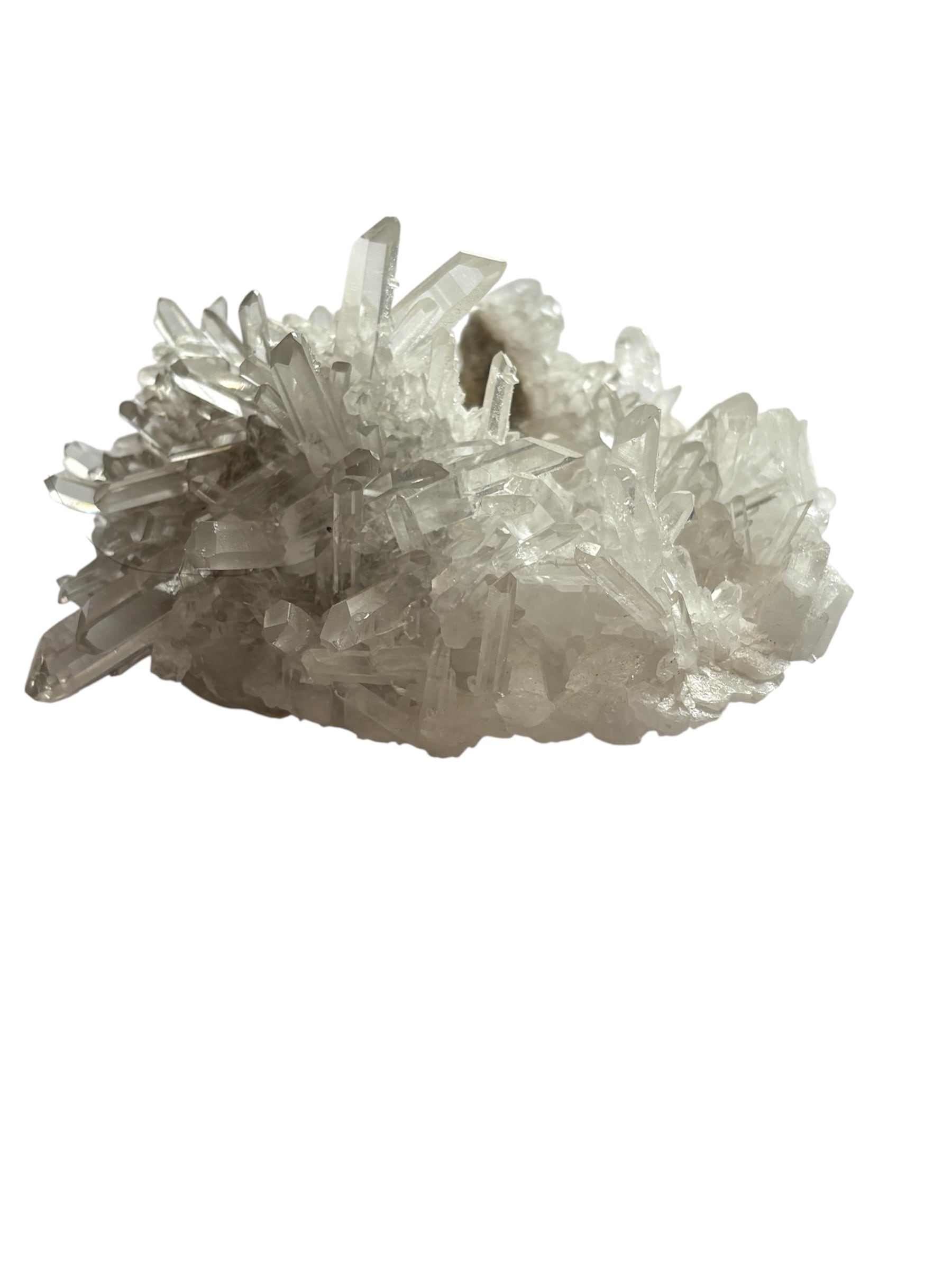 crs10231中国産 420g 約128mm*121mm*73mm 非常に綺麗クラスターで、結晶の一本一本がしっかりとしています。形が面白くVの字のような螺旋階段のようになっていて持ちやすいです。割と大きめのサイズなので、ブレスや指をを載せて 浄化出来ます。送料は無料です。 クラスターは単結晶が集まって群晶を形成している原石です。人間関係をよくしてくれる、自分の持っている潜在能力を引き出す、また、精霊が宿るとされ、古代から治療、祭祀、占いなどにも用いられ、オールマイテイな石。クラスターは、場の空気を浄化する作用が強いのでも有名ですが、その結晶の上にお手持ちのジュエリーなどを乗せて置くことで、ちょっとお疲れ気味のパワーストーンも浄化され、パワーチャージ出切る事でも知られています。ひとつは持っておきたいパワーストーンです。 出来るだけ忠実に商品のイメージをお伝えしようと心がけて おりますが、実際の商品とは色、イメージが異なる場合がありますので ご了承下さい。 当店の商品は全品返品可能になっておりますので、ご安心してお買い求めいただけます。 返品の際の送料に関しましては恐れ入りますがお客様のご負担でお願い申し上げます(破損、不良品など当店に責がある場合は当店が負担いたします)