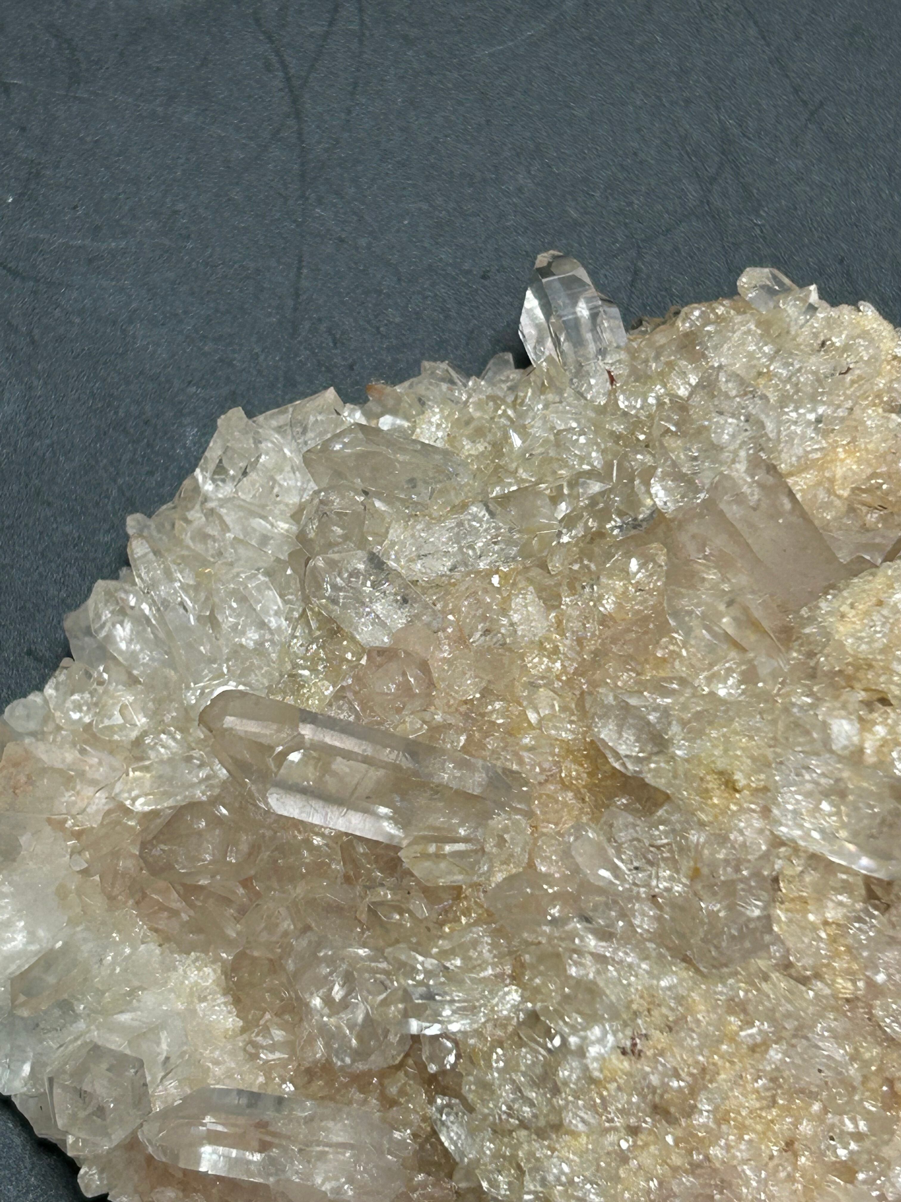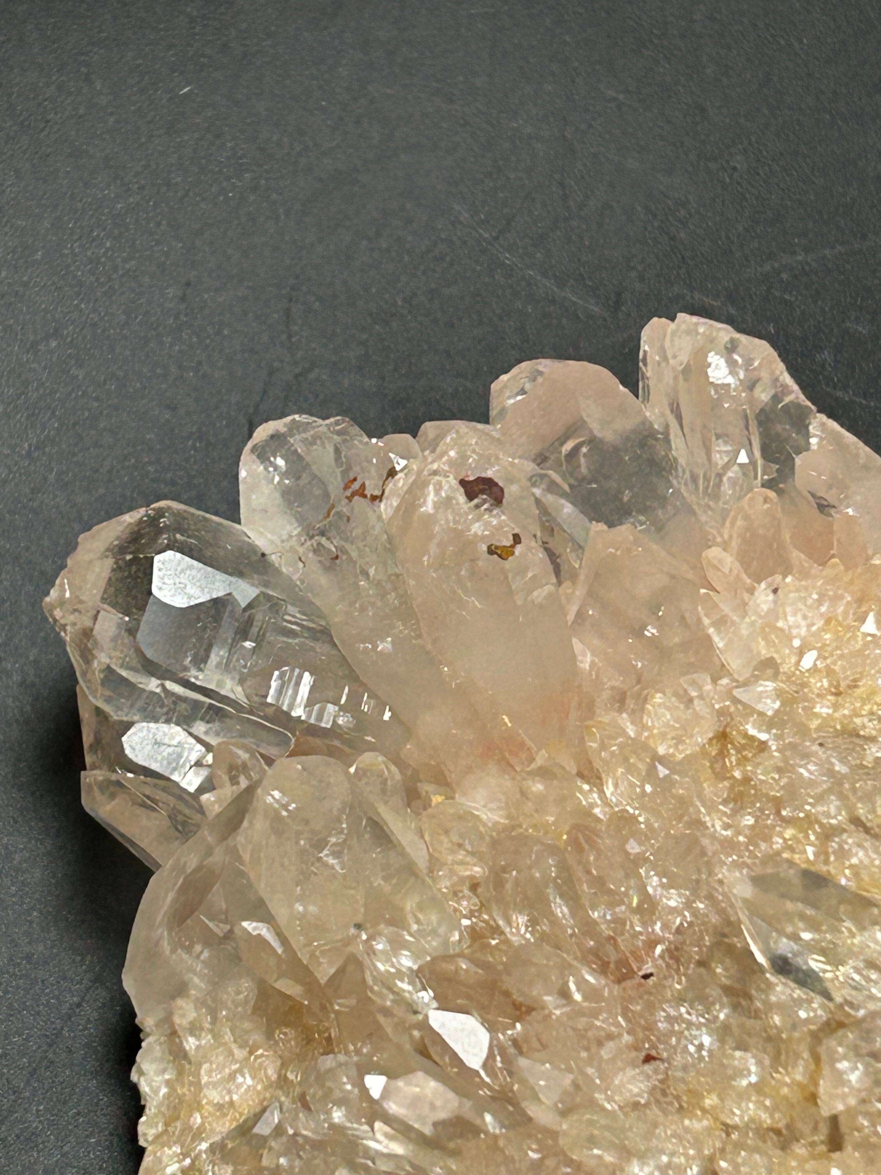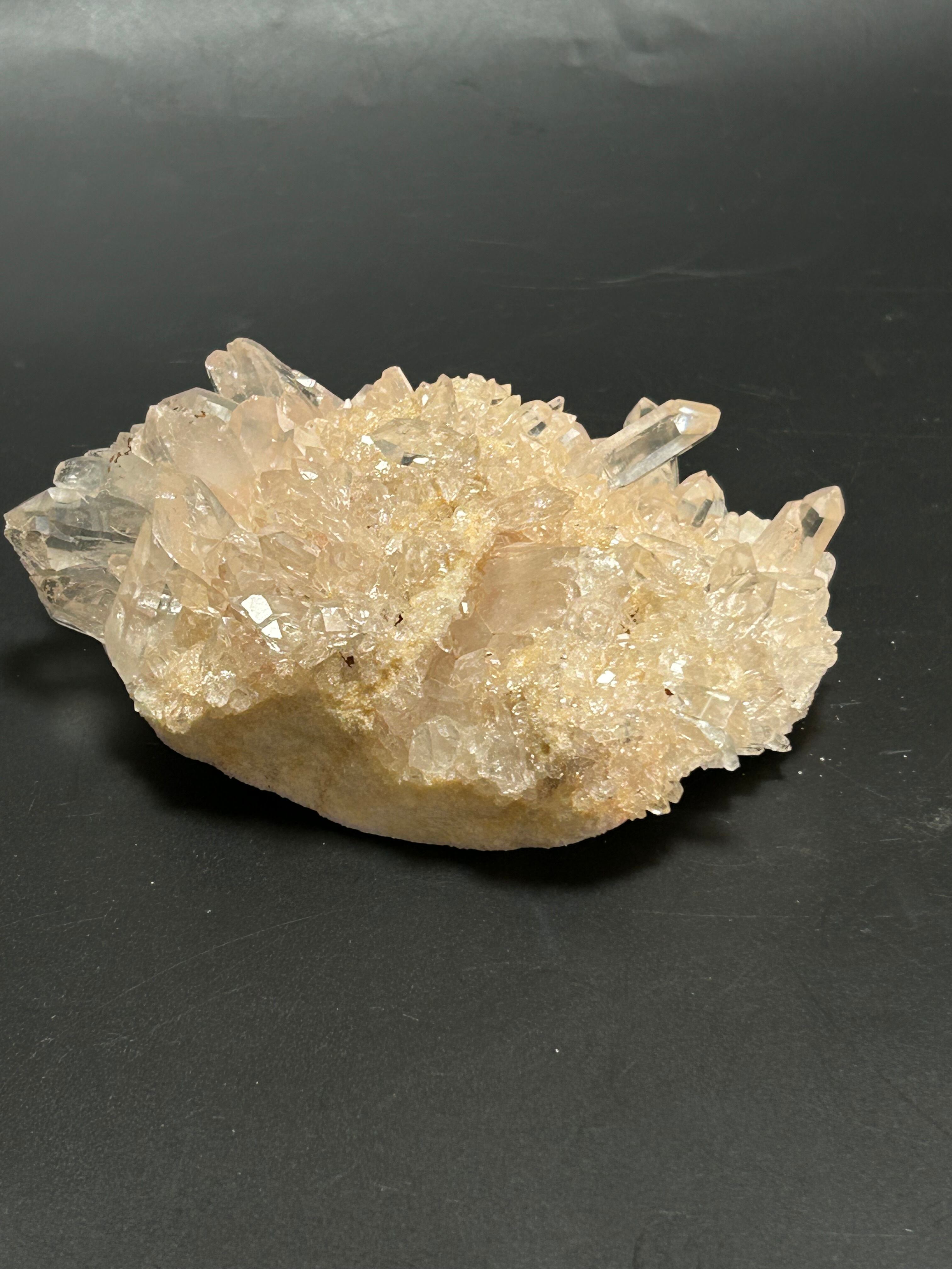 crs170442中国産 約683g 約147mm*110mm*53mm全体的な写真を見ると、結晶が短いので、よくわかりにくい形かもしれませんが結晶の一本一本にすごく透明感があり オレンジピンクっぽい色合いが非常に可愛くて すごく おすすめの水晶のクラスターです。一生の宝物になること間違いなしです! 小さな短い結晶がキラキラ光ります。クラスターは単結晶が集まって群晶を形成している原石です。人間関係をよくしてくれる、自分の持っている潜在能力を引き出す、また、精霊が宿るとされ、古代から治療、祭祀、占いなどにも用いられ、オールマイテイな石。クラスターは、場の空気を浄化する作用が強いのでも有名ですが、その結晶の上にお手持ちのジュエリーなどを乗せて置くことで、ちょっとお疲れ気味のパワーストーンも浄化され、パワーチャージ出切る事でも知られています。ひとつは持っておきたいパワーストーンです。 出来るだけ忠実に商品のイメージをお伝えしようと心がけて おりますが、実際の商品とは色、イメージが異なる場合がありますので ご了承下さい。 当店の商品は全て返品可能ですので ご安心してお買い求めいただけます。返品の際の送料に関しましては恐れ入りますがお客様のご負担でお願い申し上げます(破損、不良品など当店に責がある場合は当店が負担いたします)