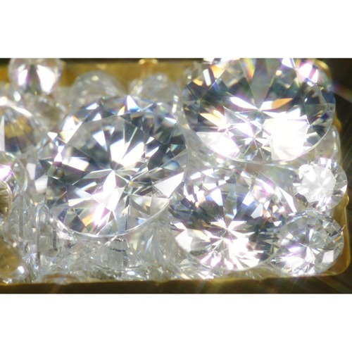 一番左のサイズです。 20mm キュービックジルコニアとは、ダイヤモンドとそっくりですが、ダイヤモンドは、地球の内部のマグマで高温で熱せら高圧がかかりぎゅっと炭素の結晶が圧がかかり2億年ほどかけて、ダイヤモンドの結晶となるのに対し、キュービックジルコニアはジルコニアにイットリウム、カルシウム、マグネシウム、ハフニウムなどを、4%~15%加えて 高温、高圧を与え人工的に作られているもので、模造ダイヤモンドとも呼ばれています。しかし、その光の屈折率はダイヤモンドにかなり近く、高度もダイヤモンドには至りませんが、サファイアやルビーの次に固く、丈夫です。 そして、キュービックジルコニアのアクセサリーはポピュラーですが、私は このルースのままである、というところが最もオススメなところです。もちろんデイスプレイとしても綺麗ですが、考えようによっては 使い方、いろいろなんですよね~ お店を営業されている方でしたら、くじ引きの景品にしても喜ばれますし、何か製作されている方でしたら アクセサリーをご自分で作る事も出来ますし、人形などの洋服にも縫い付けることも可能かもしれないですし、宝探し気分のワンポイントとして床に埋めこむ、壁に埋めこむ、シルクフラワーを製作されている方なら 花についた水滴をイメージしてくっつける・・・・などなど、生活のパターンにあわせて使っていただけます。まあ、その辺に転がしておくだけでも充分綺麗なんですが・・・・・ 両手一杯に キュービックジルコニアを持つと 気分はお姫様か海賊です。 また、何かいいアイデアなどが ございましたら ぜひぜひ教えて下さいませ(*^_^*) 実物の方が写真と違って輝くのでかなり綺麗だと思います。 出来るだけ忠実に商品のイメージをお伝えしようと心がけて おりますが、実際の商品とは色、イメージが異なる場合がありますので ご了承下さい たくさん、必要な方はお取り寄せ出来ます。