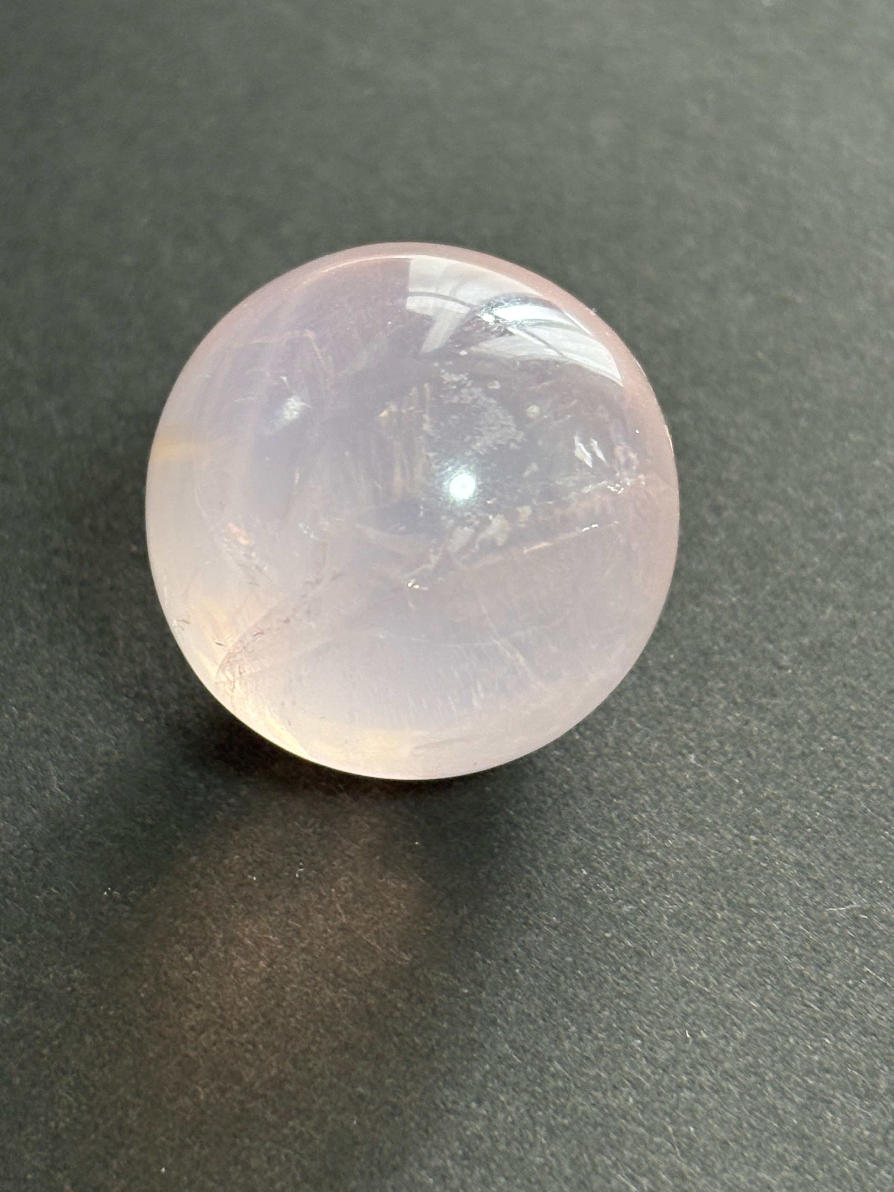 st170344約36g 約30mm 非常に透明感が高く 写真よりもやや ミルキーな印象ですが 非常に愛らしいスターローズクォーツです。星も綺麗に出ます。