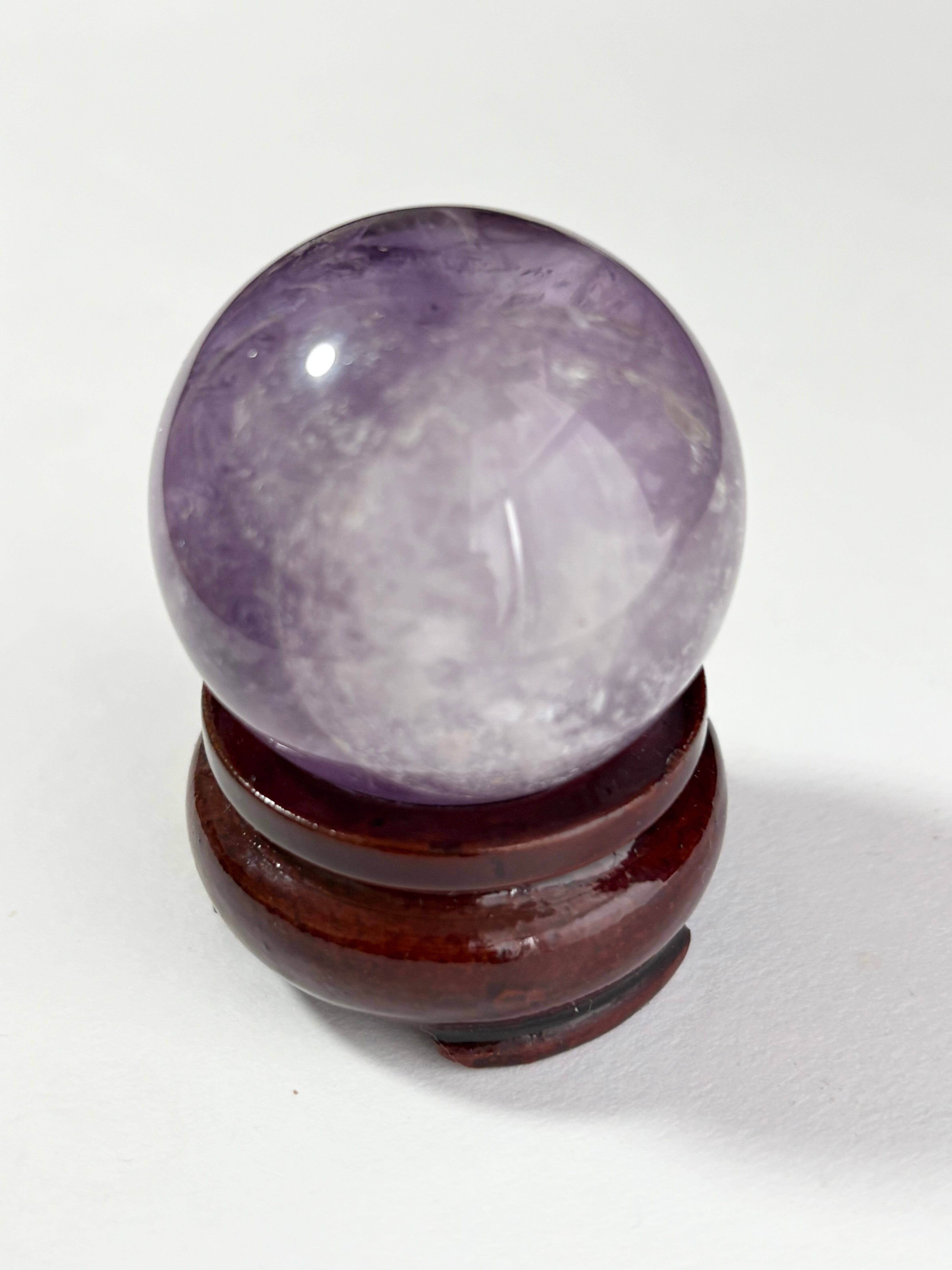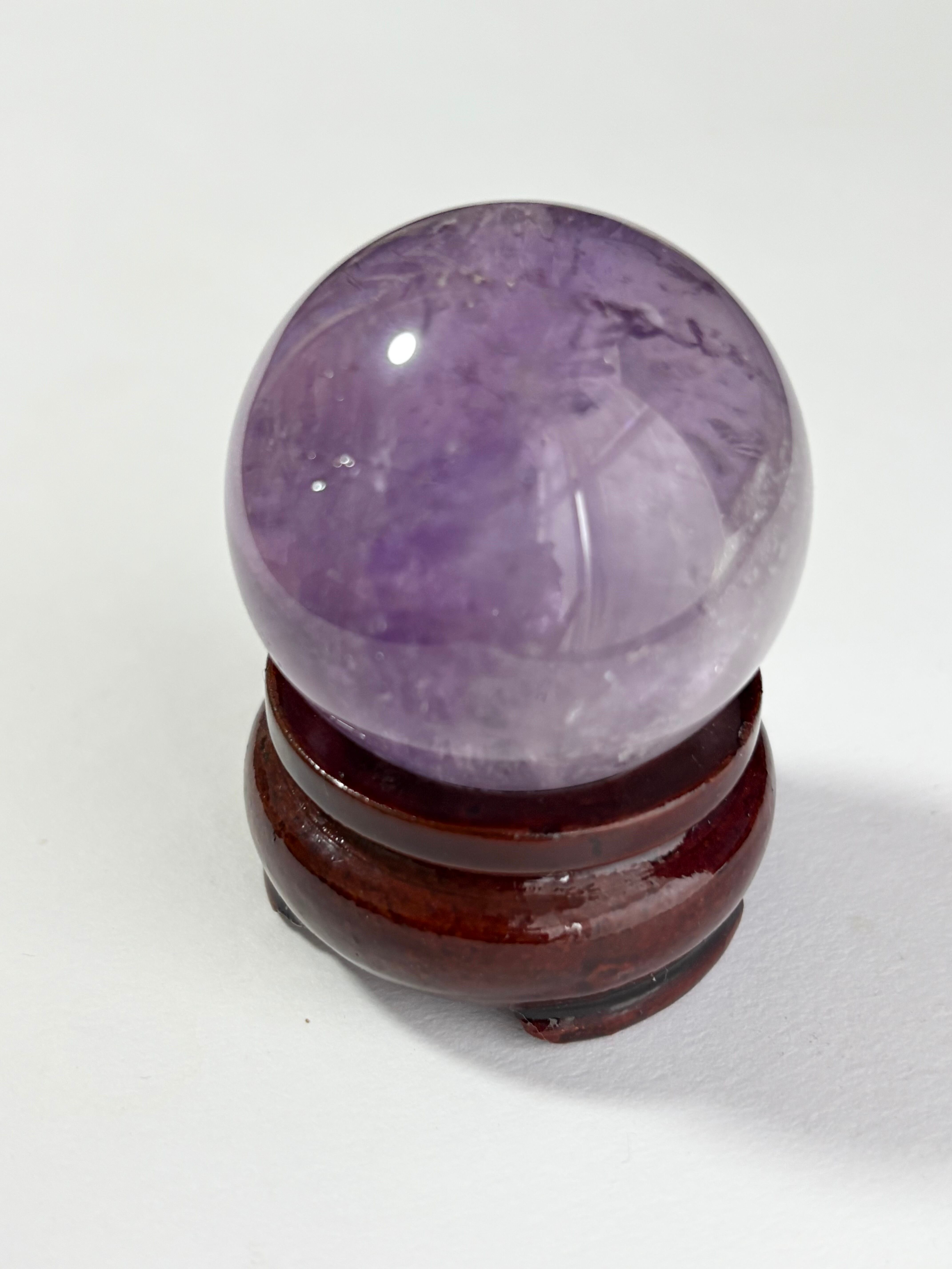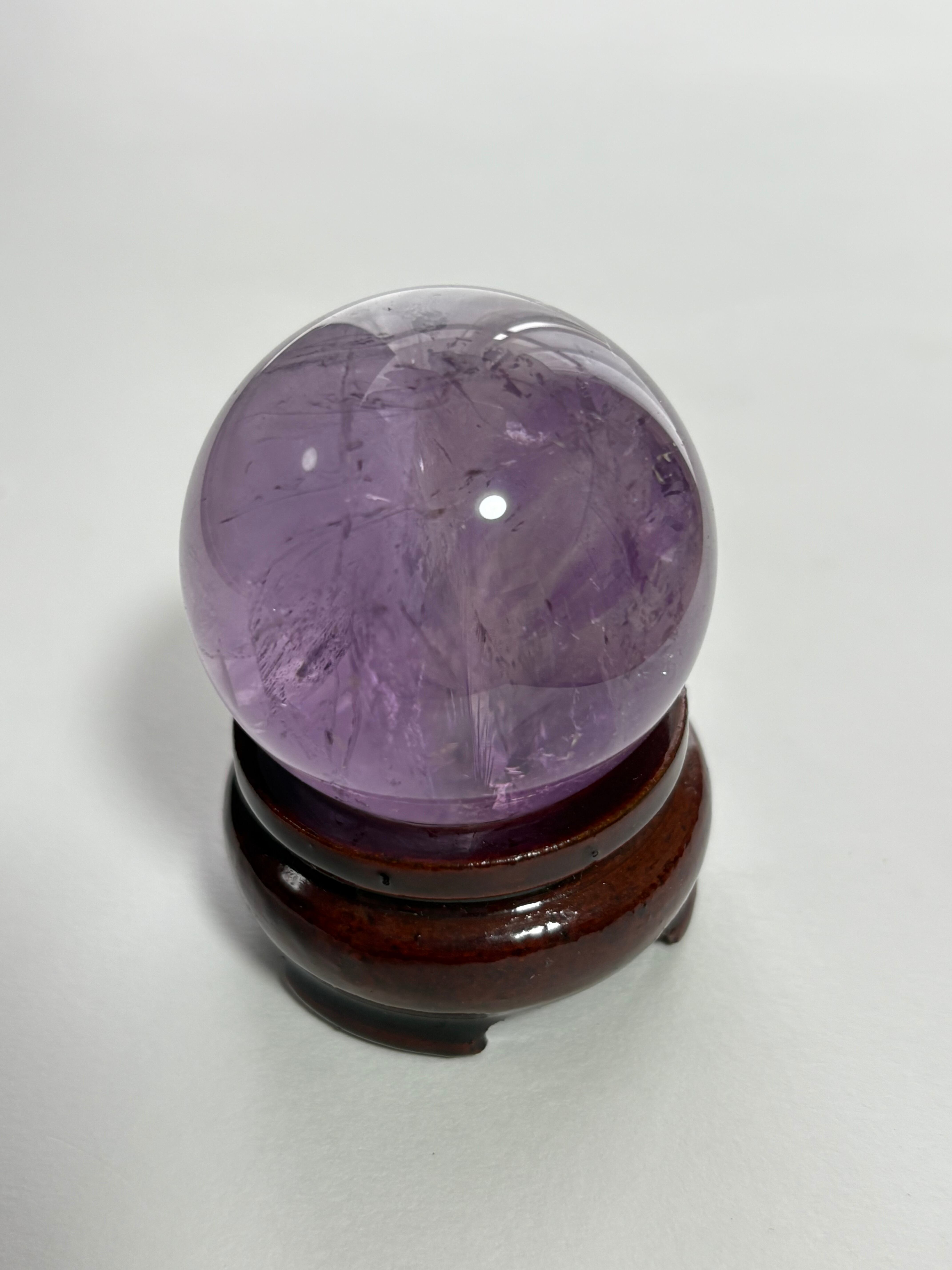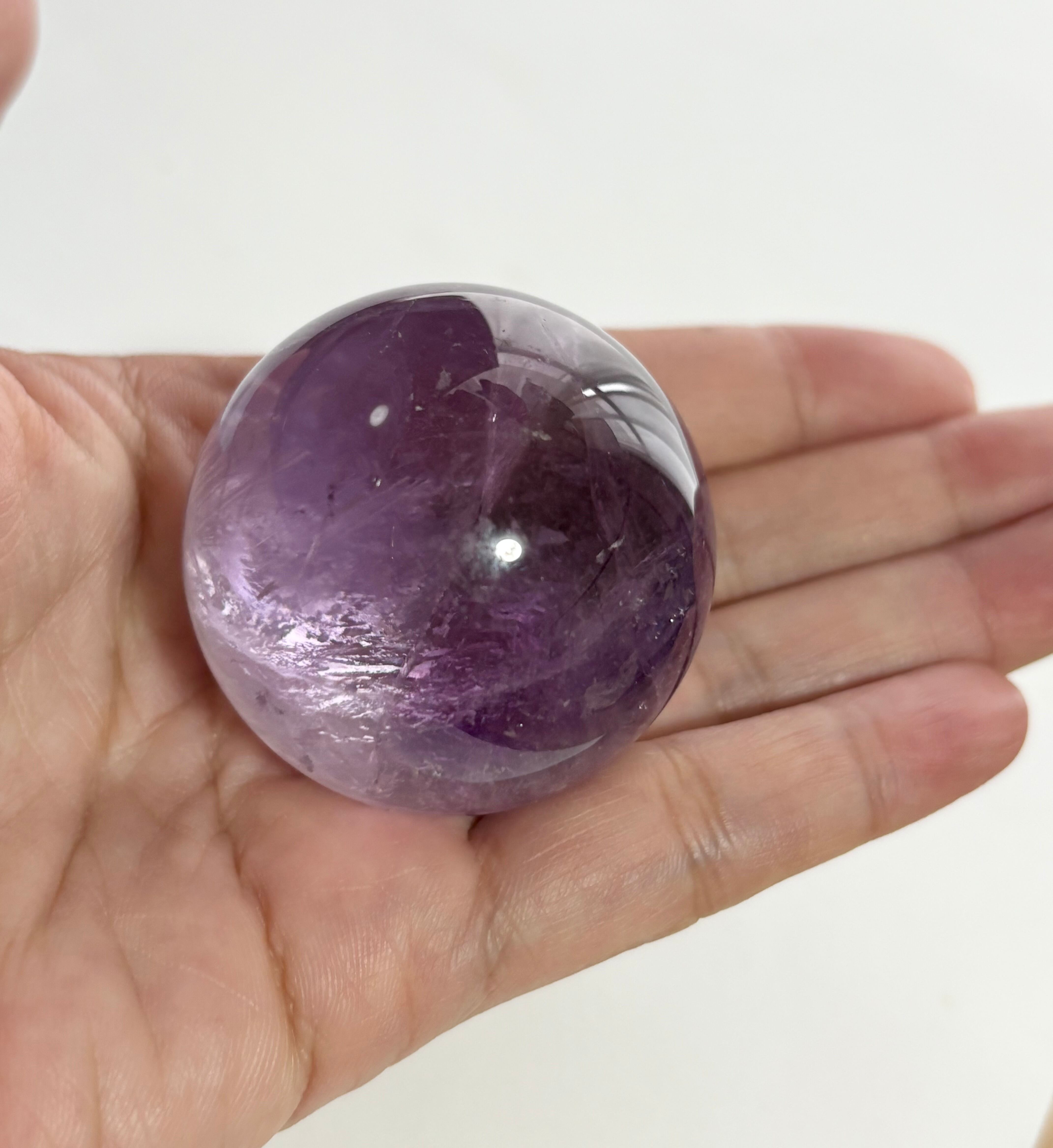 amm160917約41φ 約102g この大きさで(少し白っぽところと 色が違うところはありますが)この色と美しさなら安定して綺麗だと思います。紫も綺麗な色です。 アメジストは非常に強い力と保護作用のある石で 高い霊的波動をもったスピリチュアルな石として古来から、宗教の行事において、司祭様の石としてよく使用されてきた石です。また日本でも「紫」というともっとも位の高い色とされていましたし、中国では皇帝しか用いることができなかった色でもあるので「紫」色という色の波動自体、慈愛、高い波動があるような気もします。紫という色は 「赤と青」という反対色の色から出来ていながらも 融合し、誰をも癒す美しい色を作り上げていることからも人生の不安、精神的なゆらぎ、いらいらを沈めて 沈静化させてくれます。霊的な力は非常に強い石でありながら穏やかな石でもあるので 心を落ち着かせて瞑想に用いることに適しています。不眠にも効果があり(昔の神話から 酒に酔わない石、二日酔いしない、禁酒を促すという意味もありますが)枕元において眠ると インスピレーションを与えてくれます。神聖な石でありながら お求めやすいパワーストーンの一つです。出来るだけ忠実に商品のイメージをお伝えしようと心がけて おりますが、実際の商品とは色、イメージが異なる場合がありますので ご了承下さい。 当店の商品は全て返品可能ですので ご安心してお買い求めいただけます。返品の際の送料に関しましては恐れ入りますがお客様のご負担でお願い申し上げます(破損、不良品など当店に責がある場合は当店が負担いたします。ただ定形外郵便は送料はお安いのですが、商品の破損などに関しては保証はされません。破損などの保証はゆうパックのみになります。申し訳ありません。)
