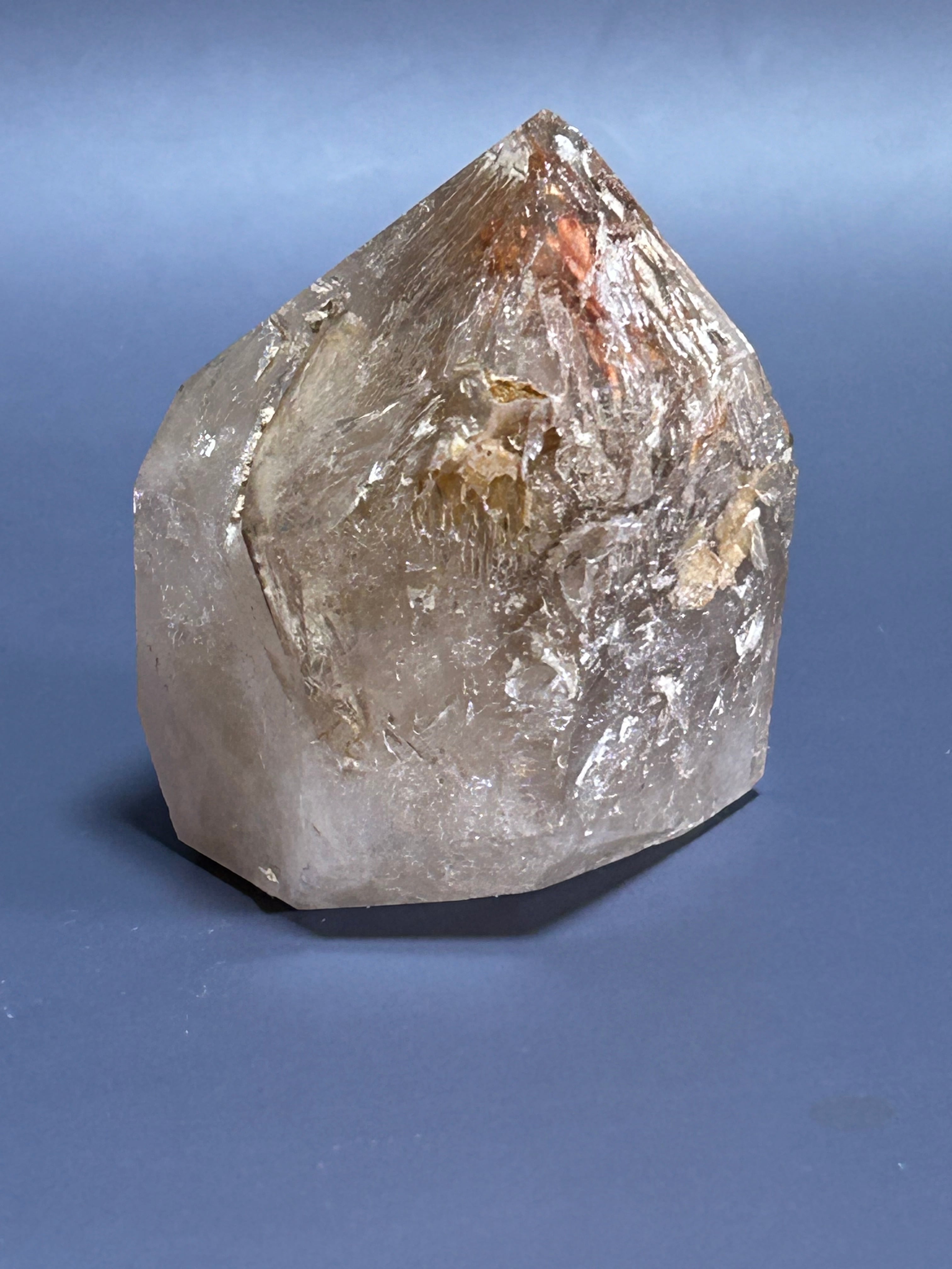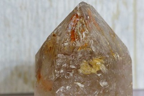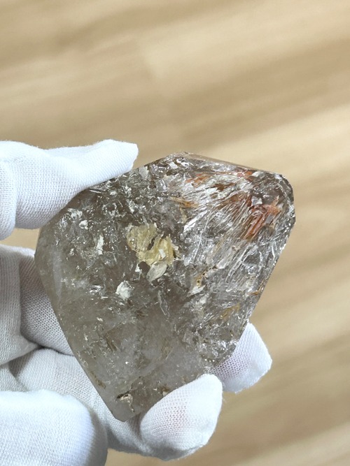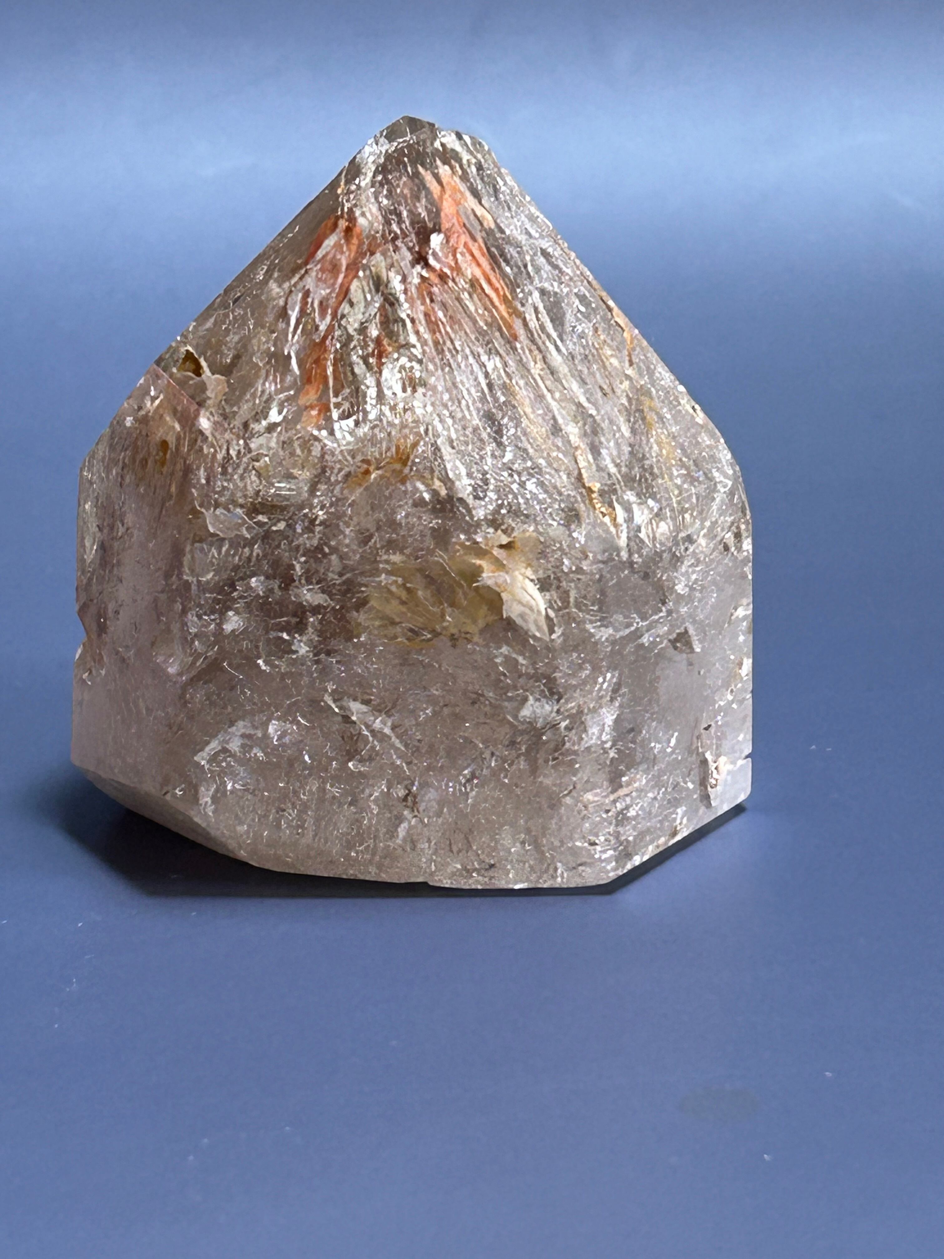 are160931アリゲーターエレスチャル(ジャカレー、鰐魚水晶)約184g 高さ約61m*横約53mm*42mm 非常に面白い珍しいスケルタル水晶です。中の鉱物などが鳳凰のようにも見えて素敵です。スケルタルとは和名では骸骨水晶と呼ばれていて、通常よりも短い期間で急速に水晶が成長したものであり、中に珍しい鉱物を含むことも多く その形状は独特で、なんと表現したらよいか・・・ まさに自然の芸術であり面白みがあります。個人的には 大好きです。 鰐魚水晶(アリゲーター水晶)とは エレスチャルの中でも、ちょっと特殊な行程を経て、名前の通りに 鰐のウロコのようにごつごつとした形状をした水晶で みかけもほんとに鰐のような水晶です。なので、かなり好き好きがあると思いますが、その形状などは 面白いと思います。コレクターにはたまらない逸品ですね。今回は どなたにもまずは、手にとって見てもらえるように、でお手頃価格です。 鰐魚水晶はやはり その言葉どおり強力なパワーがあるといわれています。魔よけ、煩悩を祓う、など 浄化という意味では最も強い石と言われています。 出来るだけ忠実に商品のイメージをお伝えしようと心がけて おりますが、実際の商品とは色、イメージが異なる場合がありますので ご了承下さい。 当店の商品は全て返品可能ですのでご安心してお買い求めいただけます。返品の際の送料に関しましては恐れ入りますがお客様のご負担でお願い申し上げます(破損、不良品など当店に責がある場合は当店が負担いたします。ただ定形外郵便は送料はお安いのですが、商品の破損などに関しては保証はされません。破損などの保証はゆうパックのみになります。申し訳ありません。)