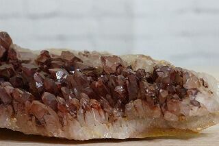 赤色が濃くて結晶のポイントもしっかりしております。平べったいタイプのクラスターです。