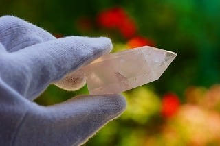 透明度が高く虹も入り綺麗なローズクォーツポイントです。