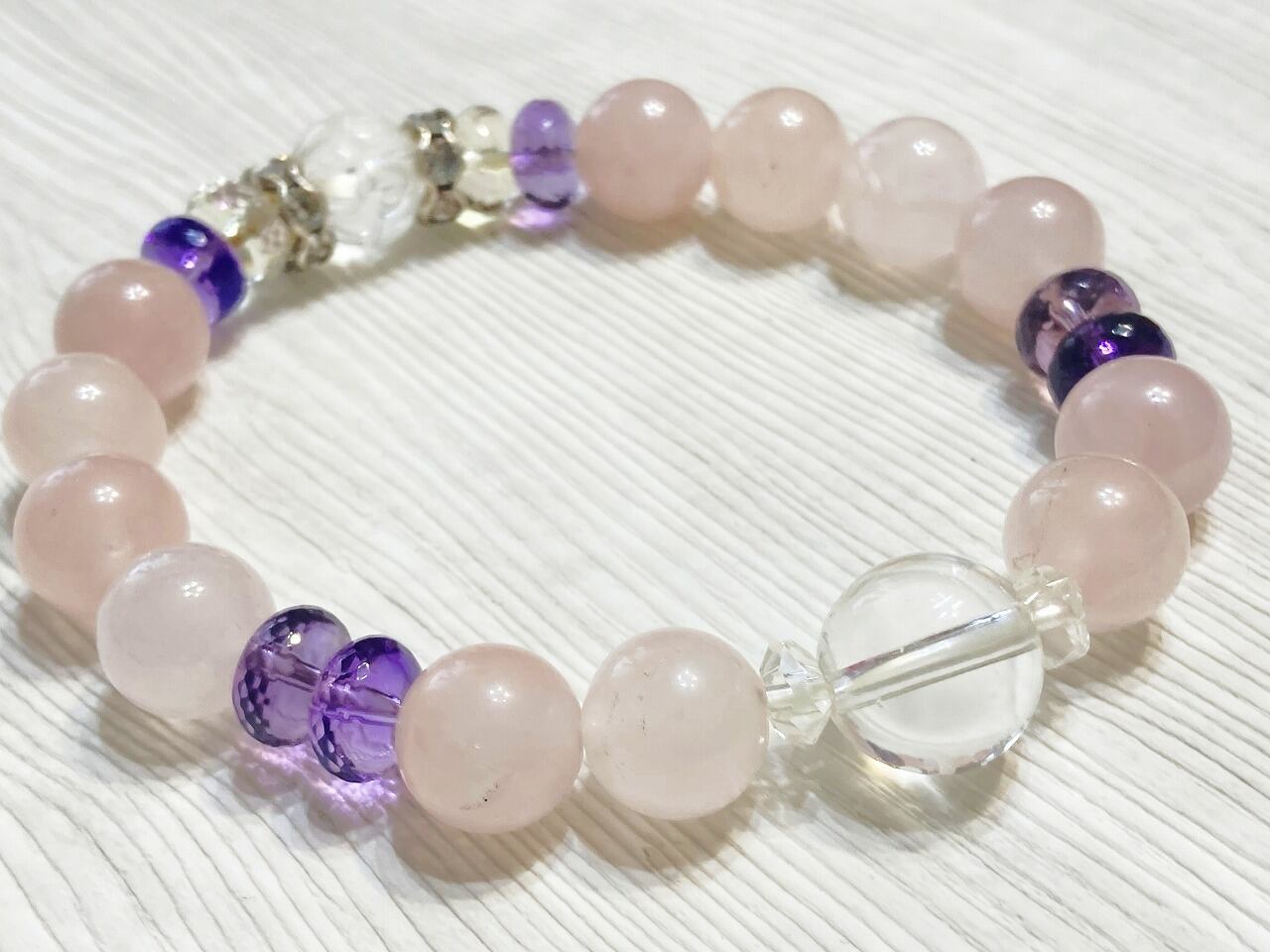 内径16cm ローズクォーツ・アメトリン・水晶ブレスレット | 天然石•パワーストーンのクリスタル☆ドリーム