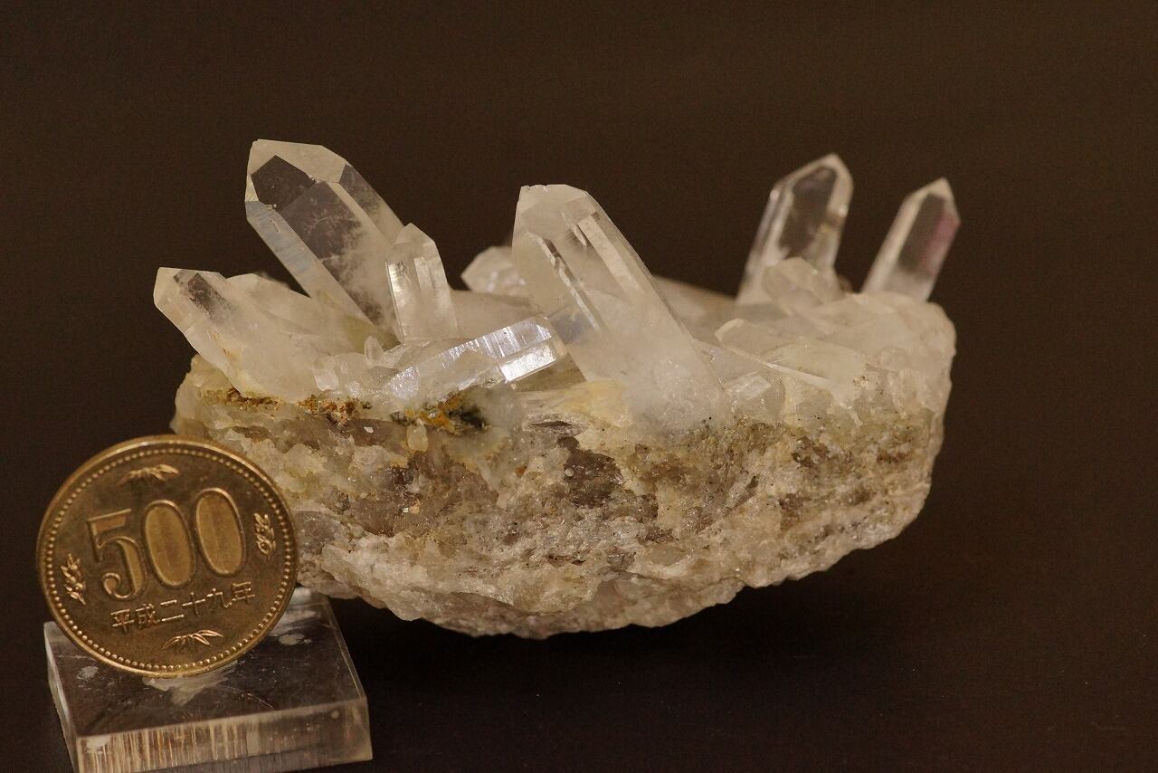 色はシルバー色で平たい結晶と縦に伸びる結晶があり