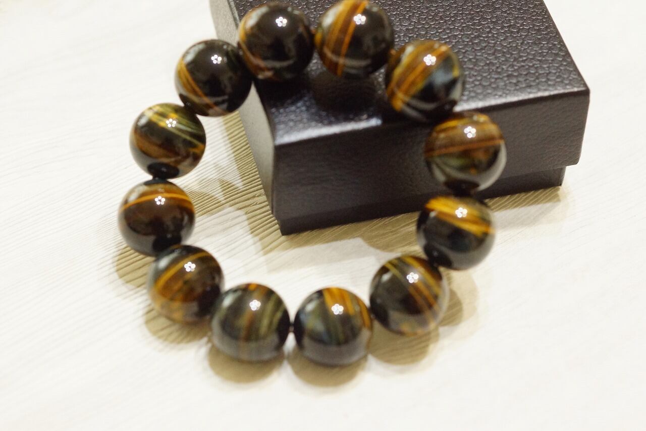 迫力の18mm玉!タイガーアイブレスレット 内径16cm