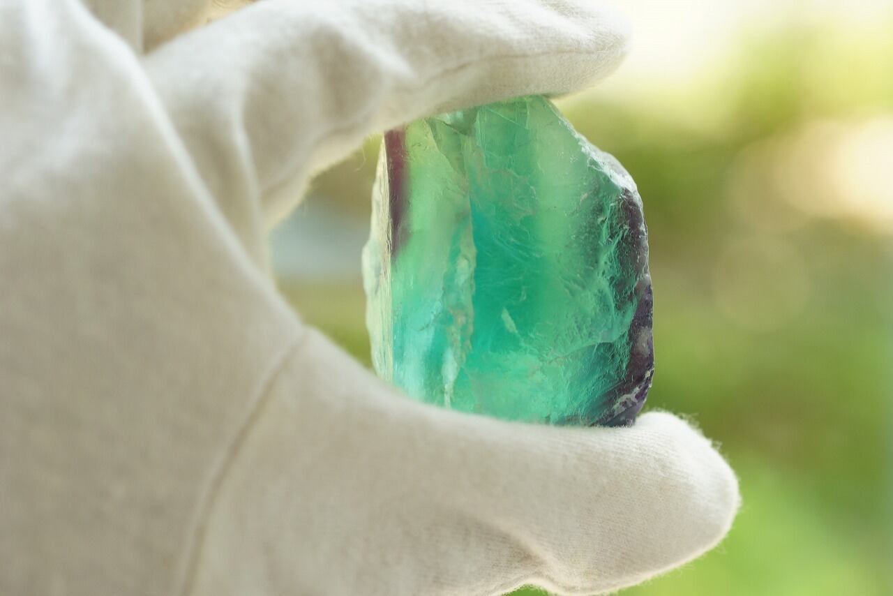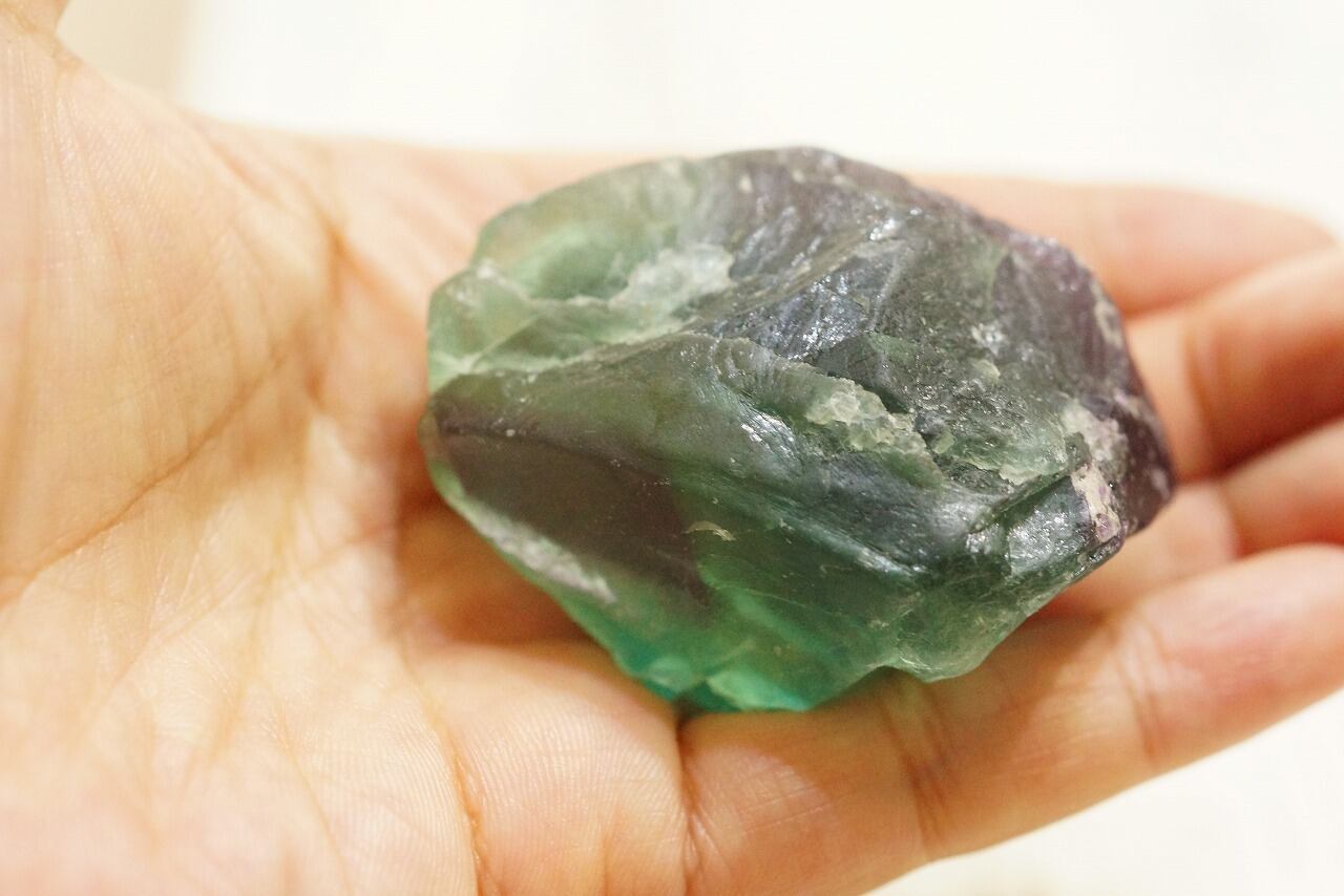 また、紫外線を当てると発光することから、今どの道に行ったらいいのか暗闇をさまよっている時に光をともしてくれる石をも言われます。グリーンやピンク、紫、イエローなど色んな色があり、単色でなく、いろいろな組み合わせの自然の模様もありとても楽しめる石でもあります。