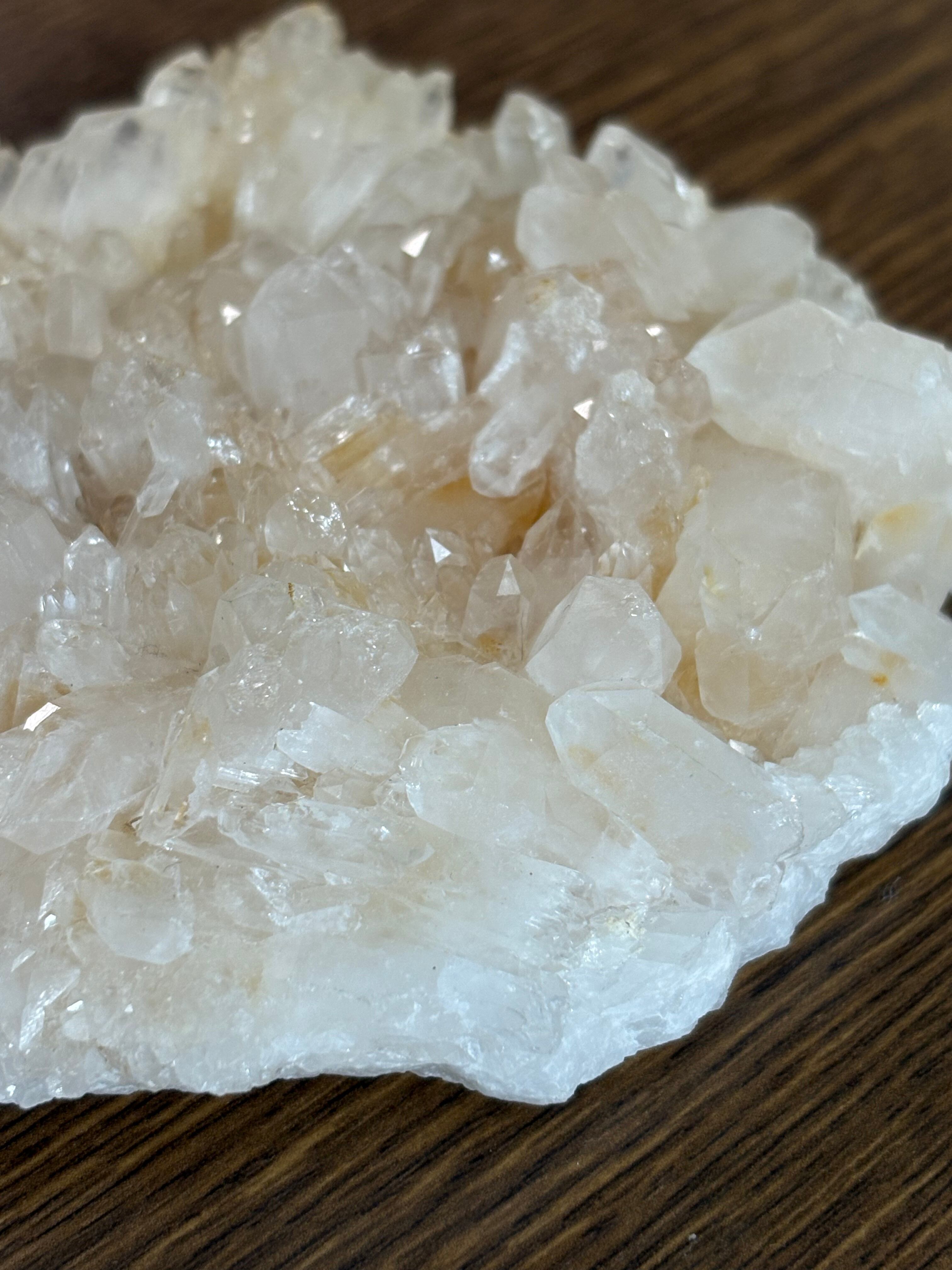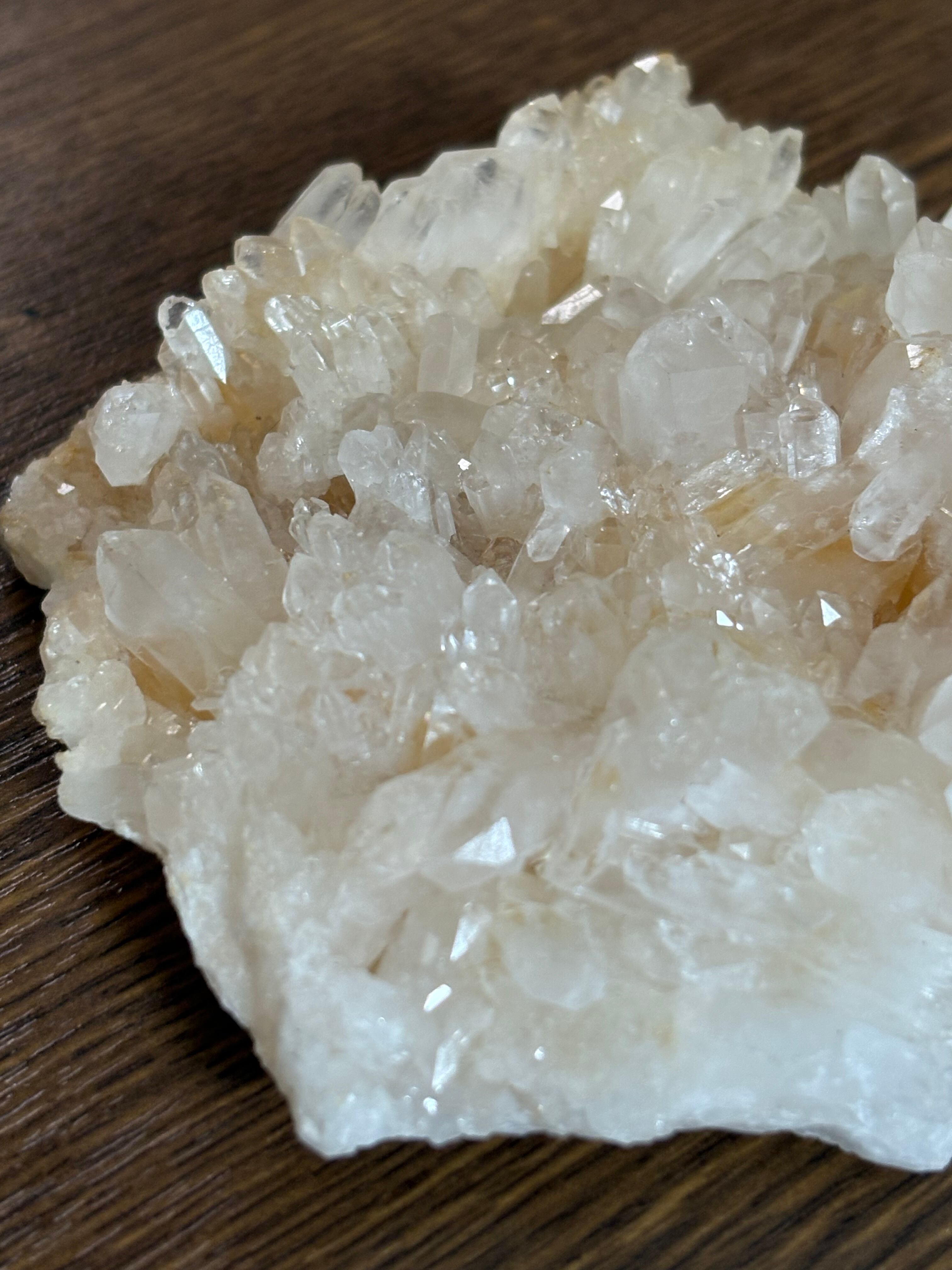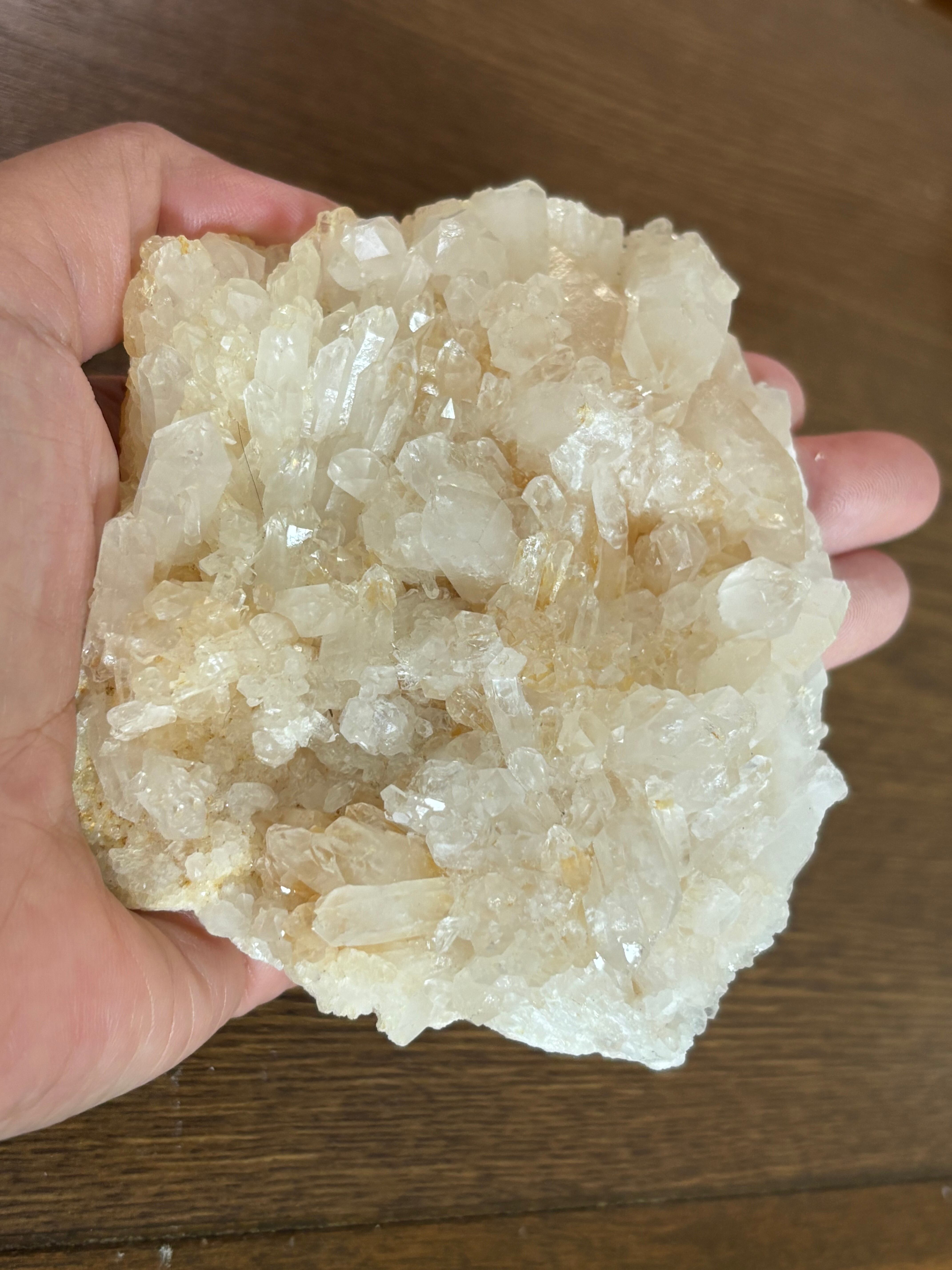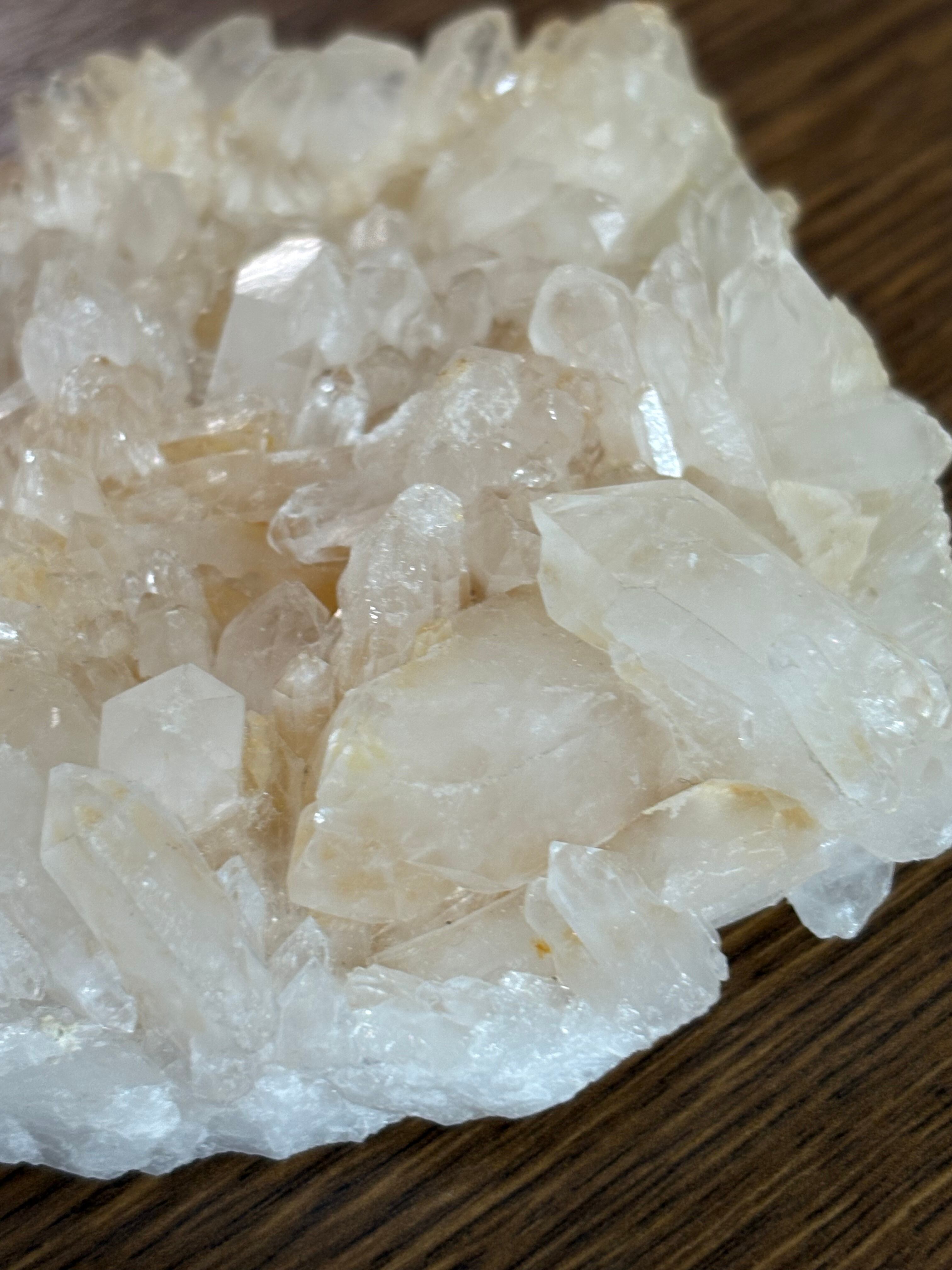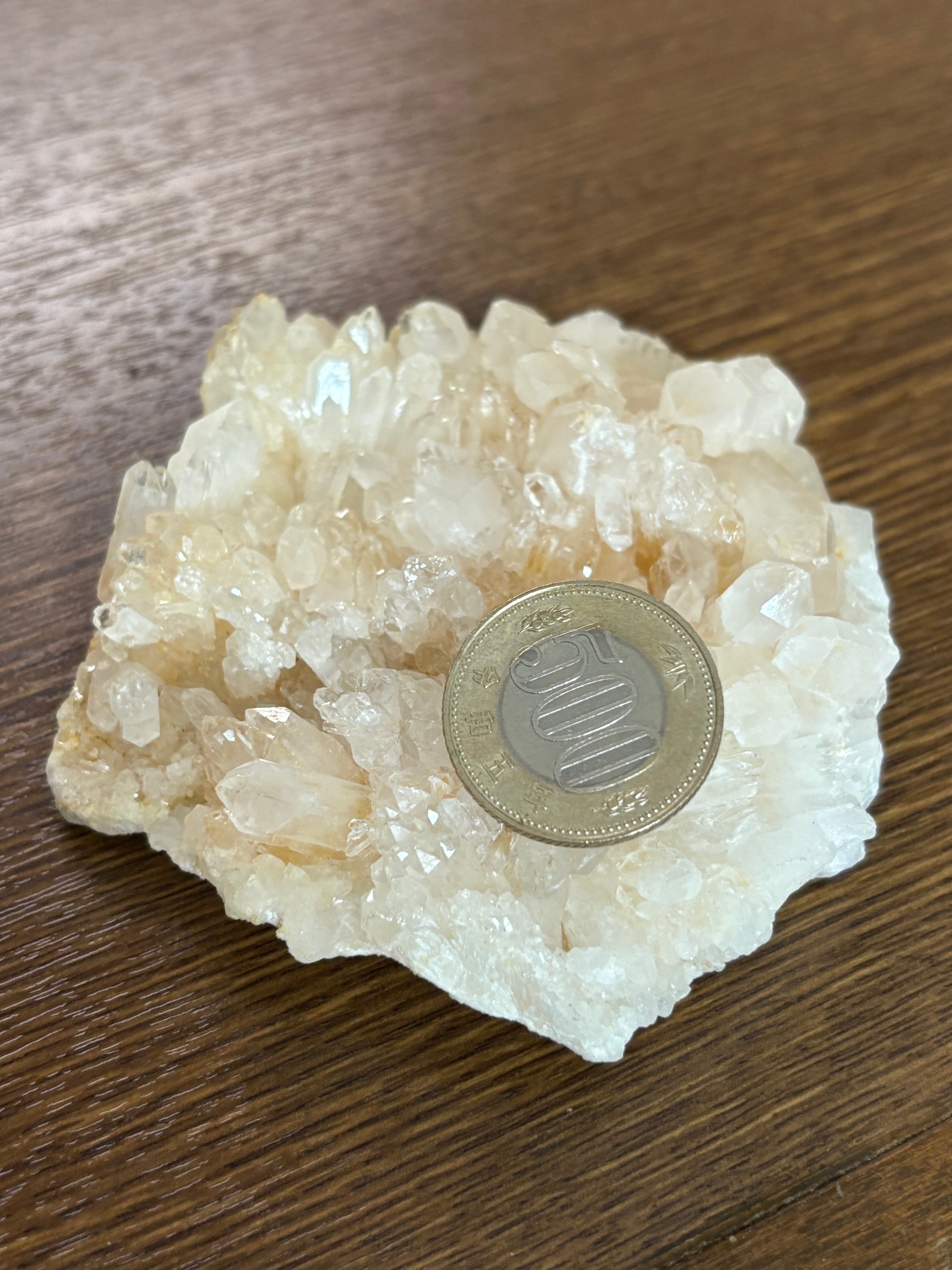 結晶は低めでゴールデンがかったタプリジュン産水晶クラスターです。