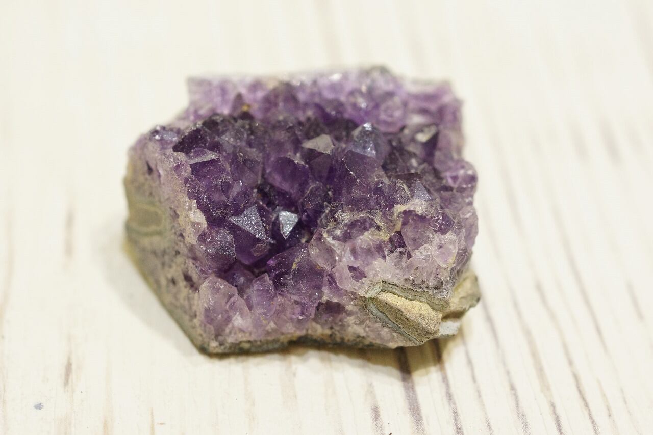 紫色は昔から高貴な色とされは神聖・神秘という言葉がとてえもふさわしい感じです。アメジストは水晶の持つスピリチュアルなパワーを最もよく発揮するとも言われ、インスピレーションが冴えるといわれます。また、守護霊の力を強め、邪霊から身を守る魔よけとしても有名です。又ドーム型のアメジストは古来より、風水の開運グッズとしてかなりポピュラーで、財をがっちり掴むとされています。玄関、又は財位の方位へ。 又、浄化作用が強いので、お手持ちのジュエリーも浄化出来ます。