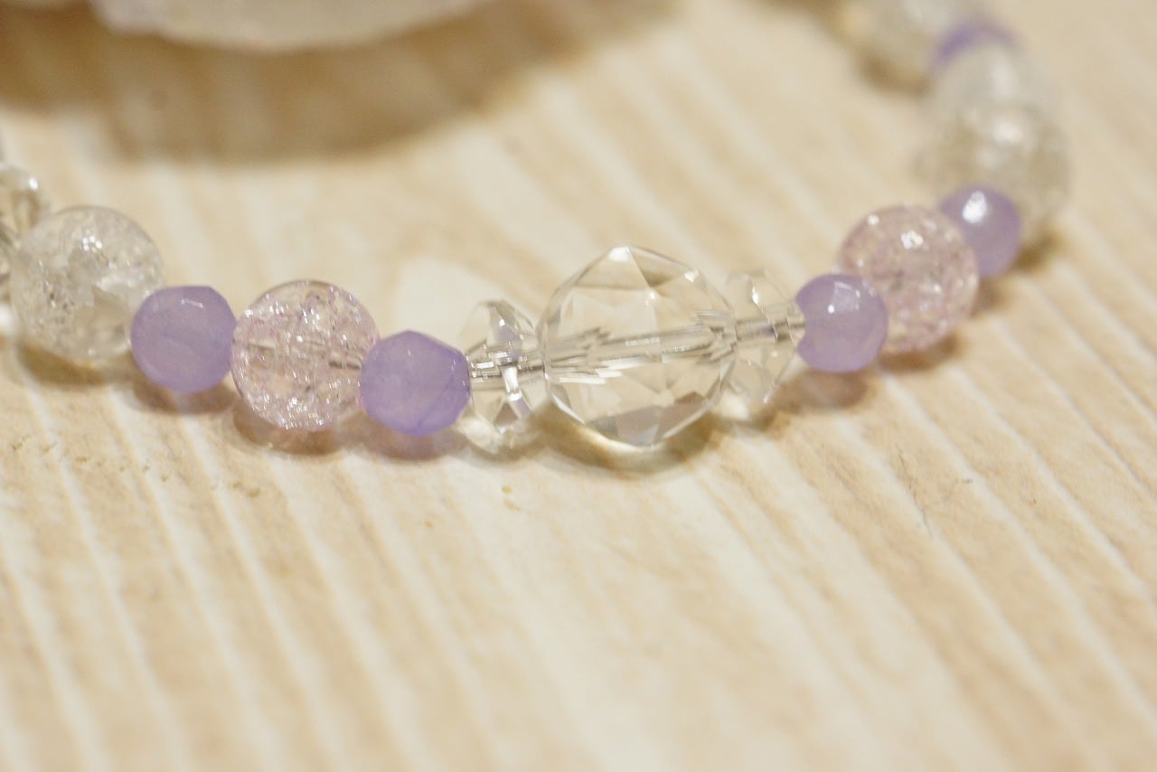 ストラップとセット☆ラベンダー☆水晶ブレスレット 内径15cm | 天然石•パワーストーンのクリスタル☆ドリーム