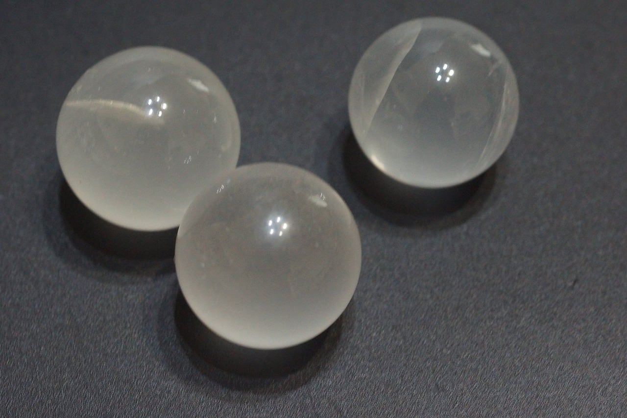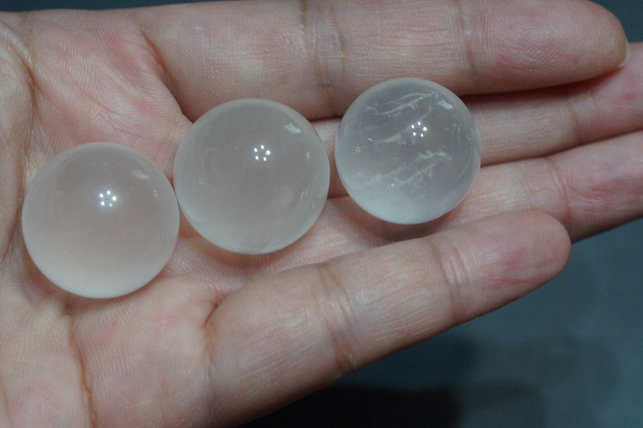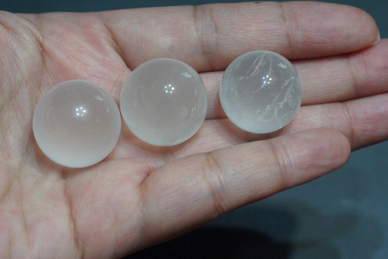 非常に可愛いジラソルクォーツです。この透明感とミルキー感、すてきです~(*^_^*)ジラソルクォーツとはマダガスカル産のミルキークォーツのことですが 、その特徴は、シラー効果(ムーンストーンなどに現れる光の輝き)のような光がムーンストーンとは違う輝きで、ひょっとして光が出るとスターが出るの?(スター効果とはルチルのような針状の内包物が規則的に並ぶことで光をあてると6条の光が現れるアステリズム効果のことなんですが)と、始めて見た時は非常に謎で光を当てて見ましたがスターが現れず、「なんなんだろ」と裏から光りを当てるとスターが現れて鳥はだが立つほと驚いたんですが、これは球状なのでスターは現れませんが(一応試してみましたが)球状のジラソルクォーツは、裏から光を当てるとスターが現れるものもあります。でも、そのスターの出かたは スターローズクォーツやスターサファイアのスターの出かたとは少し違い神秘的です。そして、そういうことから通常の状態でやや、石自体が光りを発しているように見えて、そして、うっすらとミルキーなので、 ほんとに可愛いんです!個人的には、どのジラソルも100%大好き!ですが、一般的にもひと目みたら好きになる方が多いんではないかと思います。