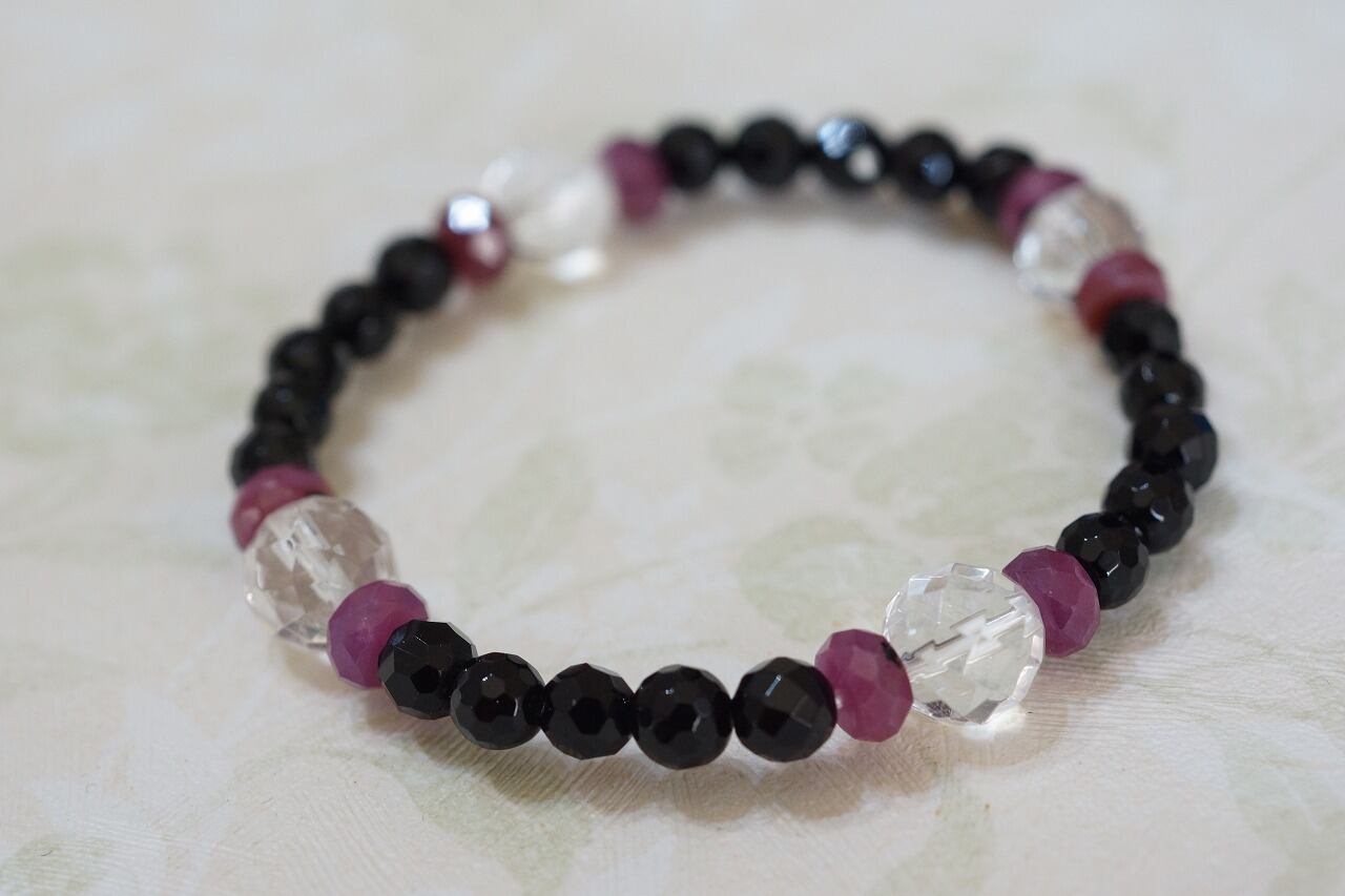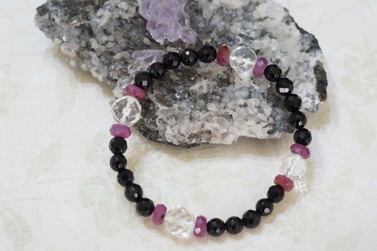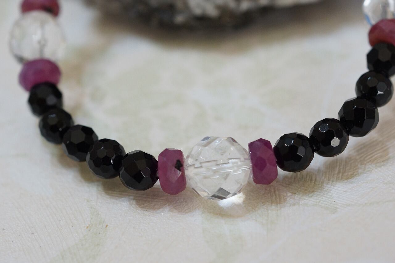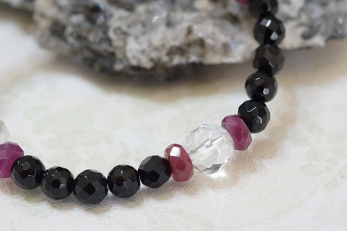 自分らしく華やかに☆ルビー・カットオニキス ブレスレット 内径16cm | 天然石•パワーストーンのクリスタル☆ドリーム