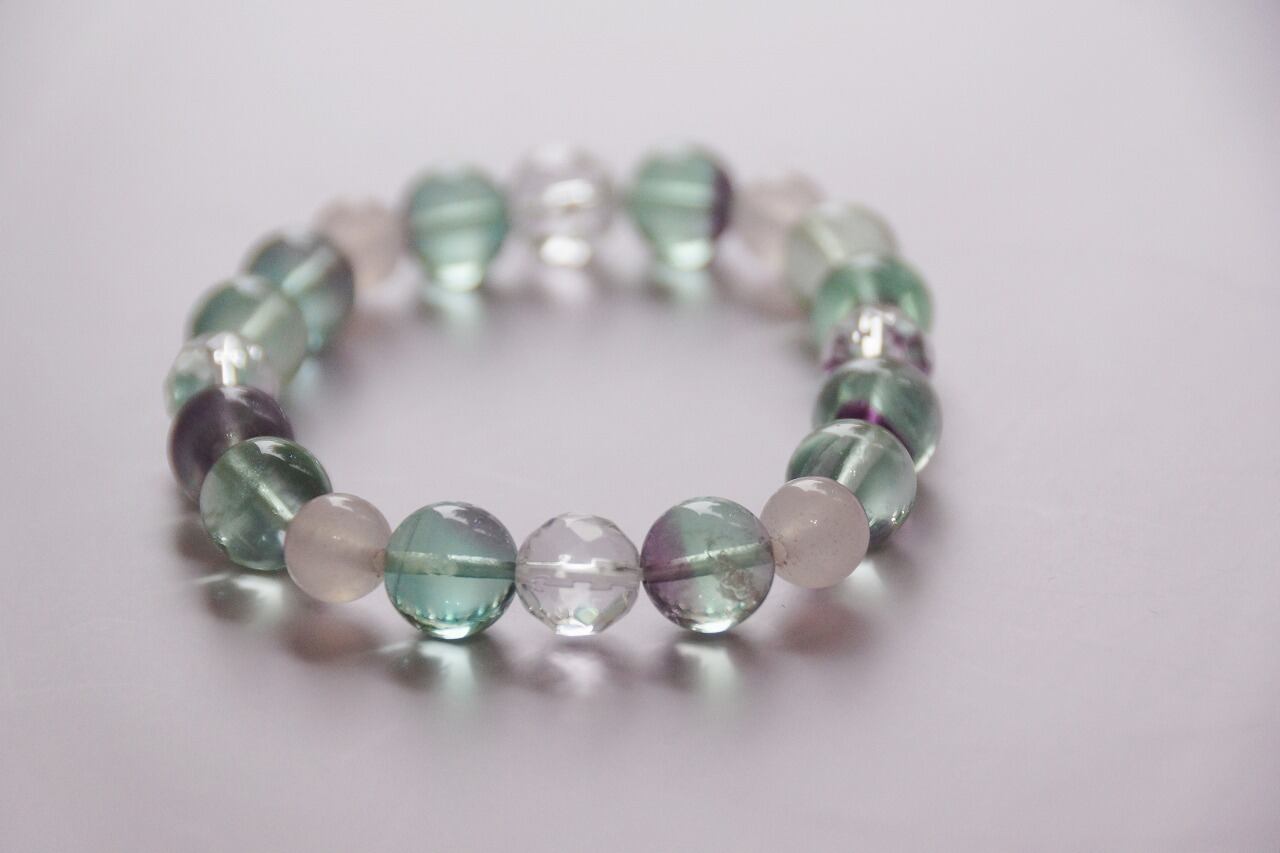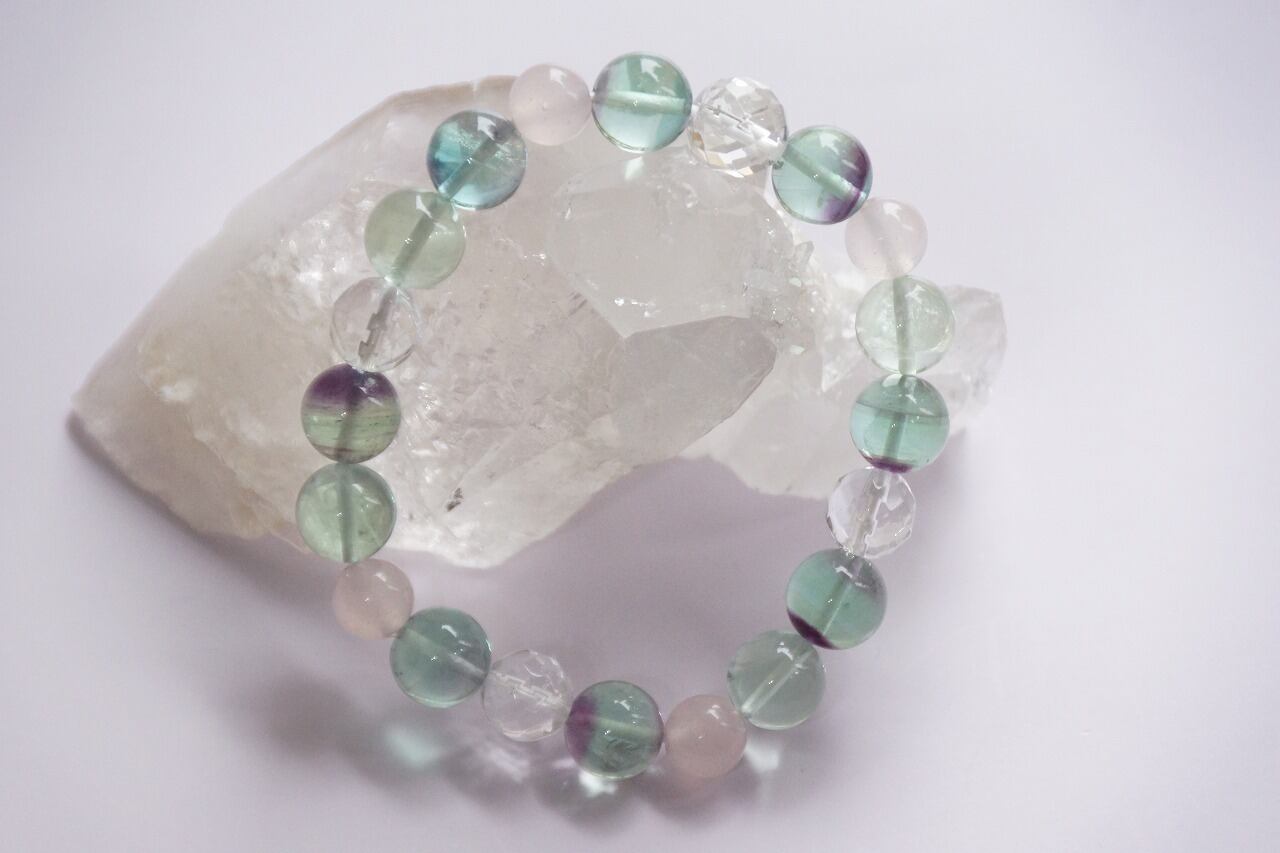 縁を紡ぐ☆フローライト・ローズクォーツブレス 内径16cm | 天然石•パワーストーンのクリスタル☆ドリーム