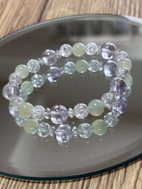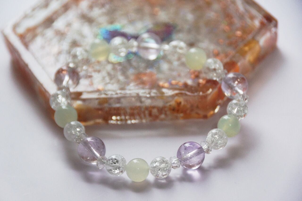 本当に必要なものに気づかせてくれる☆プレナイト・アメジストブレス 内径16.5cm | 天然石•パワーストーンのクリスタル☆ドリーム